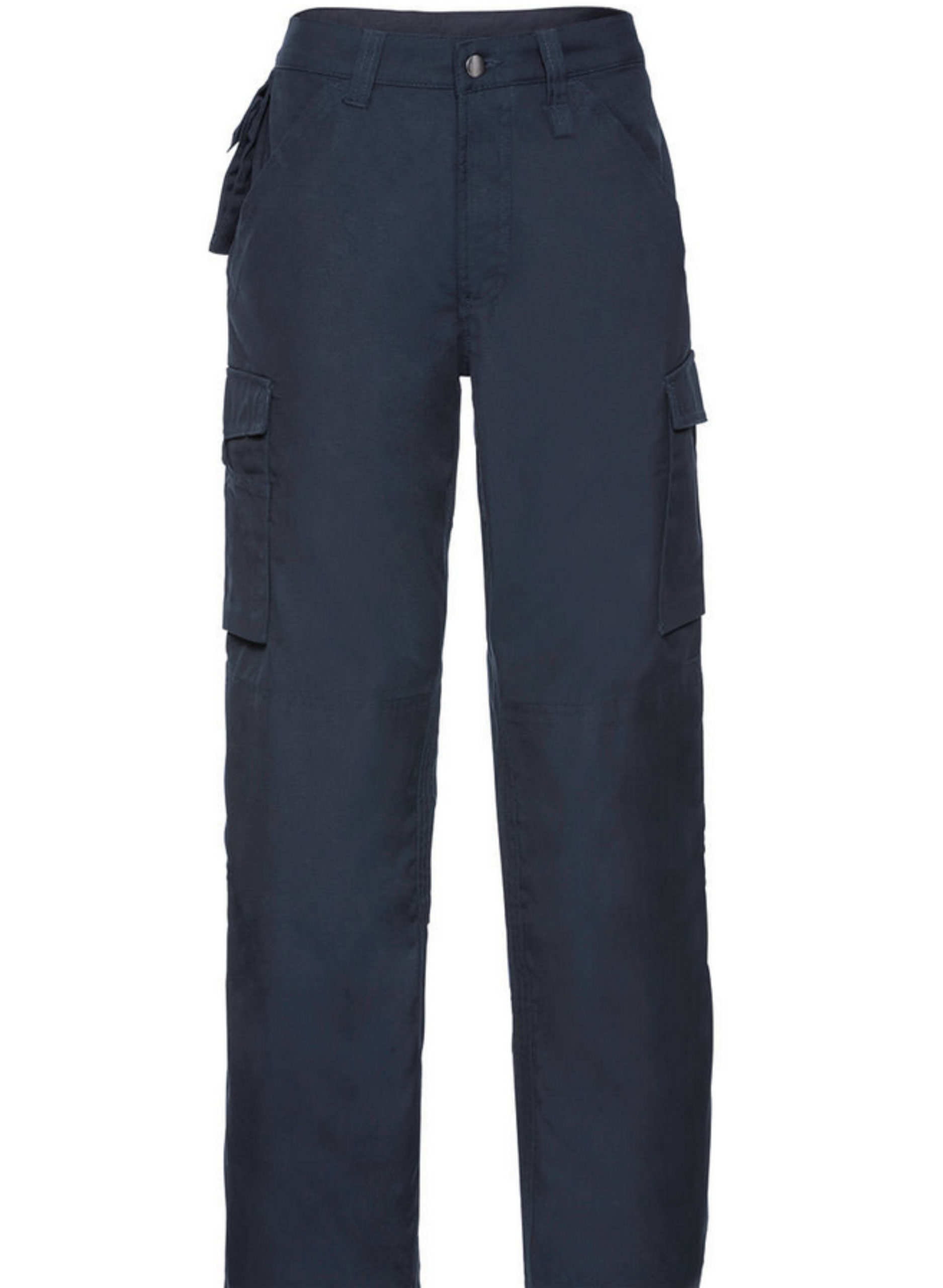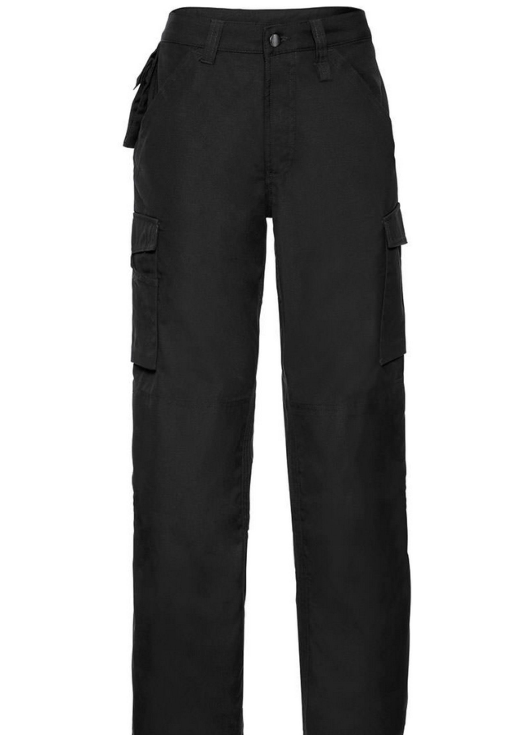 Strapazierfähige Workwearhose in perfekter Passform, zwei Taschen hinten, eine offen, eine mit Klappe und Klettverschluss, Cargo-Taschen an beiden Beinen, rechts mit praktischen Unterteilungen, kleine Extratasche unter Taillenbund, Dreifachnähte an Innenbein und Taschenöffnungen, verstärkter Gesäßbereich, innenliegende Einschubtaschen für Kniepolster (max. 21 cm x 15 cm), YKK-Reißverschluss, trocknergeeignet und waschbar bis 60°.