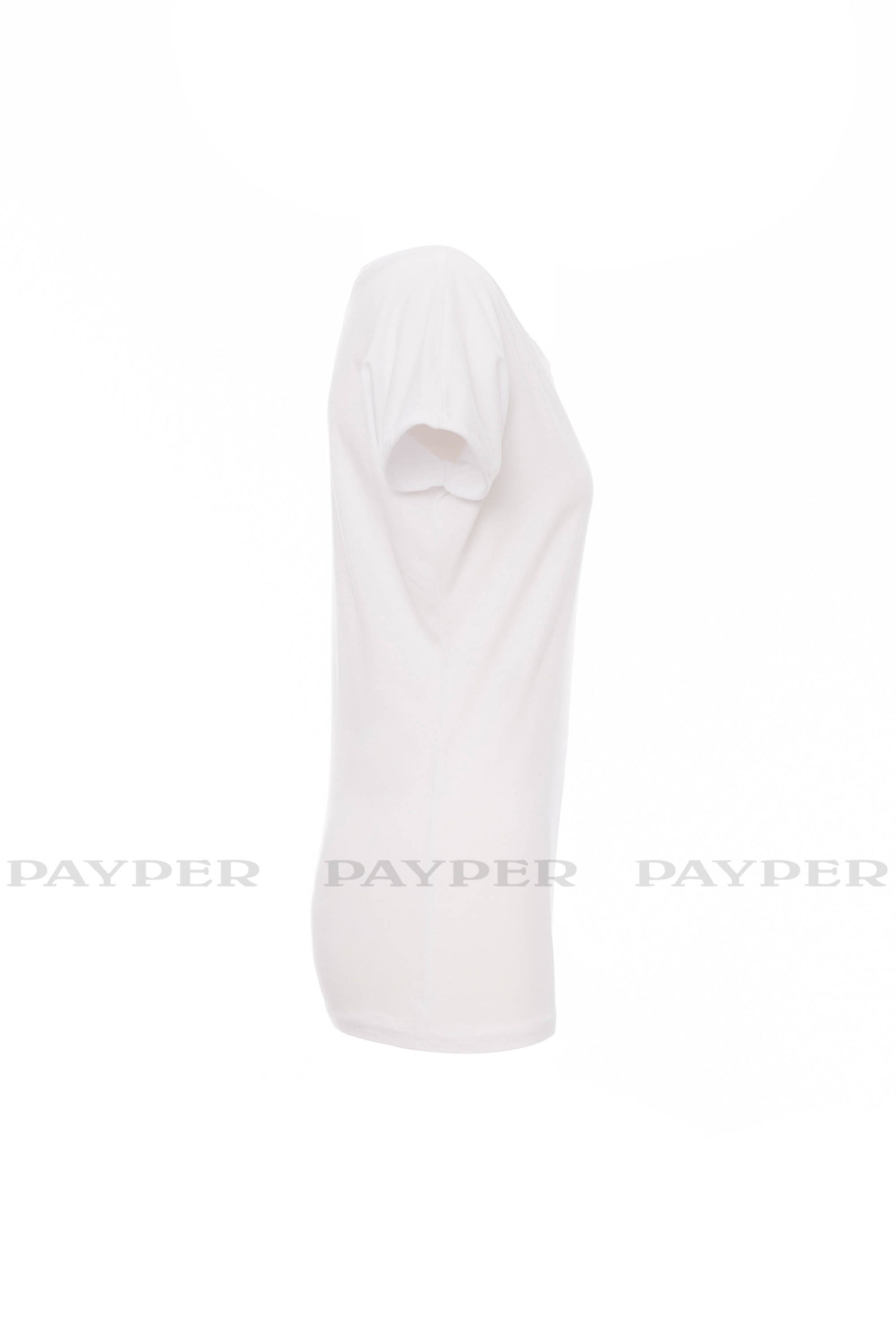 Tailliertes Damen-T-Shirt, kurzärmelig, mit U-Boot-Ausschnitt, schmalem 1 cm Kragen, kurzen, schmal geschnittenen Ärmeln mit kleinem Aufschlag, Seitennaht