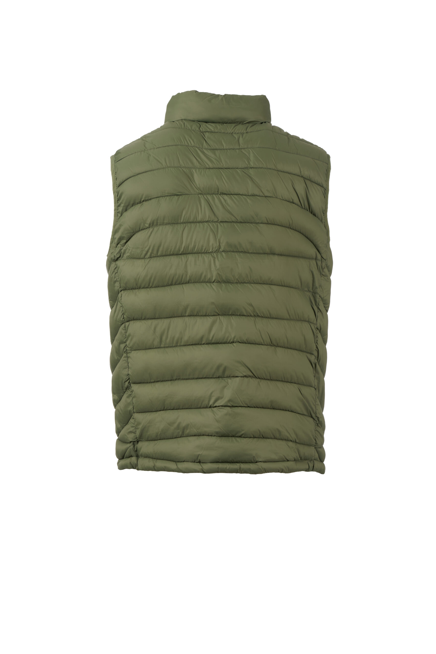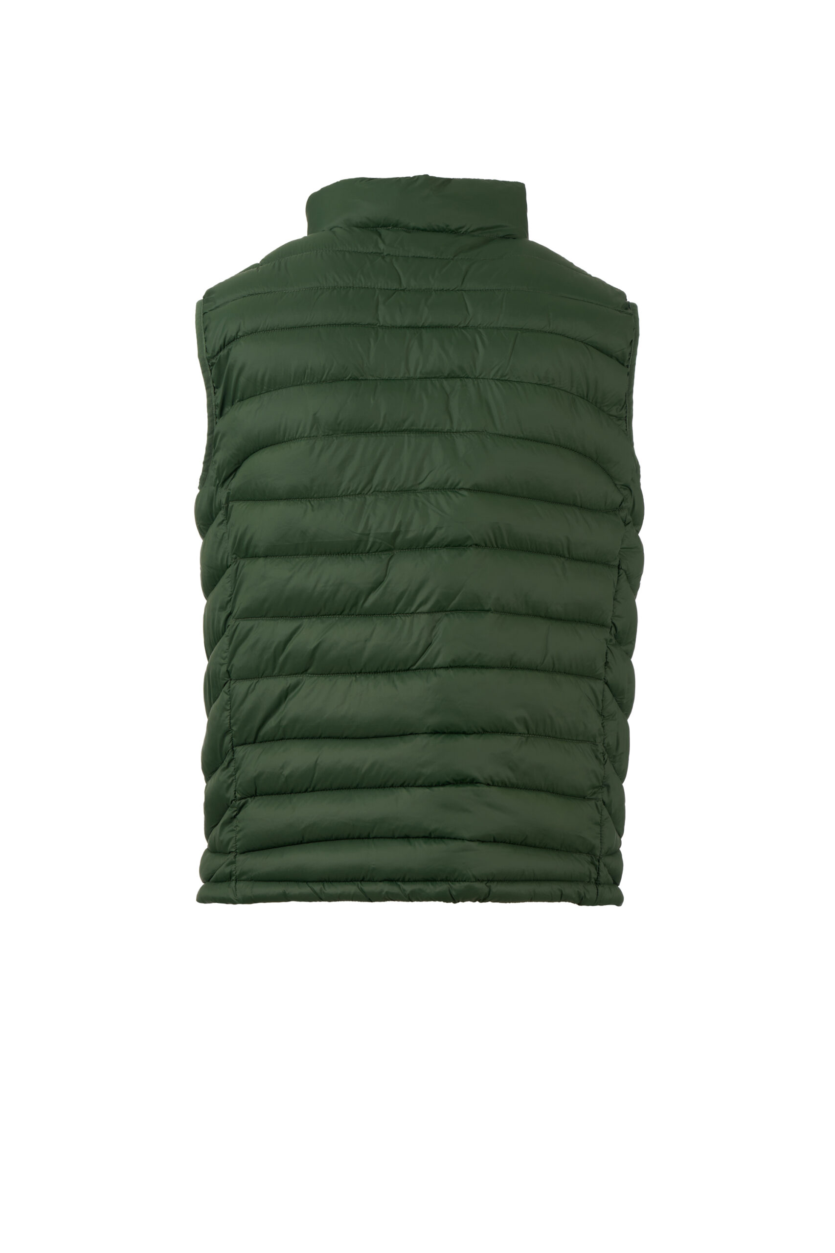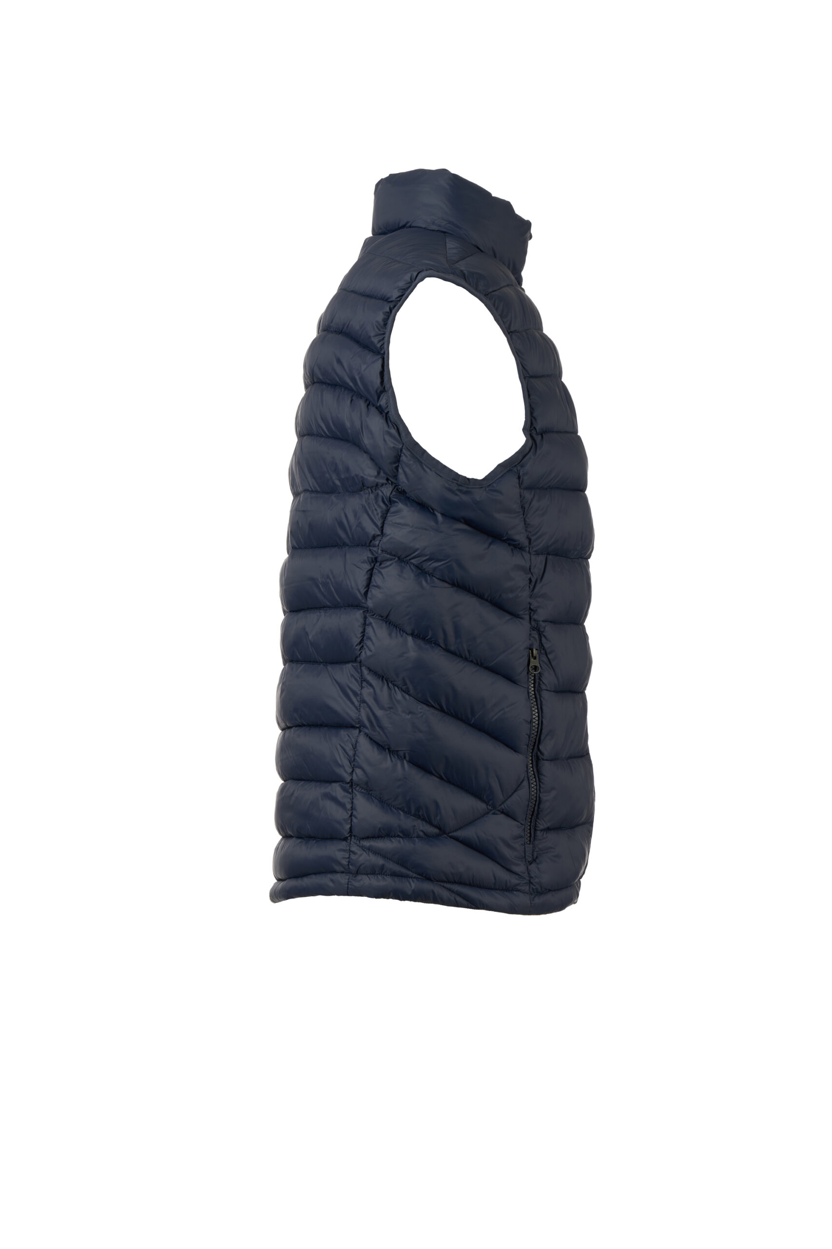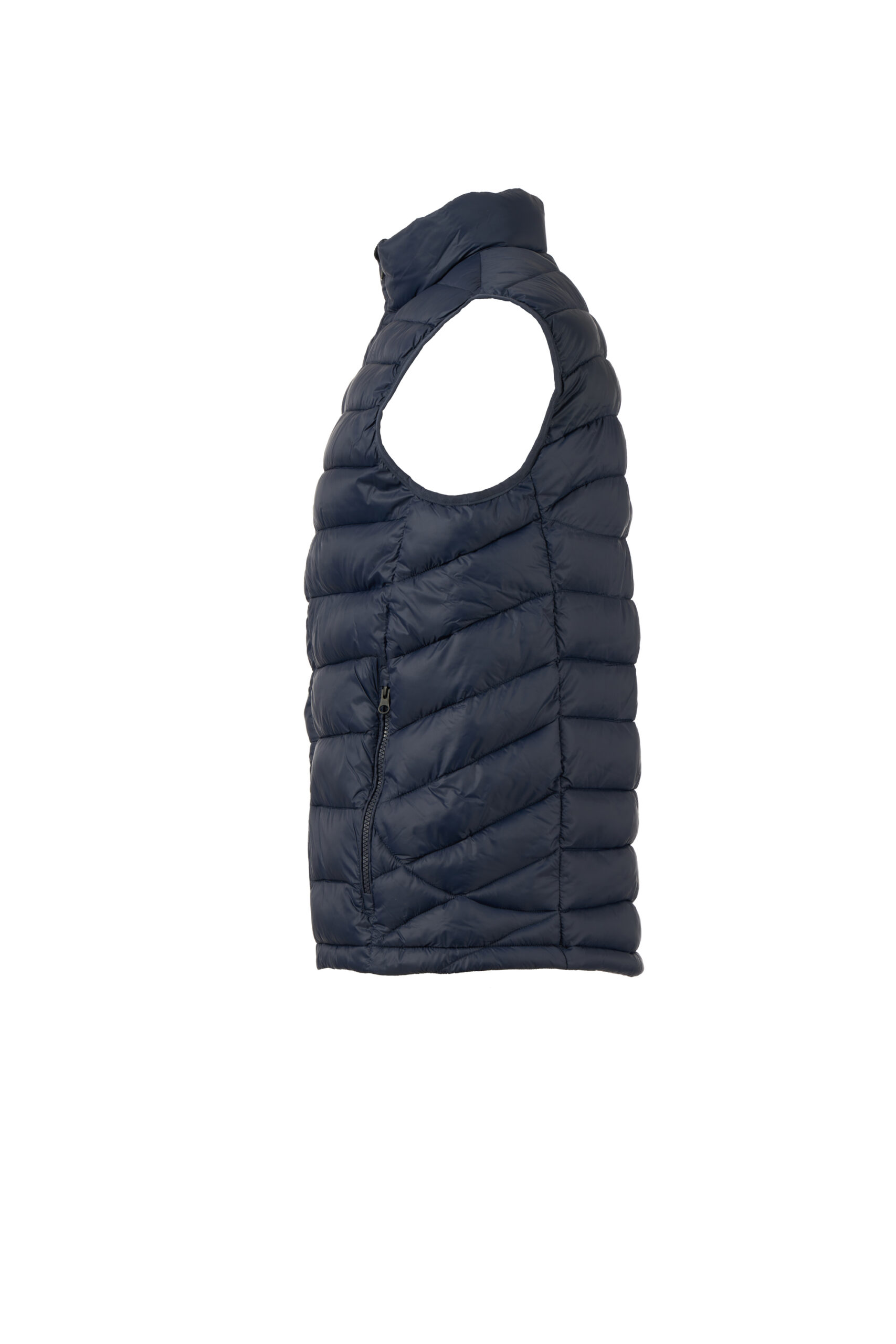 Herrenweste mit Wattierung aus freien Fasern (130 g/m²), Reißverschluss aus Kunststoff mit Propellersymbol auf dem Metallschieber. 2 Seitentaschen mit sichtbarem Reißverschluss. Paspelierung Ton-in-Ton. Saum mit Kordelzug regulierbar.