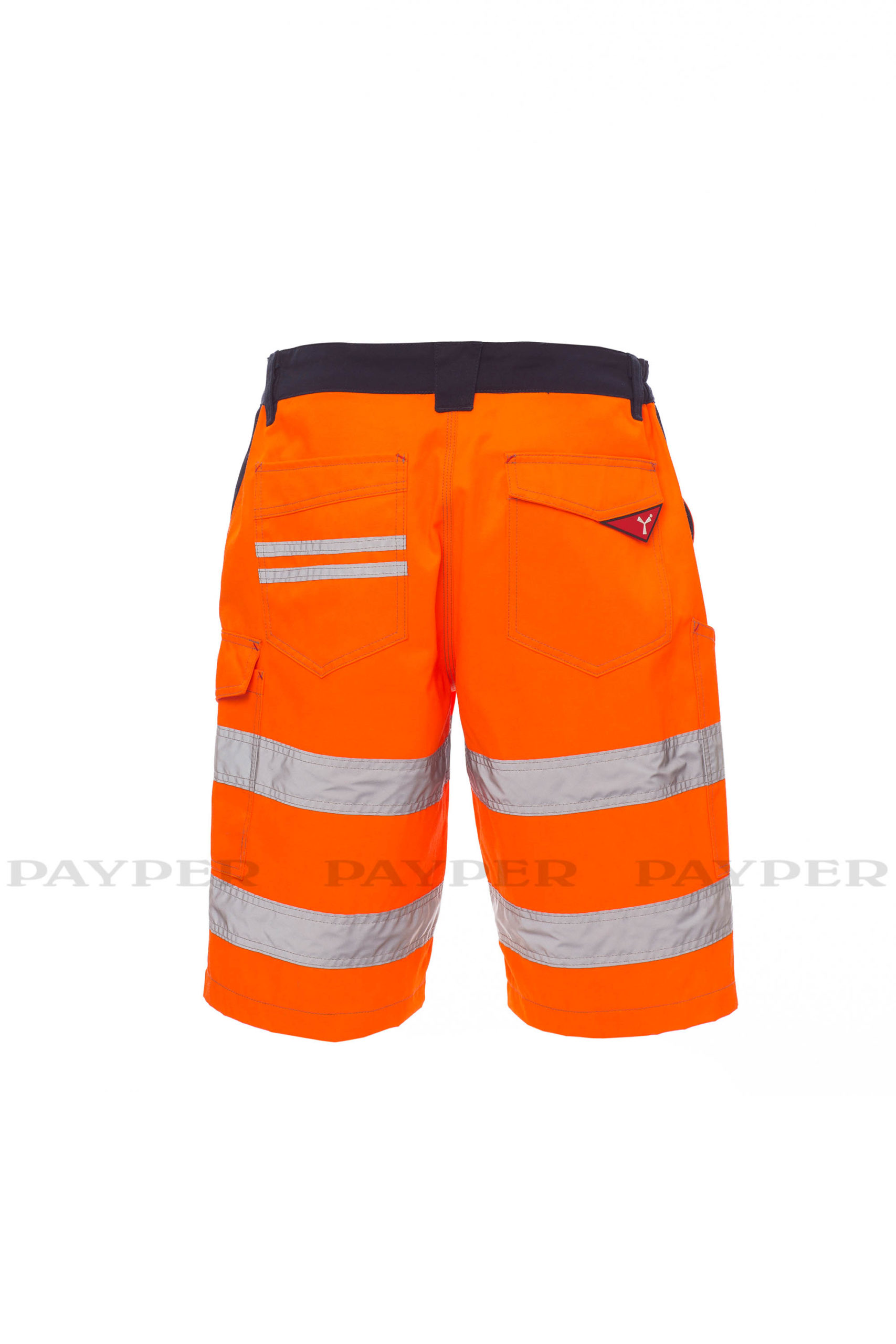 Herren-Bermudas, Reflexstreifen als Warnschutz, seitlich dehnbarer Bund und Gürtelschlaufen, Hosenschlitz mit Reißverschluss und Knopf aus Kunststoff, 2 klassisch geschnittene Vordertaschen, 1 Seitentasche mit LOCK SYSTEM, 1 Zollstocktasche, 1 offene Gesäßtasche und 1 mit Patte und Klettverschluss, Dreifachnähte im Schritt und am Innenbein.