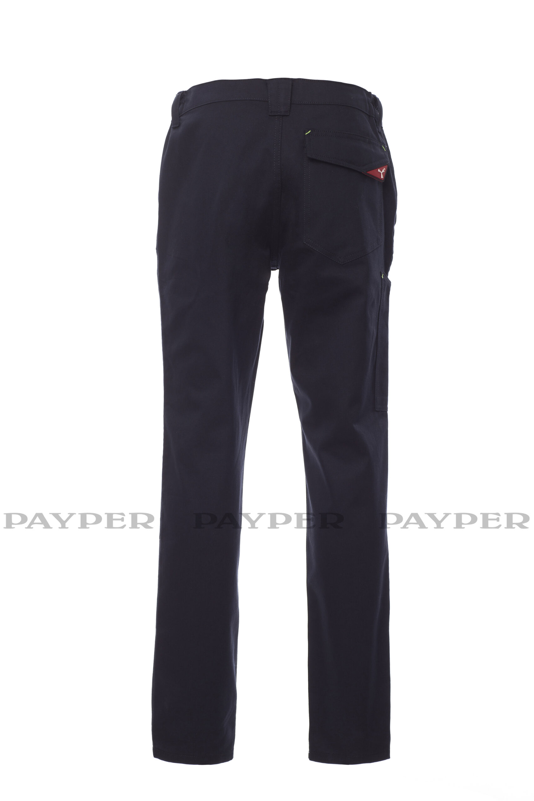 Hose aus leichtem Ripstop-Gewebe, Gürtelschlaufen und dehnbarer Bund, Hosenschlitz mit Reißverschluss und Knopf. 2 klassisch geschnittene Vordertaschen, seitliche Zollstocktasche am rechten Bein, 1 Gesäßtasche mit Patte und Klettverschluss. Dreifachnähte.
