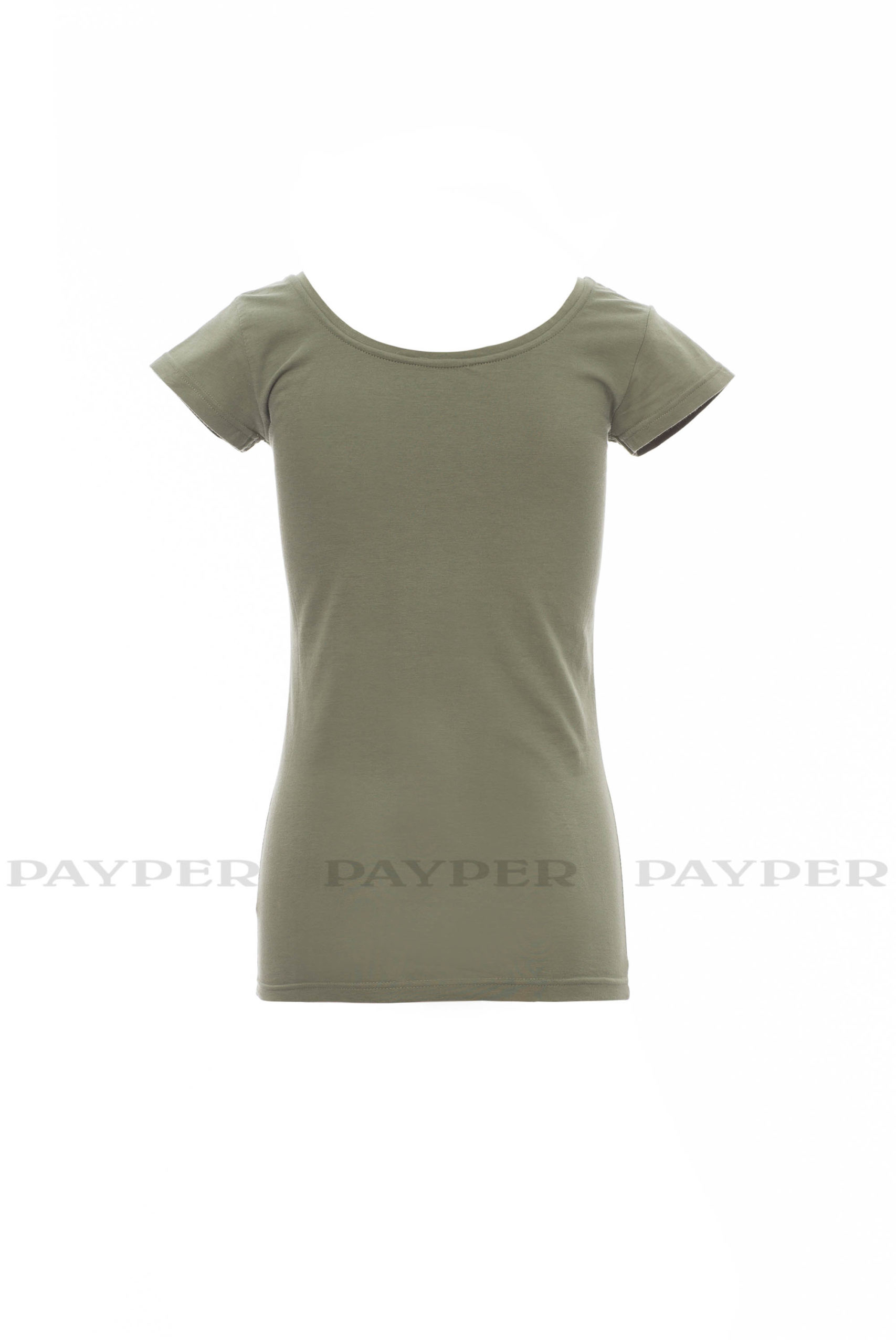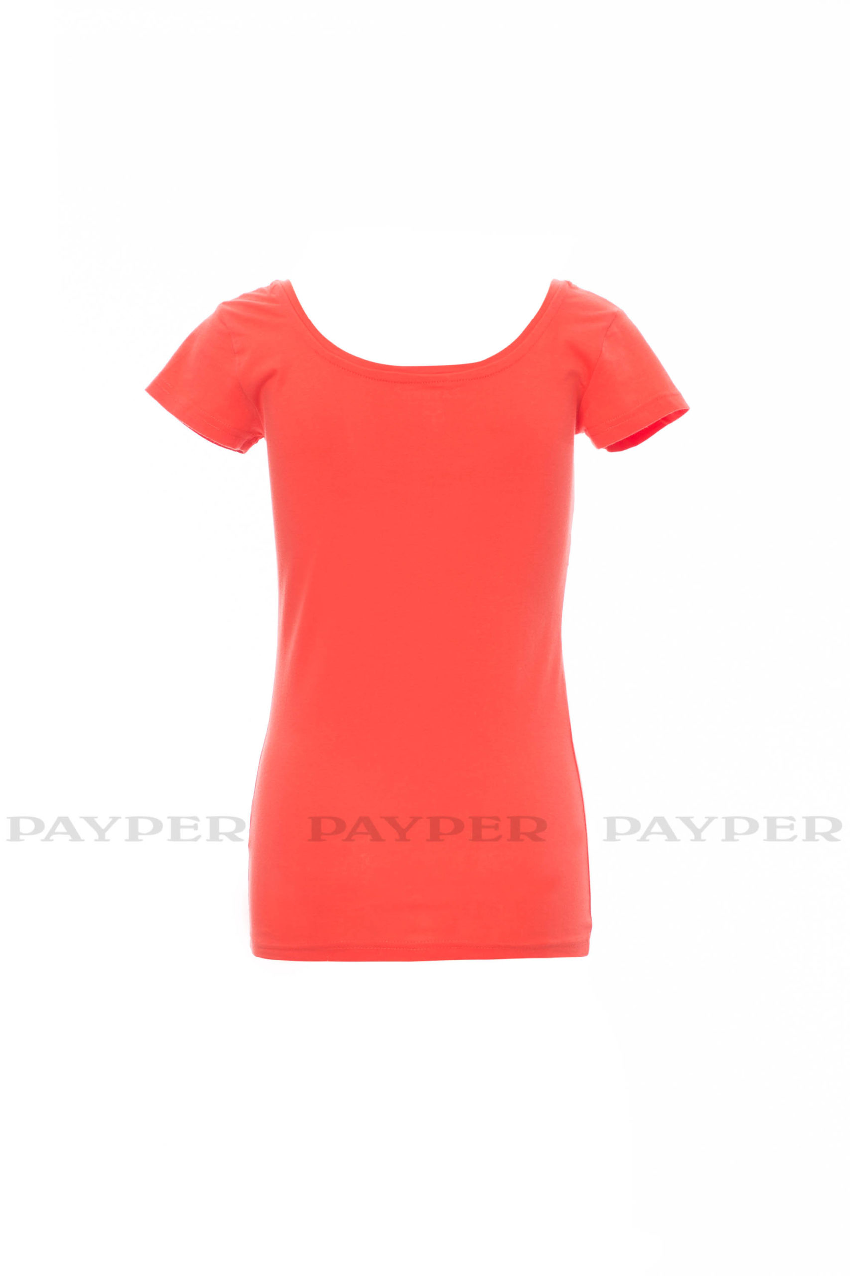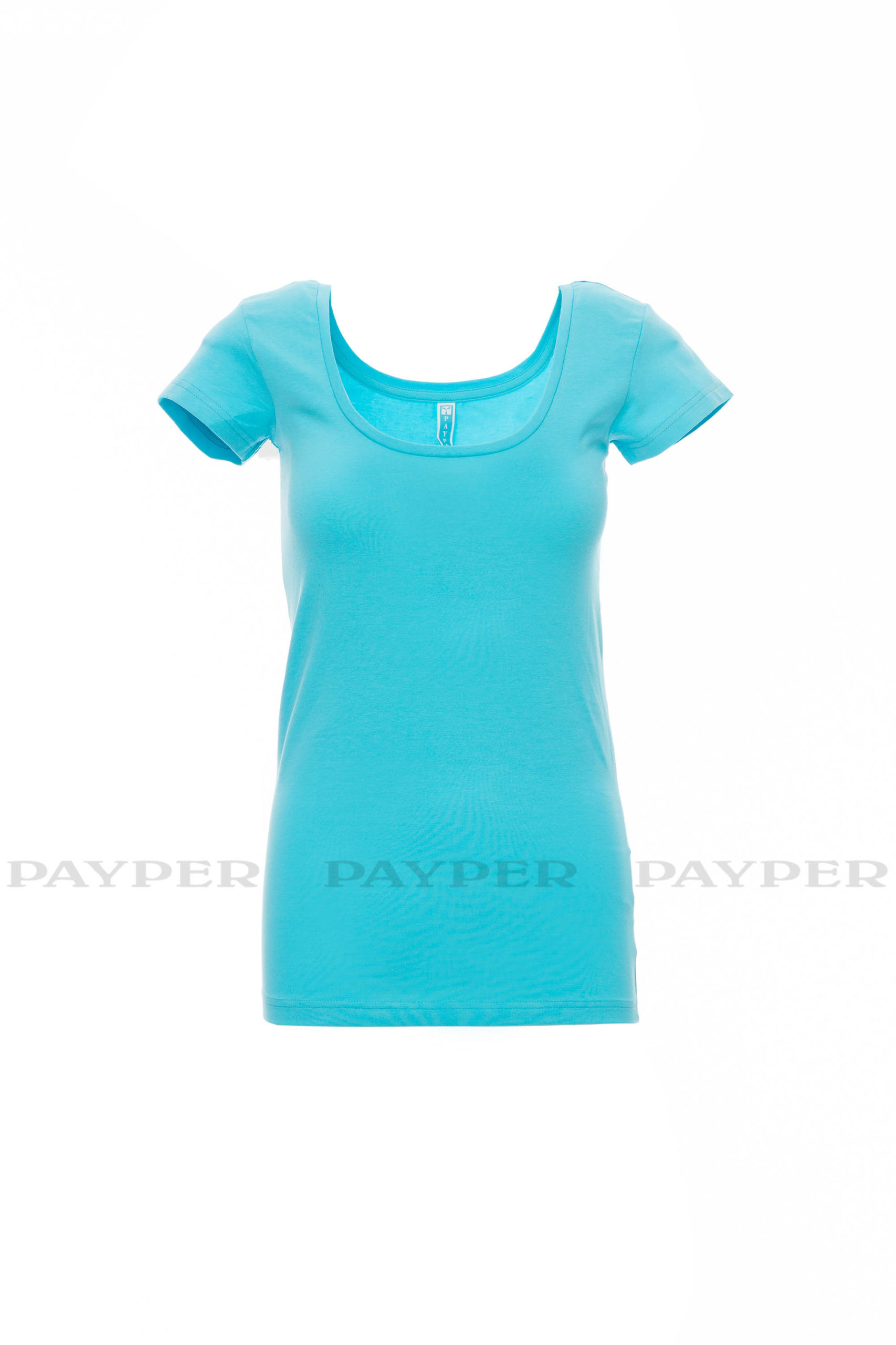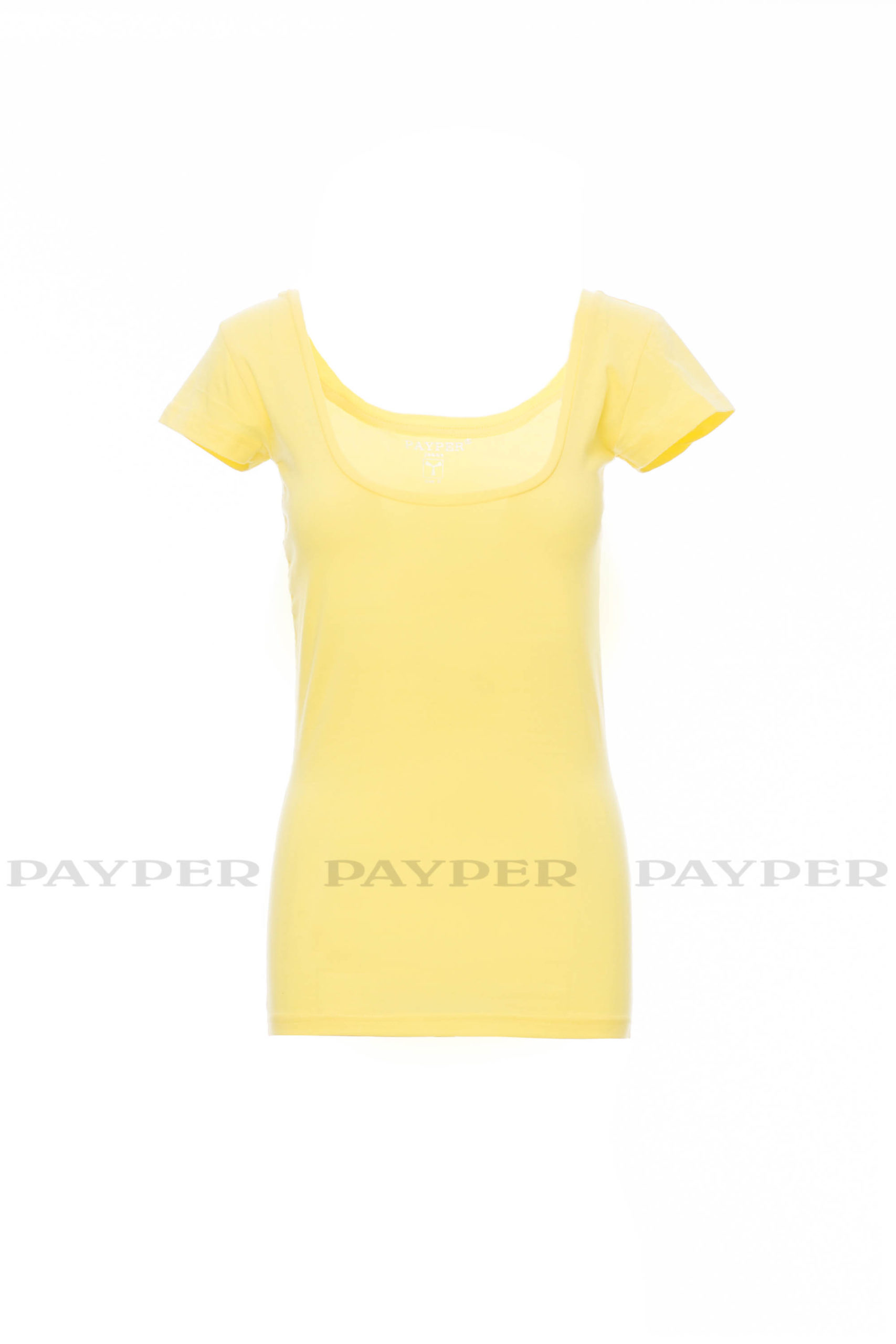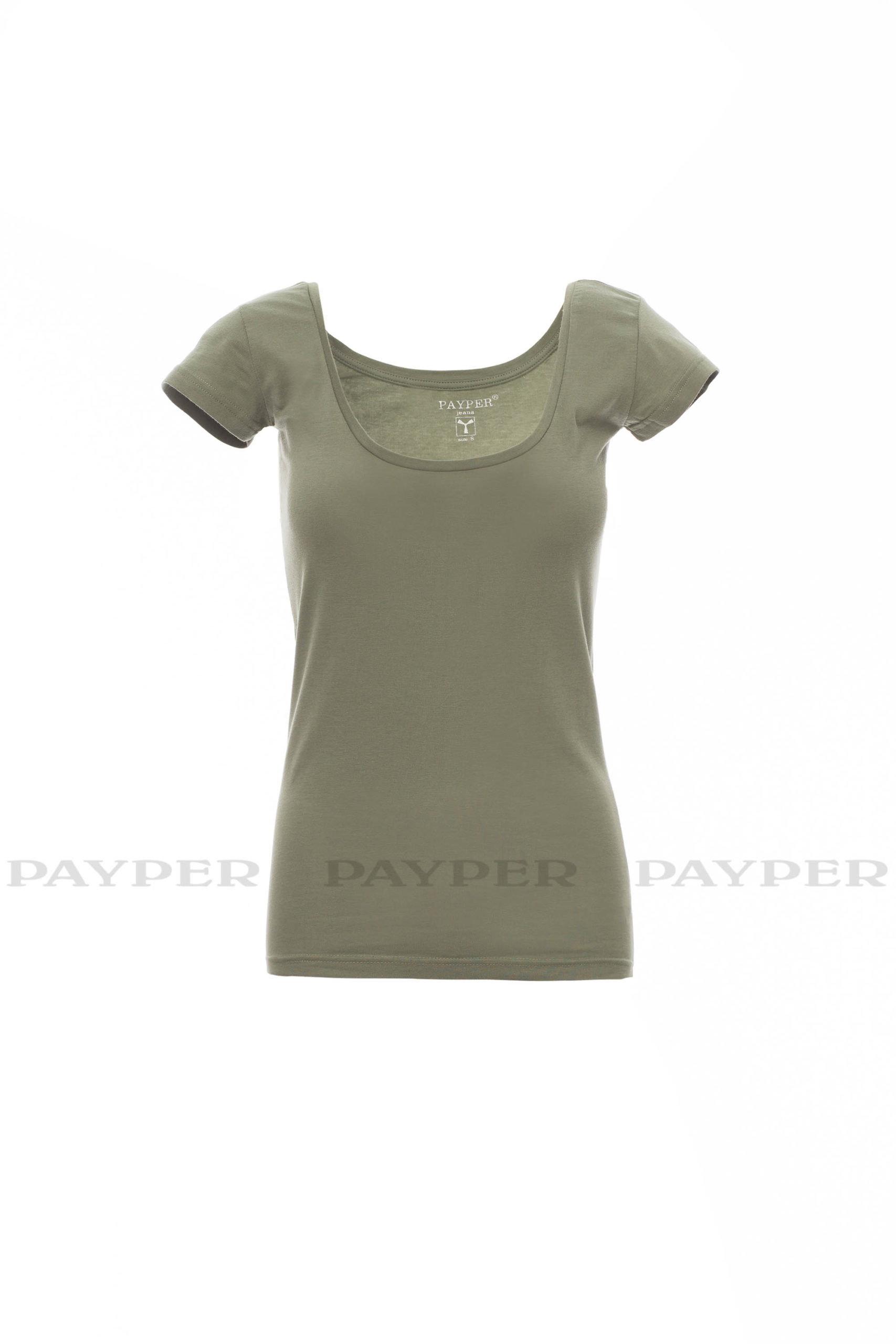 Tailliertes Damen-T-Shirt, kurzärmelig, mit tiefem, rechteckigem Ausschnitt, schmalem 1 cm Halsabschluss, Seitennaht