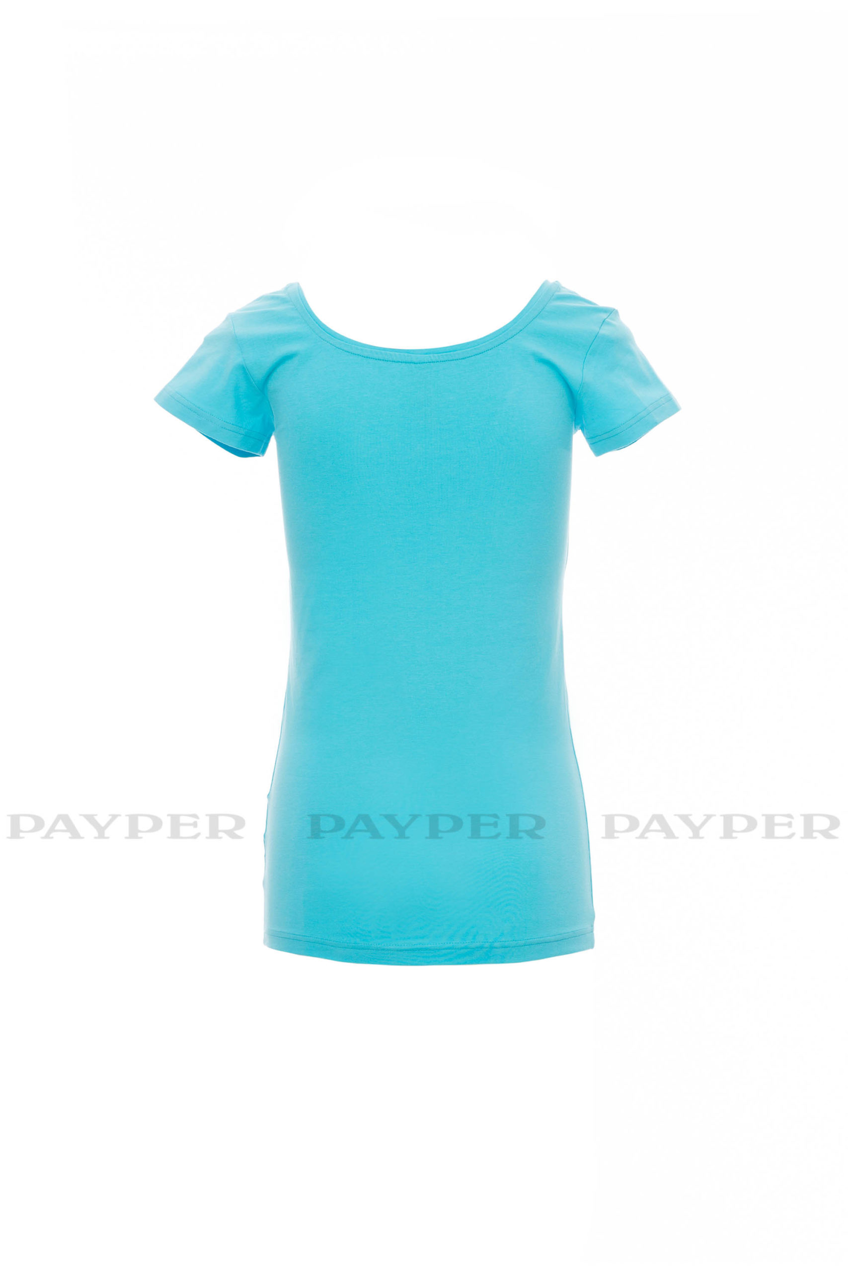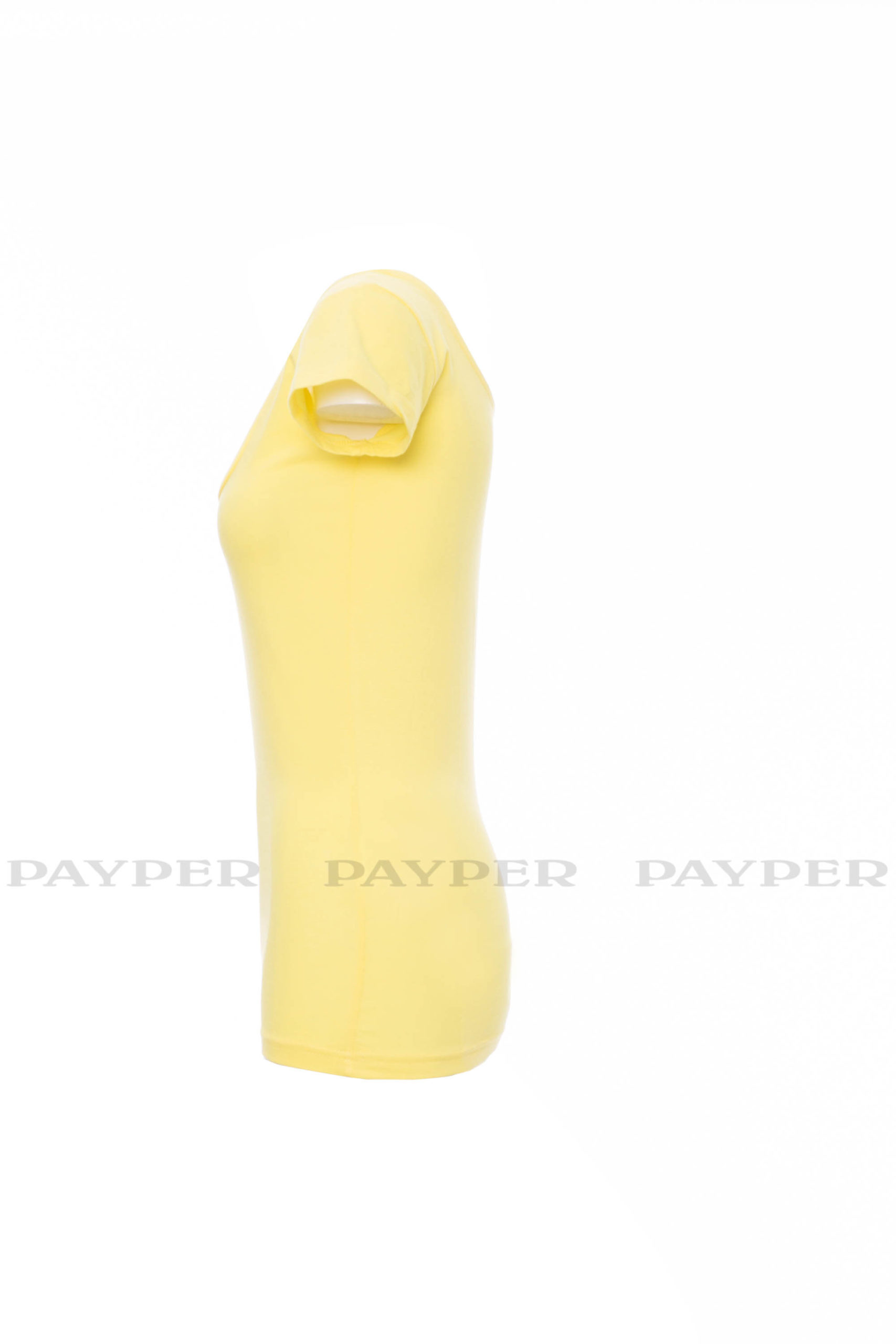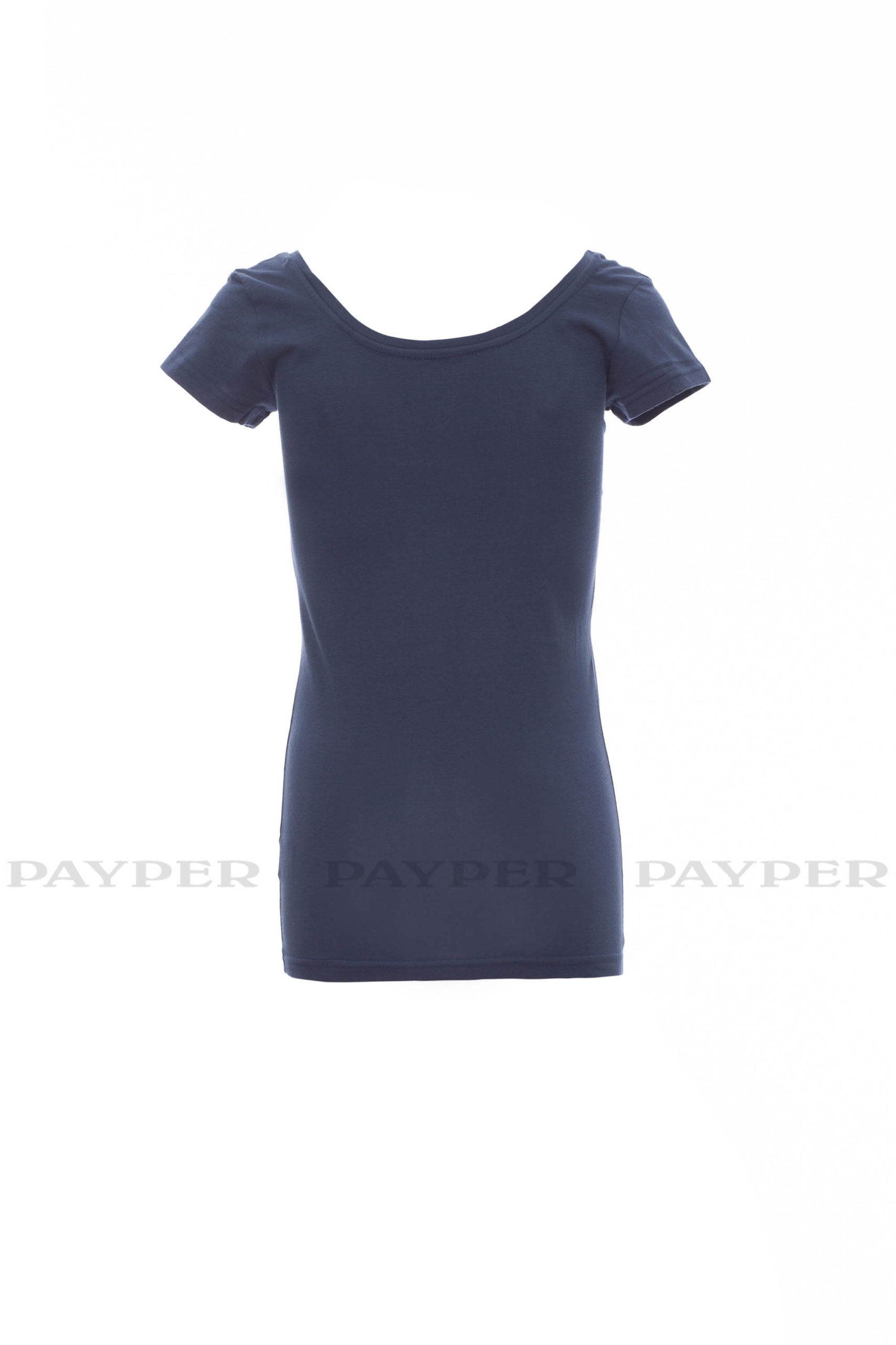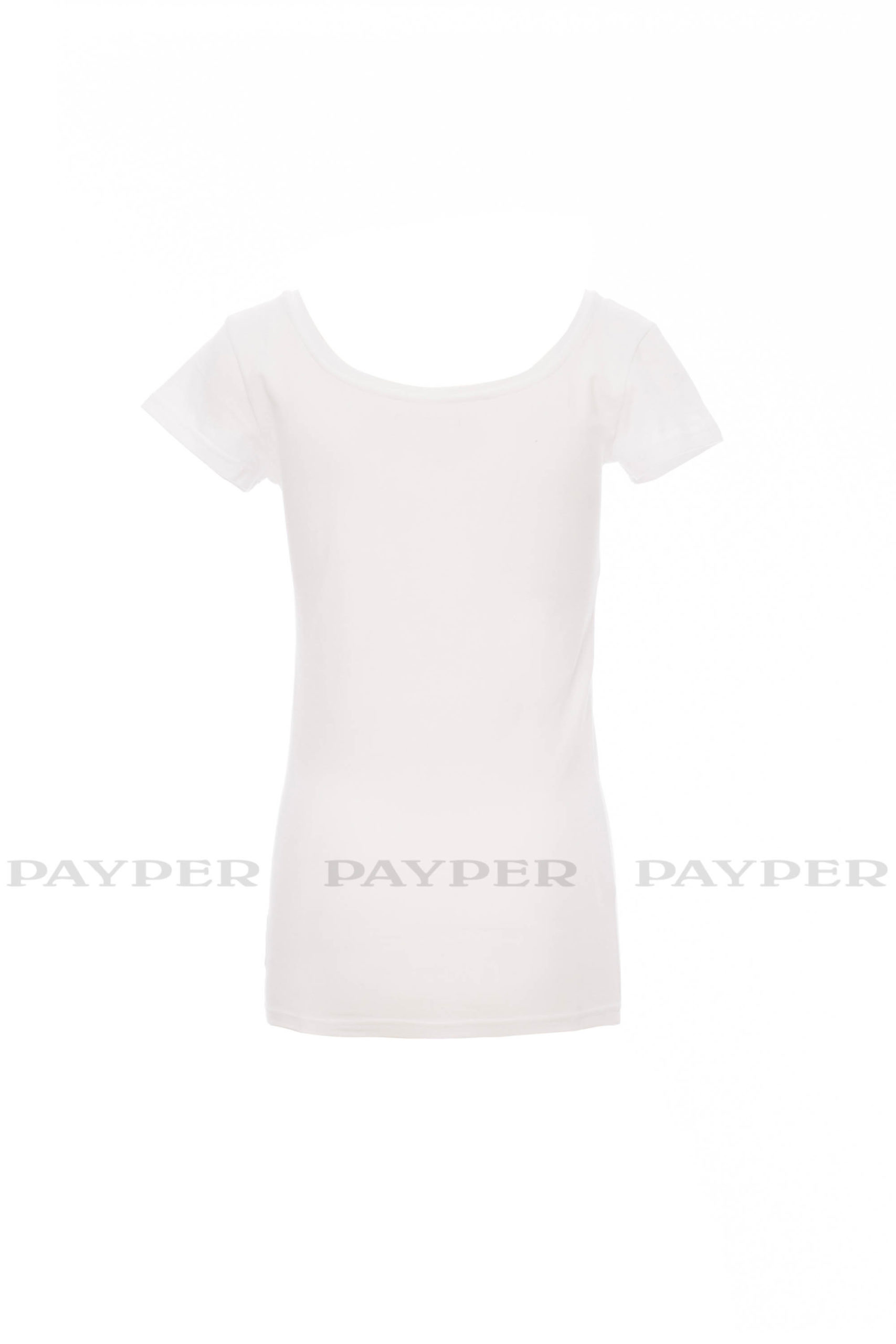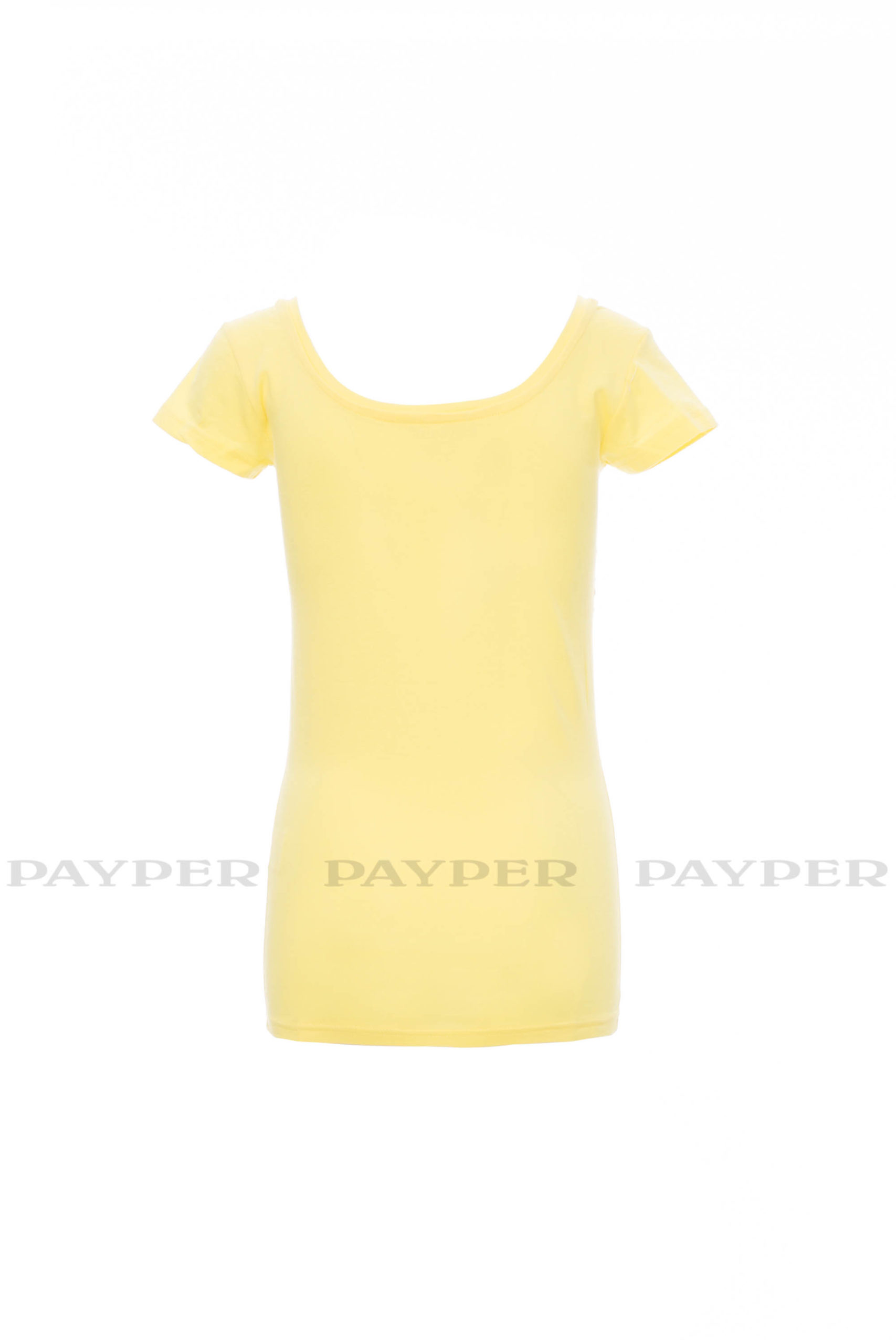 Tailliertes Damen-T-Shirt, kurzärmelig, mit tiefem, rechteckigem Ausschnitt, schmalem 1 cm Halsabschluss, Seitennaht