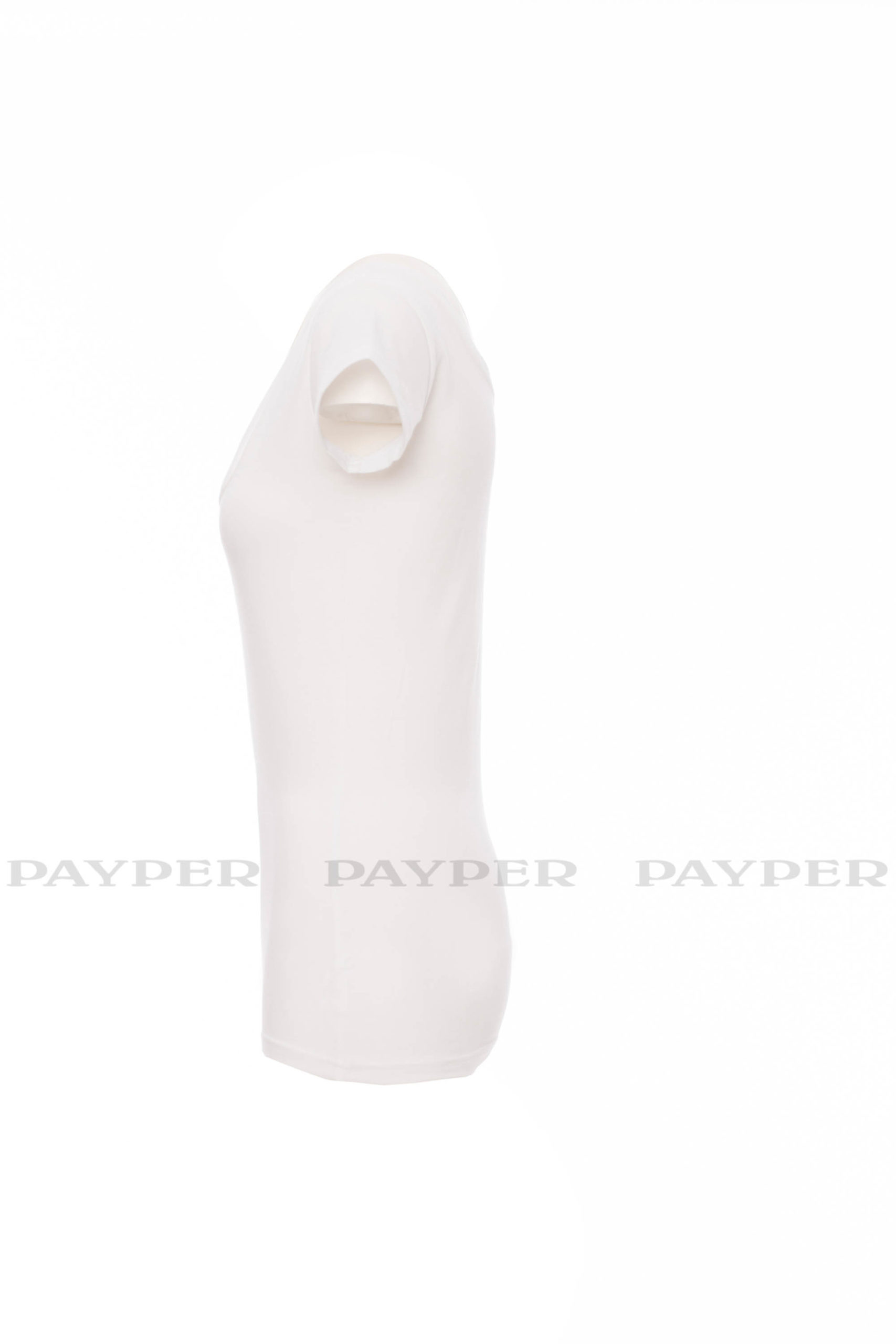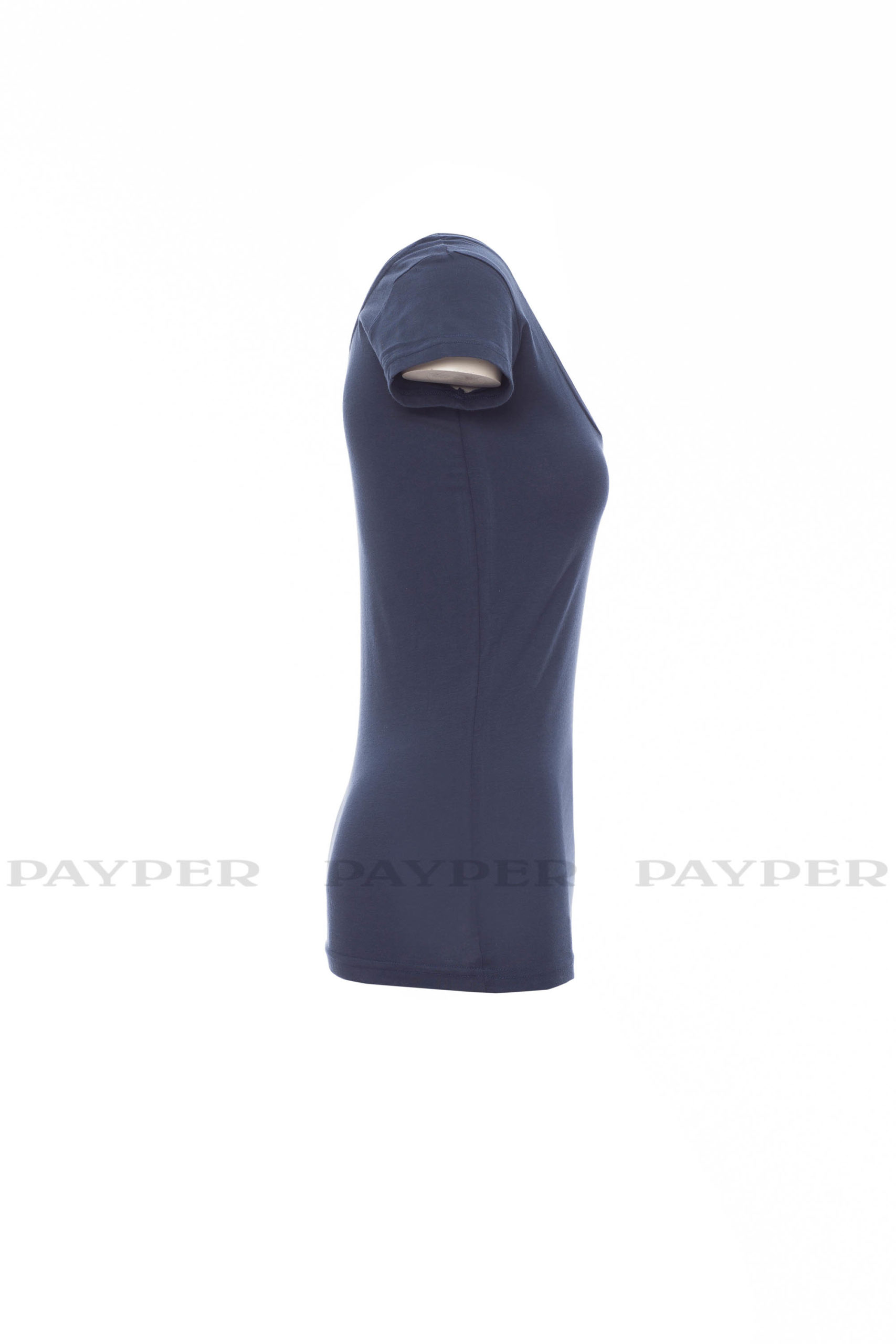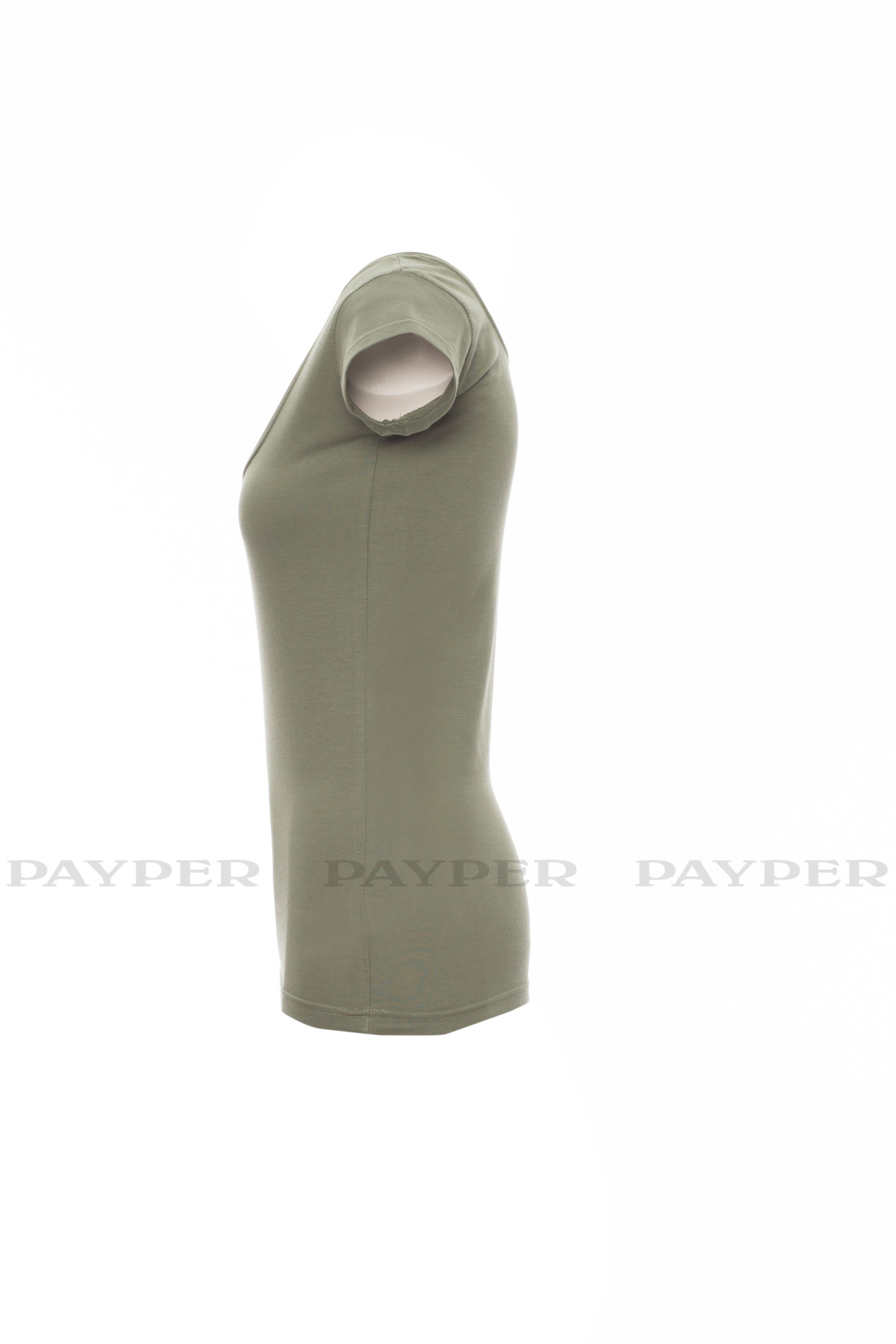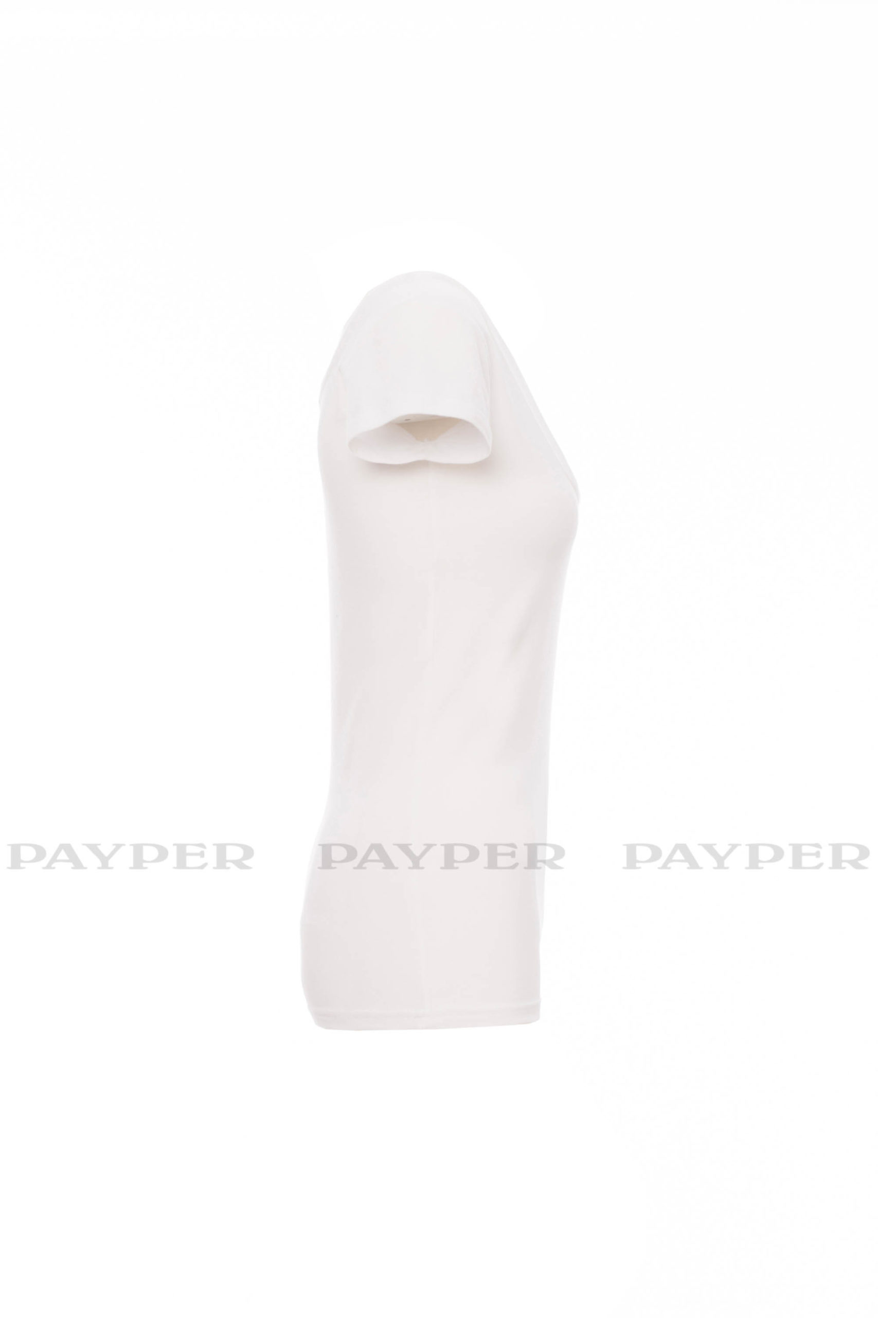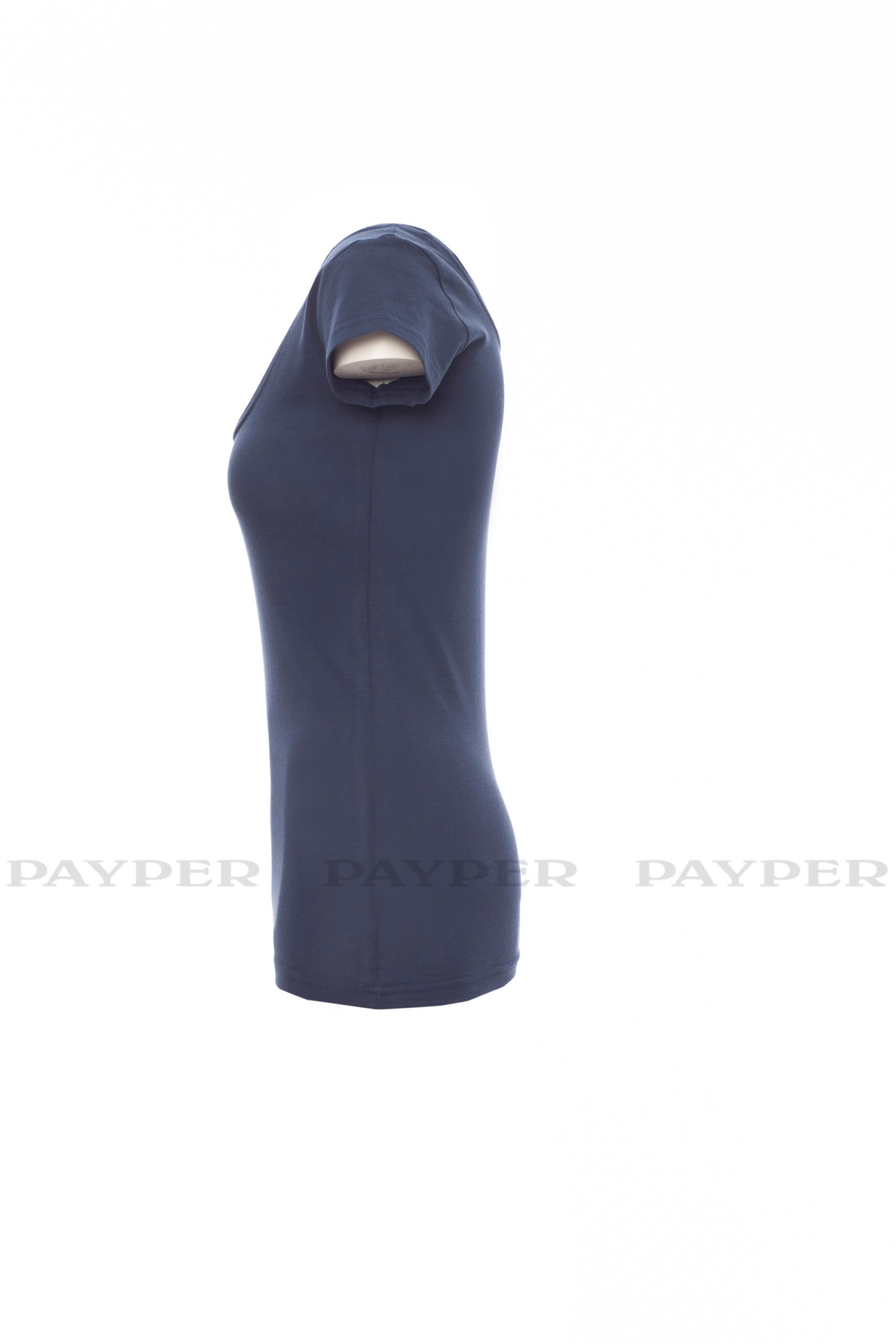 Tailliertes Damen-T-Shirt, kurzärmelig, mit tiefem, rechteckigem Ausschnitt, schmalem 1 cm Halsabschluss, Seitennaht