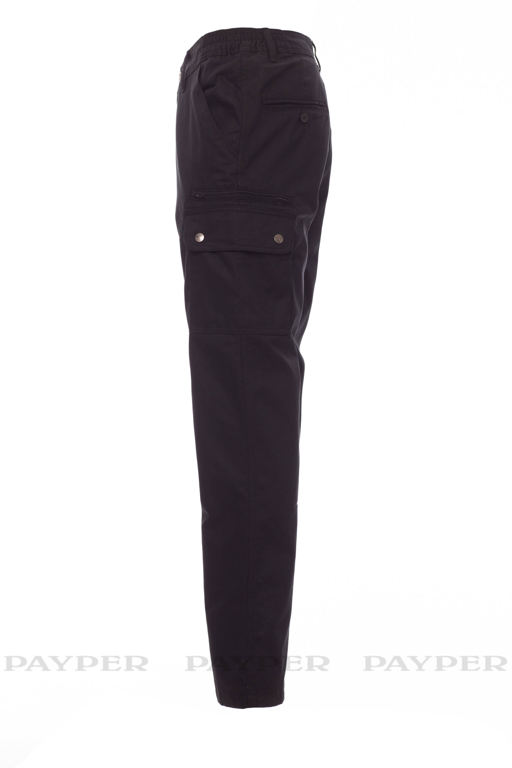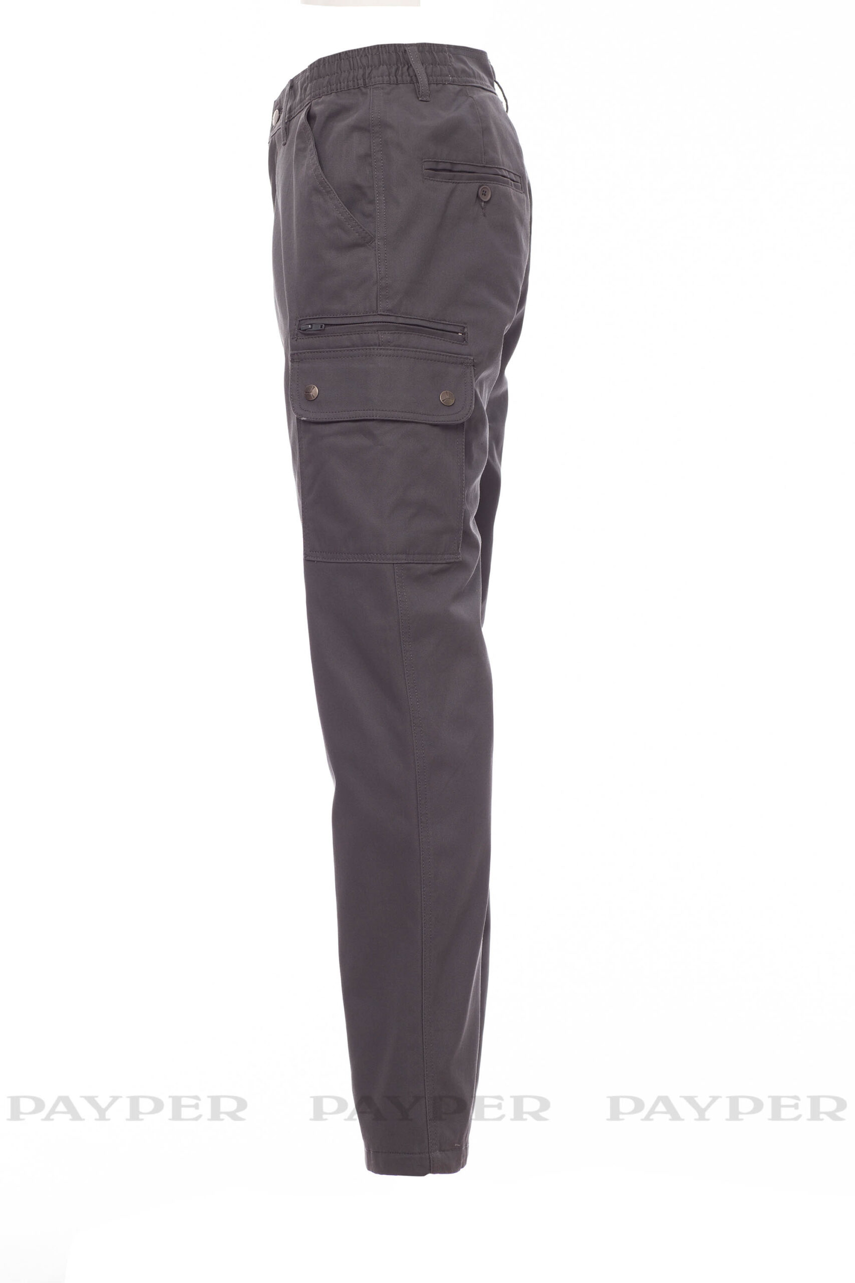 Winter-Herrenhose, Futter aus Polyesterflanell (Gewicht 110 g/m²), seitlich dehnbarer Bund und Gürtelschlaufen, Hosenschlitz mit Metallreißverschluss und -knopf, 2 klassisch geschnittene Vordertaschen, 2 Seitentaschen mit Patte und Druckknöpfen, 1 Reißverschlusstasche links, 1 versteckte Zollstocktasche rechts, 2 Gesäß-Leistentaschen mit Knopf und Knopfloch.