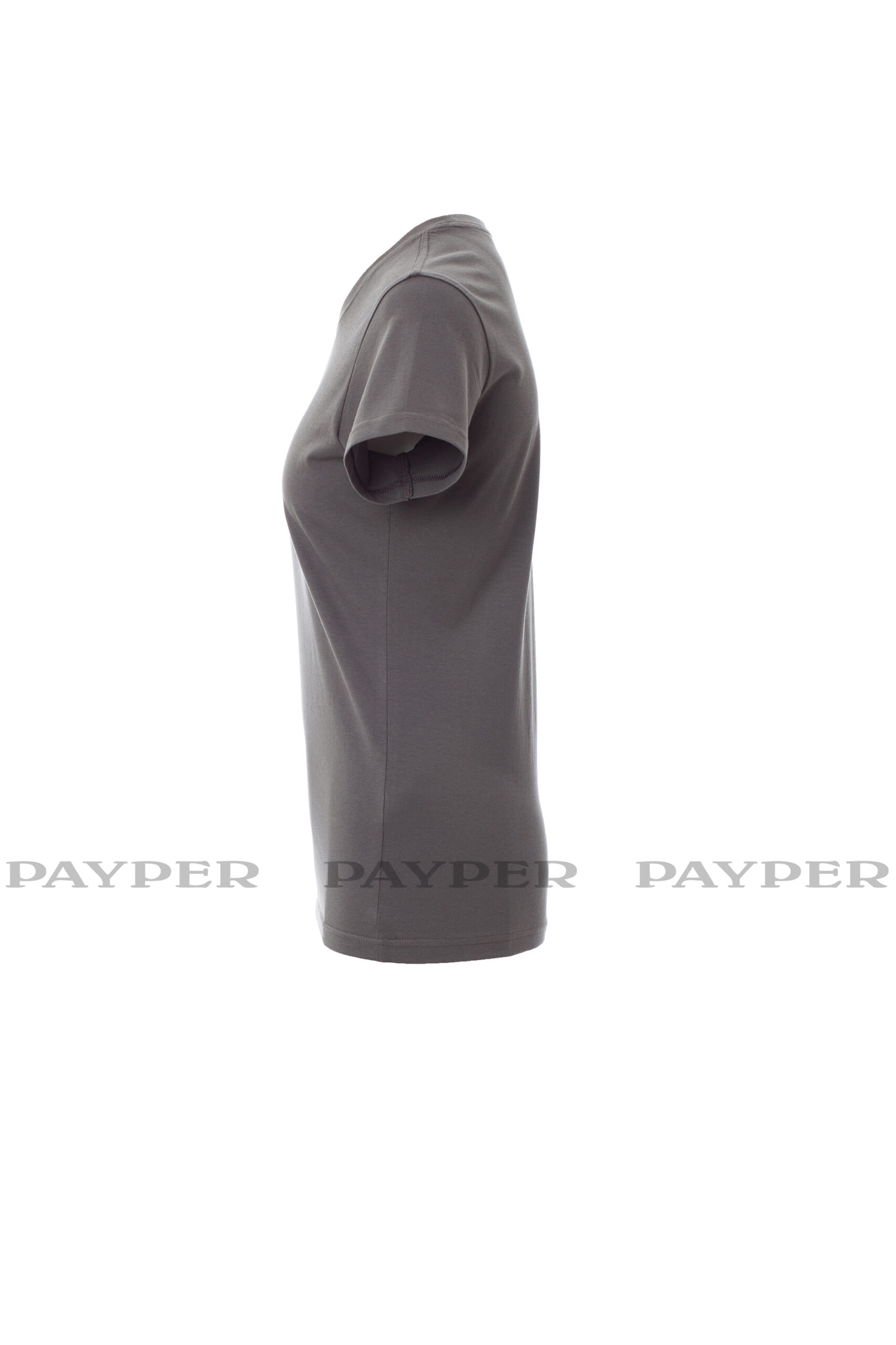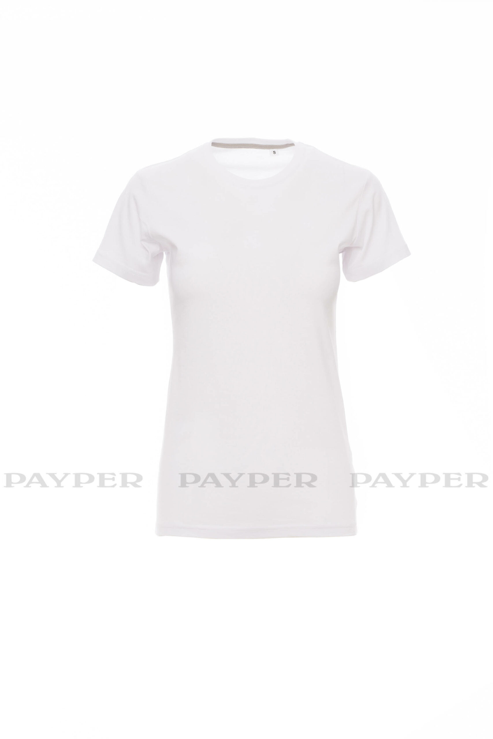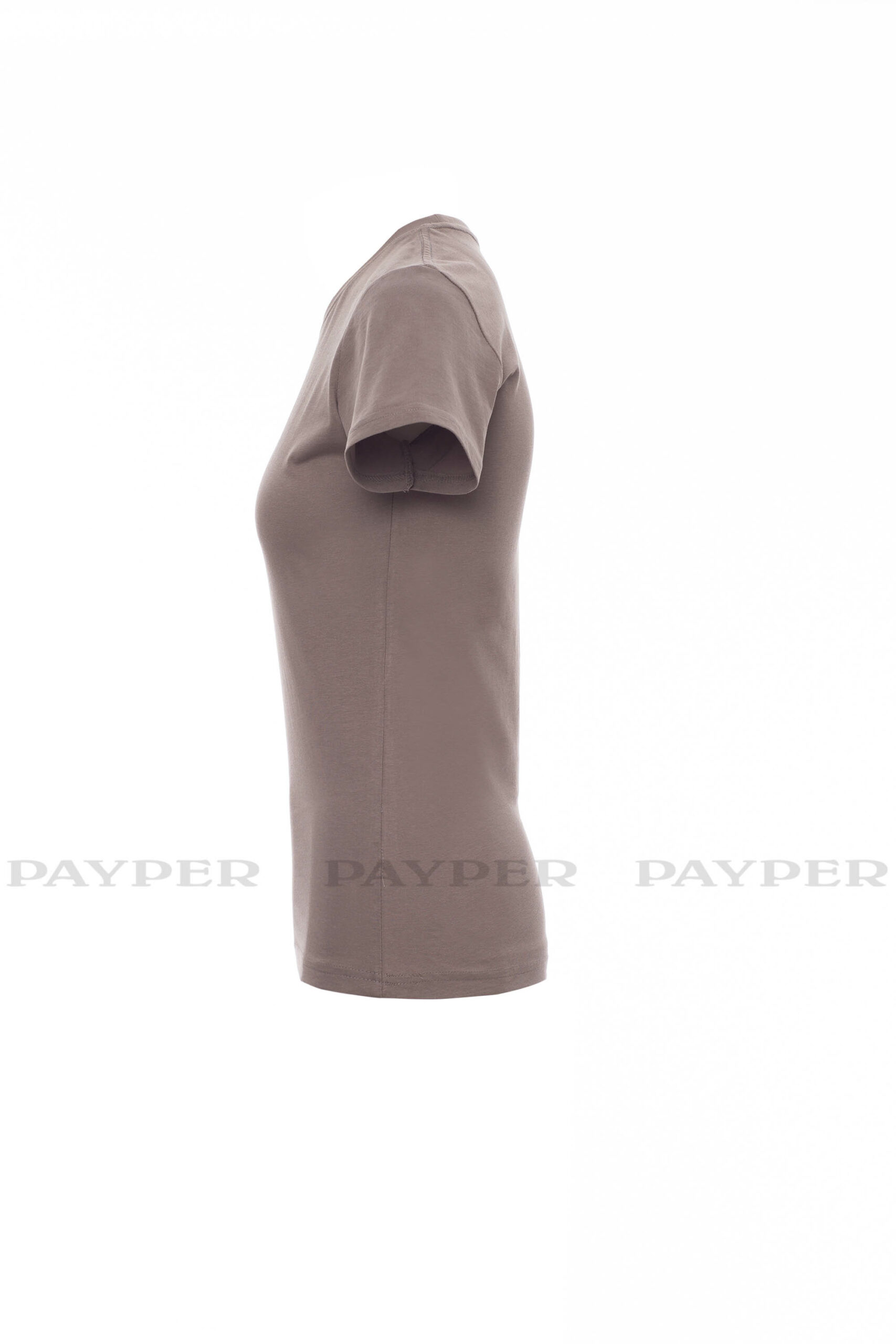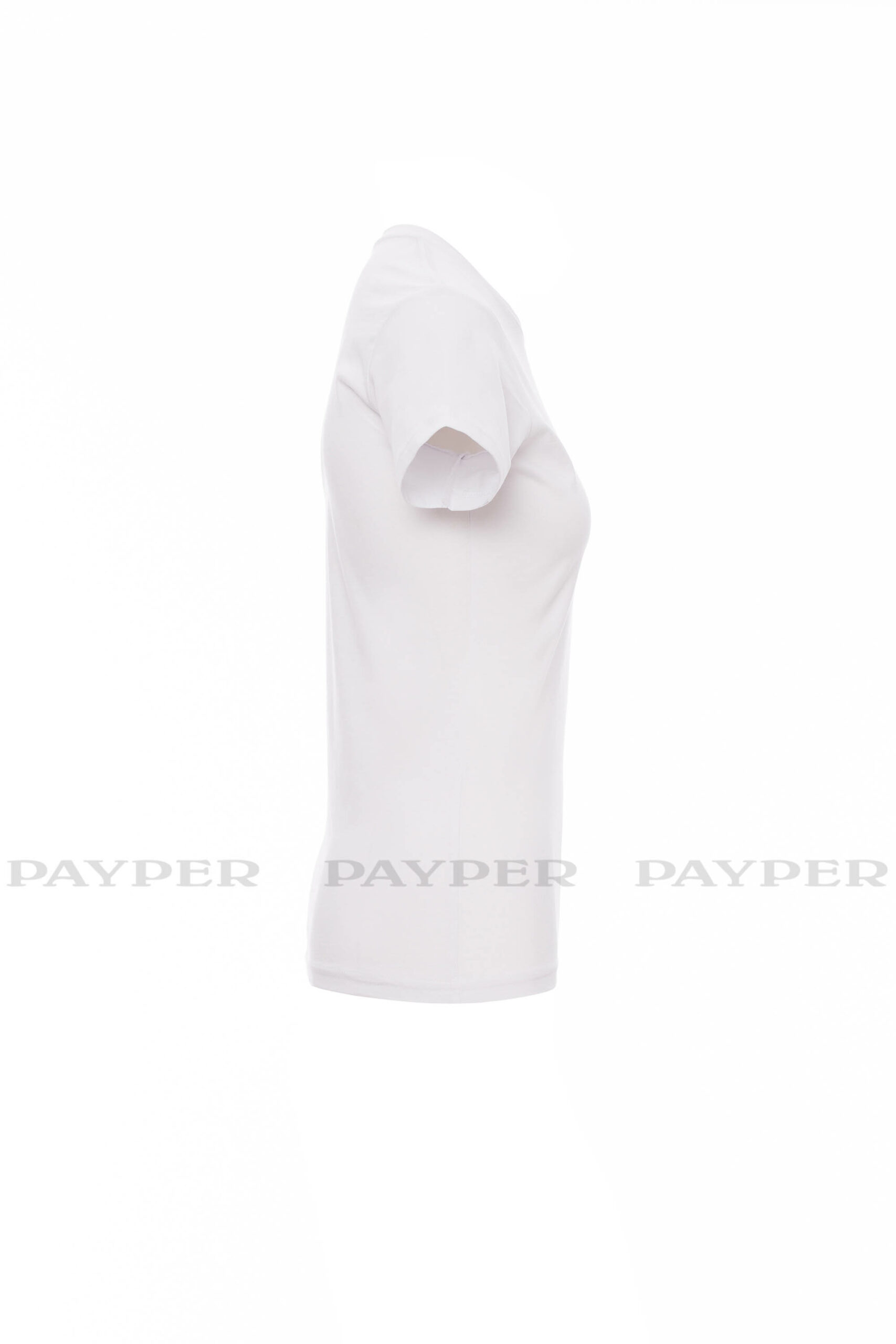 Tailliertes Damen-T-Shirt mit Rundhalsausschnitt, kurzärmelig, Feinripp-Kragen 1,5 cm aus Spandex-Mischgewebe mit Kappnaht an der Vorderseite, Verstärkungsband von Schulter zu Schulter, Stretchnähte, Seitennaht. Neutral, ohne Etikett
