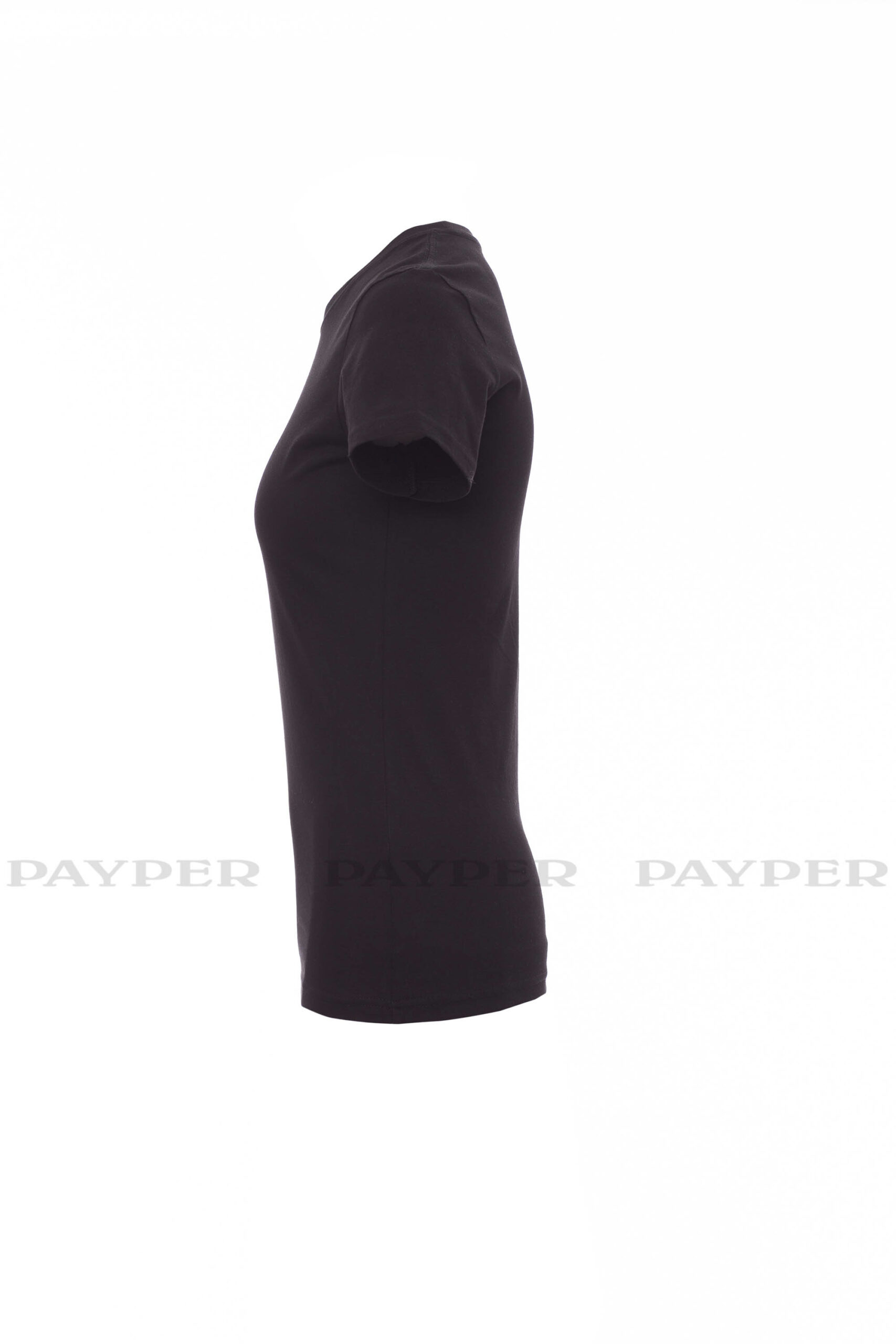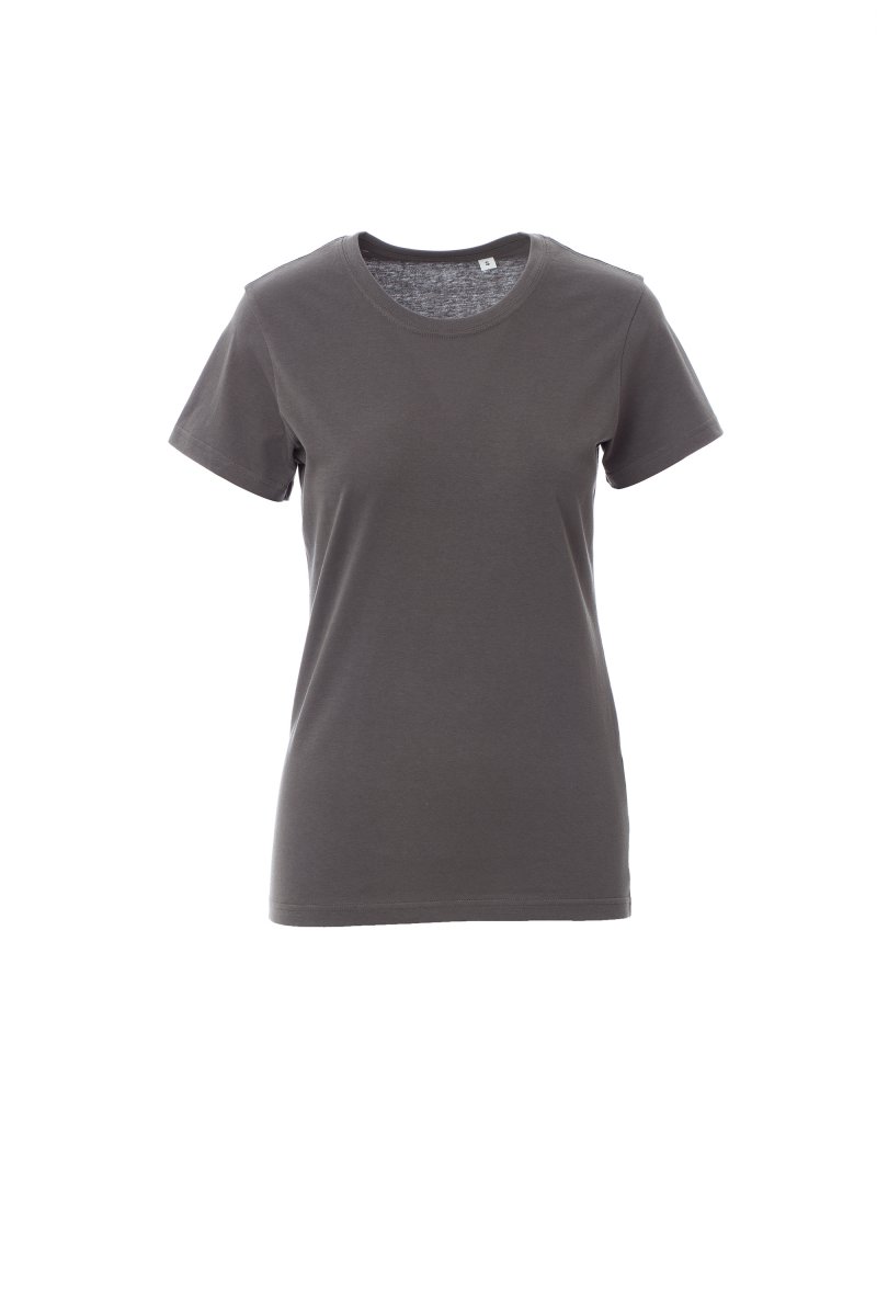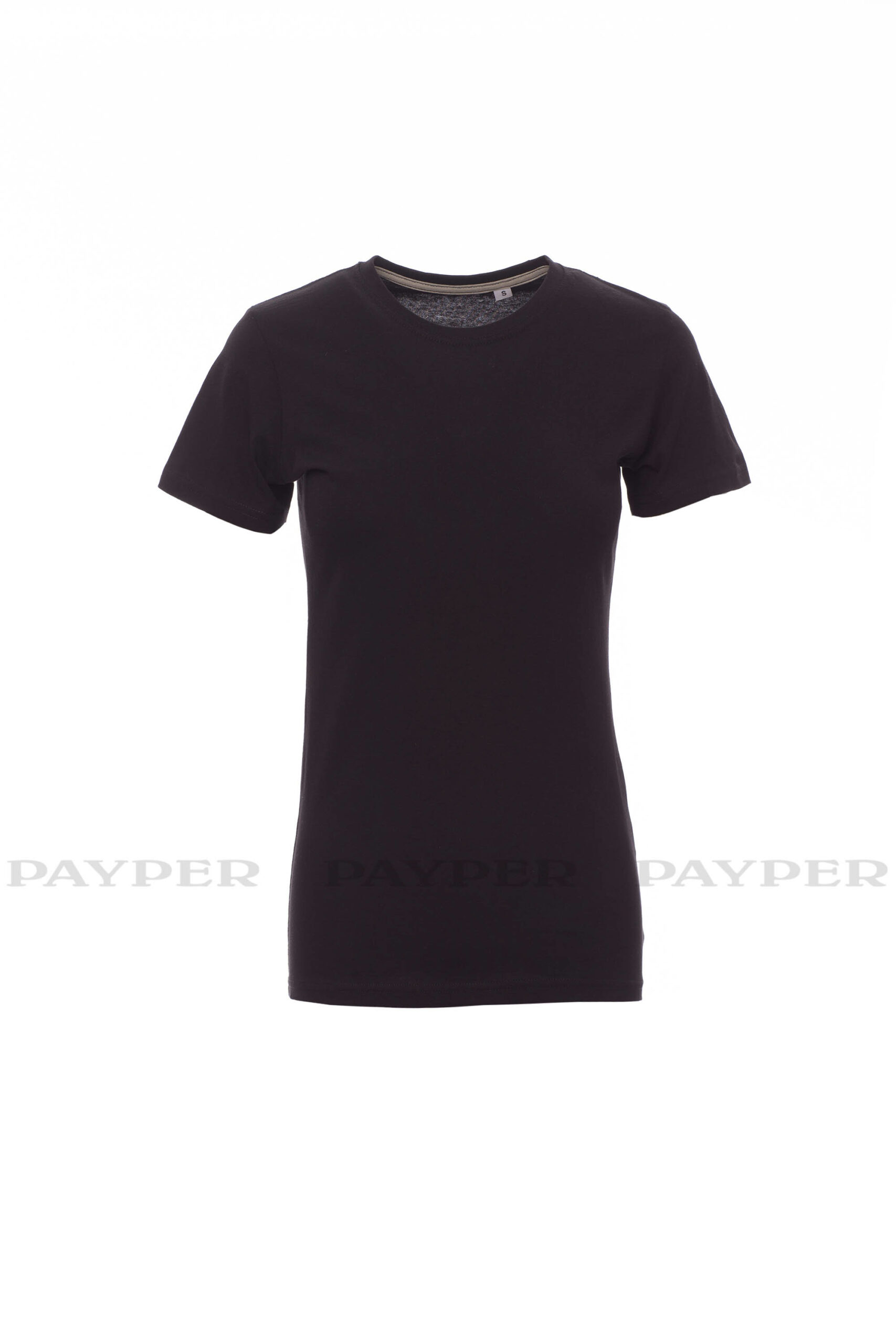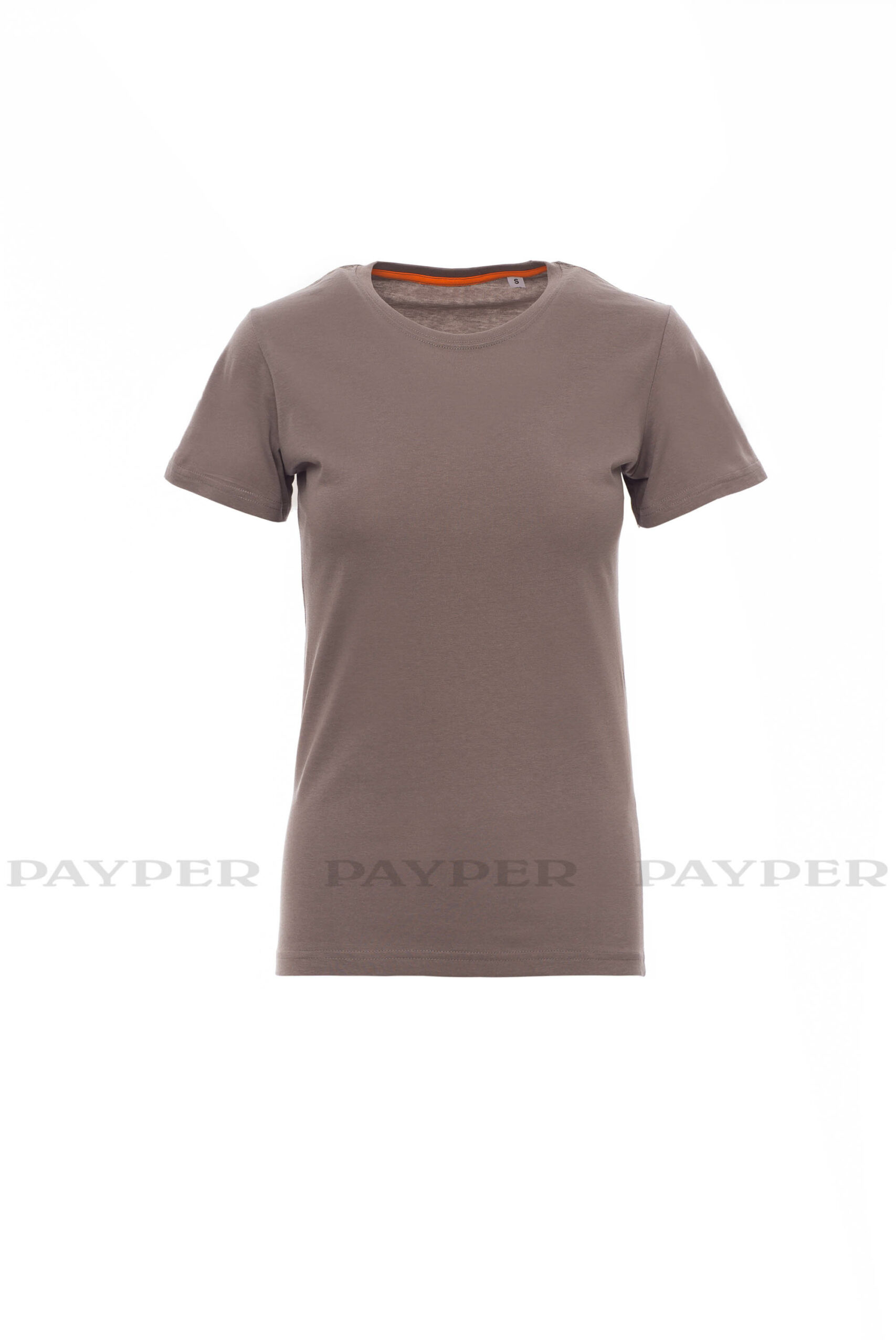 Tailliertes Damen-T-Shirt mit Rundhalsausschnitt, kurzärmelig, Feinripp-Kragen 1,5 cm aus Spandex-Mischgewebe mit Kappnaht an der Vorderseite, Verstärkungsband von Schulter zu Schulter, Stretchnähte, Seitennaht. Neutral, ohne Etikett