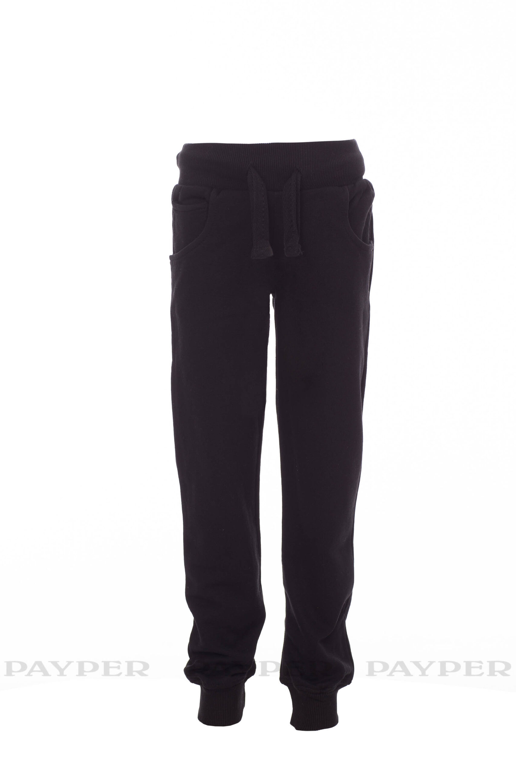 Ganzjährig tragbare Kinder-Sweathose mit elastischem Rippstrick an Taille und Fußgelenk, Kordelzug in der Taille, zwei Vordertaschen und einer kleinen Stecktasche, Reißverschluss mit Patte
