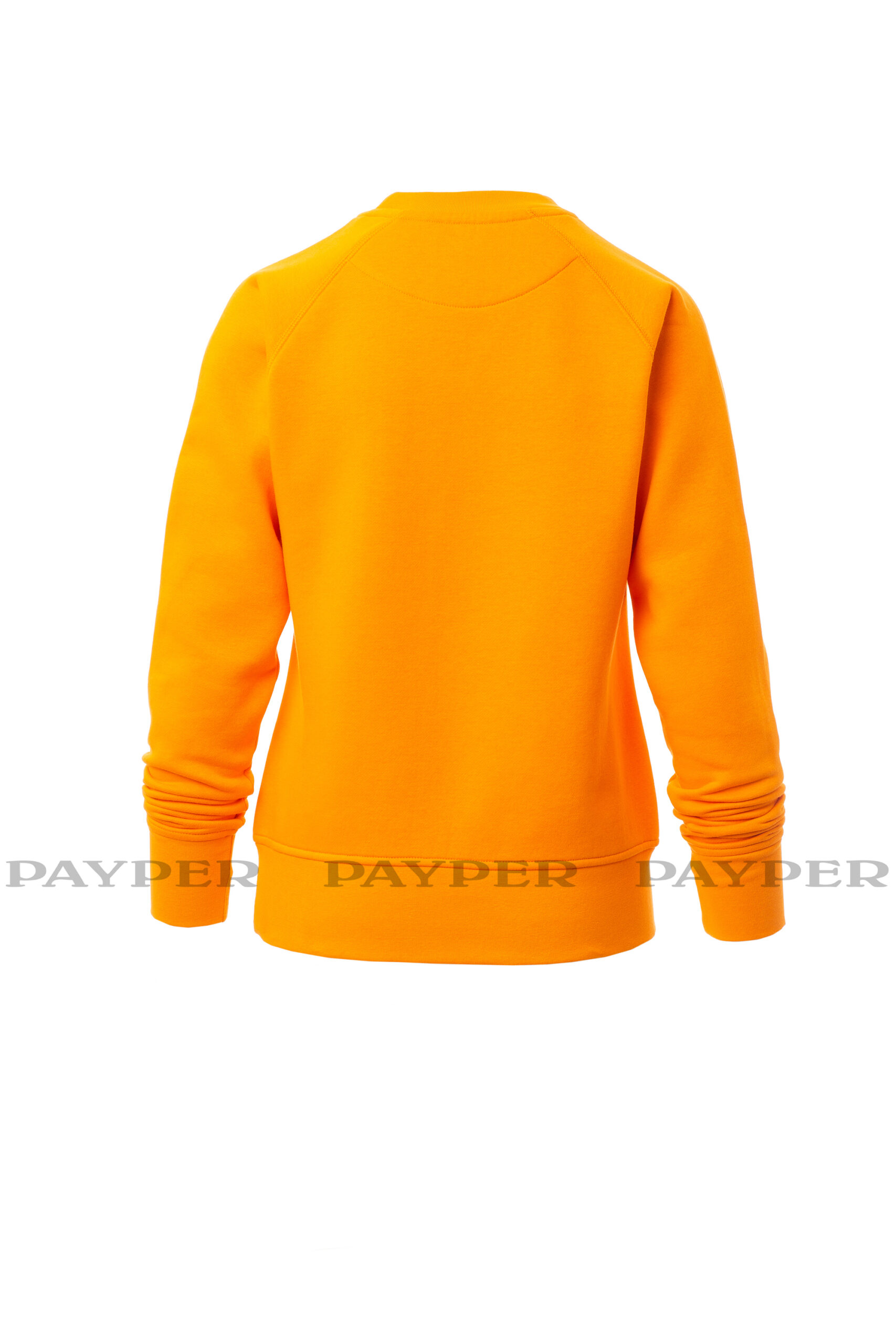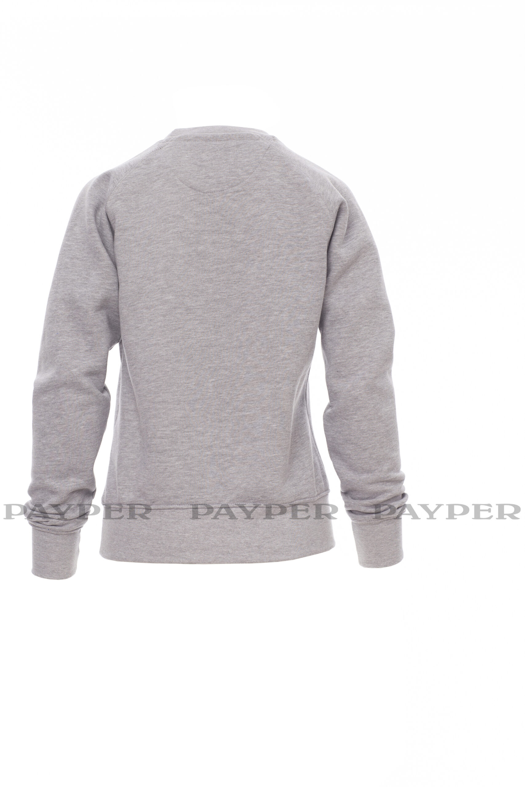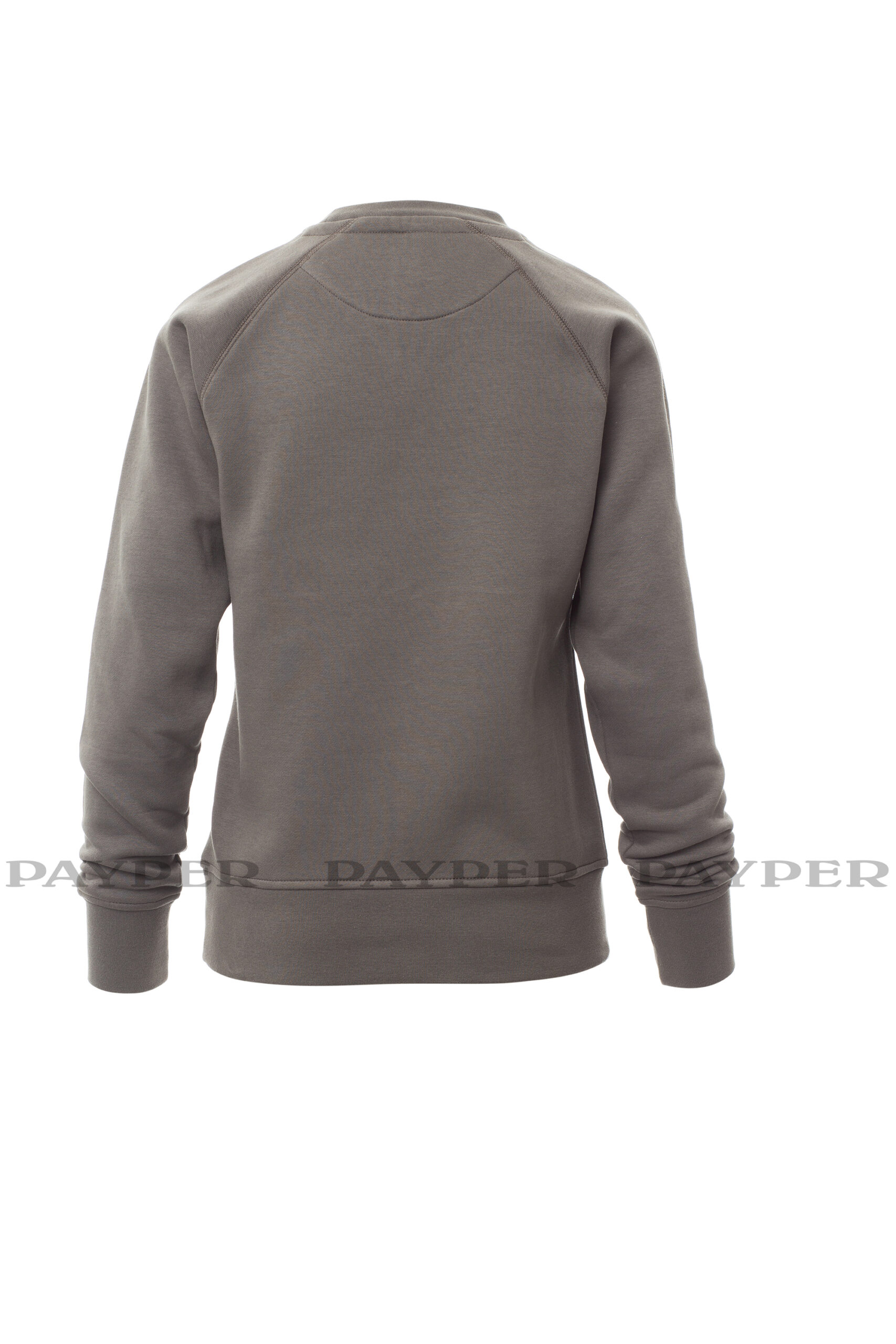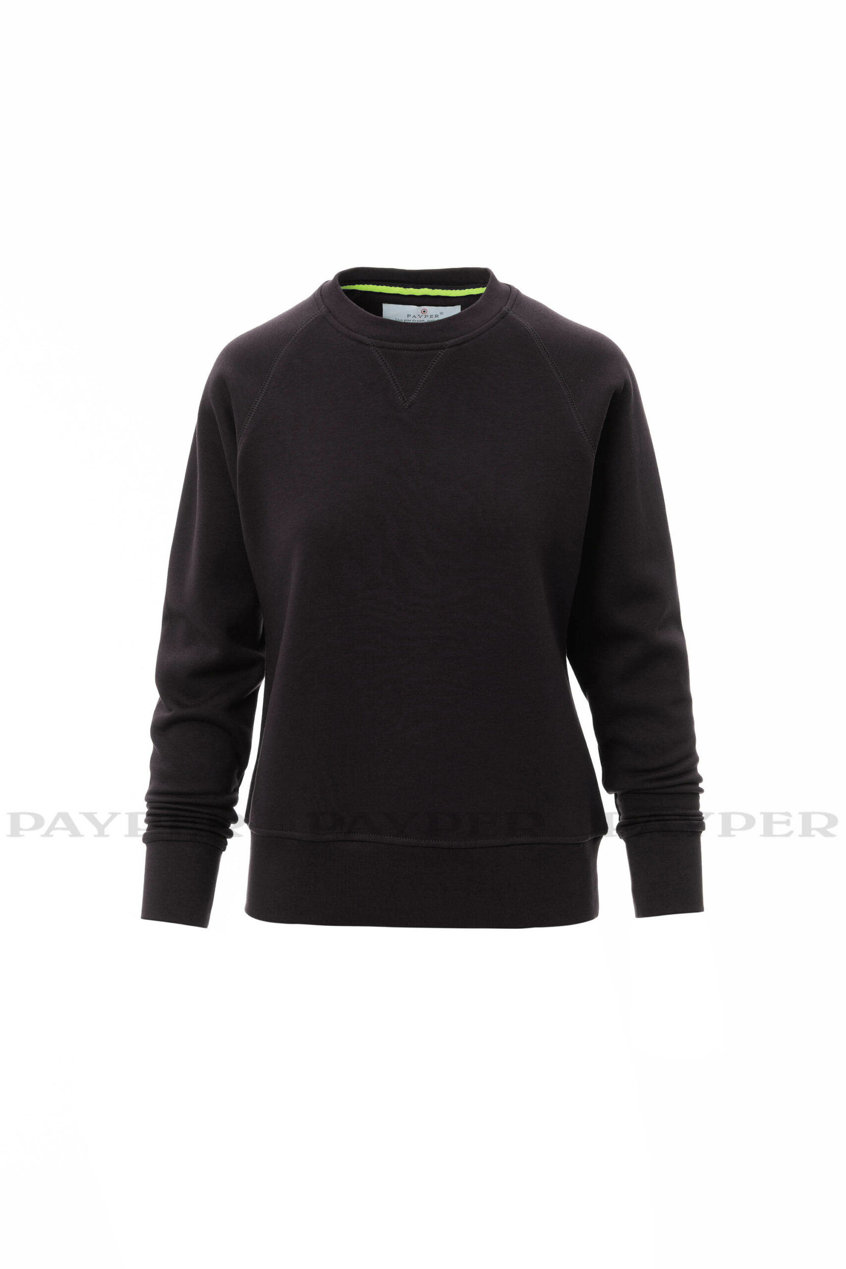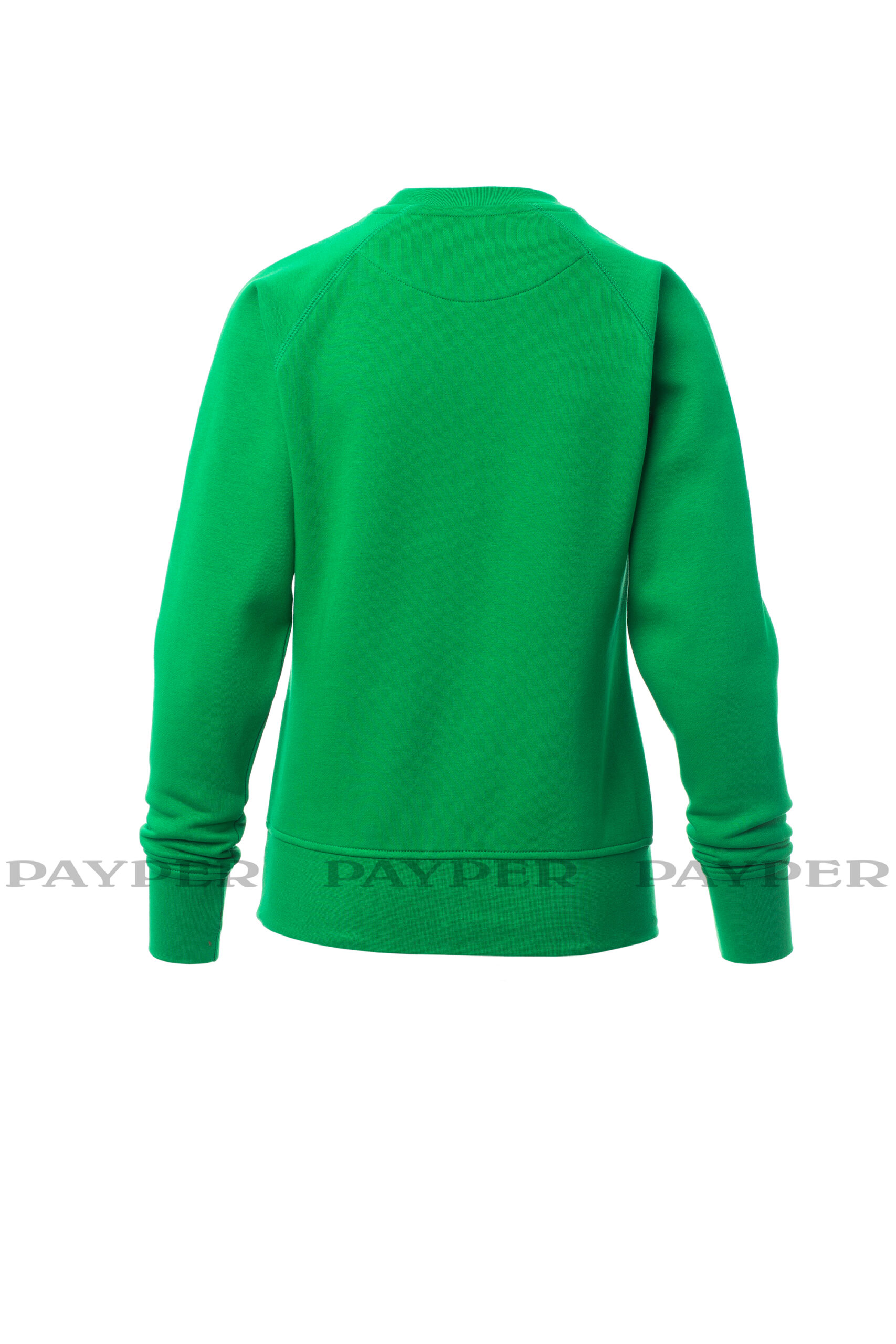 Damen-Sweatshirt mit Rundhalsausschnitt, Raglanärmeln, V-Ziernaht am Ausschnitt, elastischem Feinripp an Ärmeln und Taille, verstärkten Nähten.