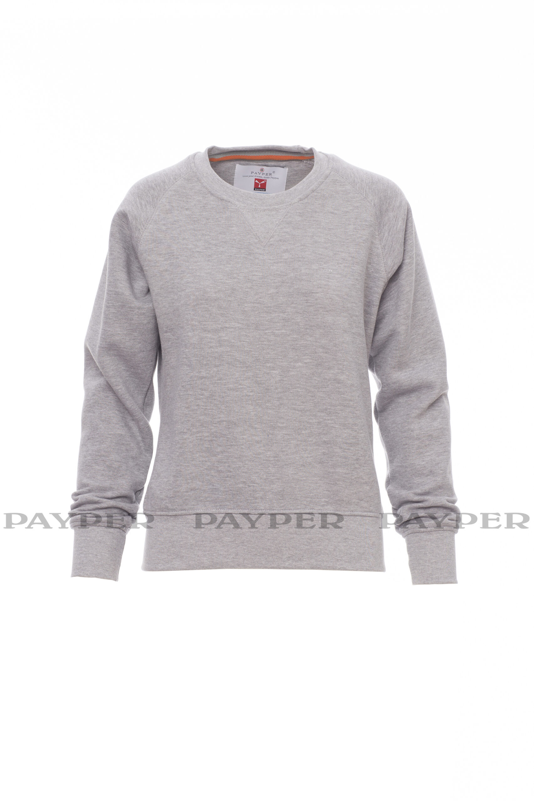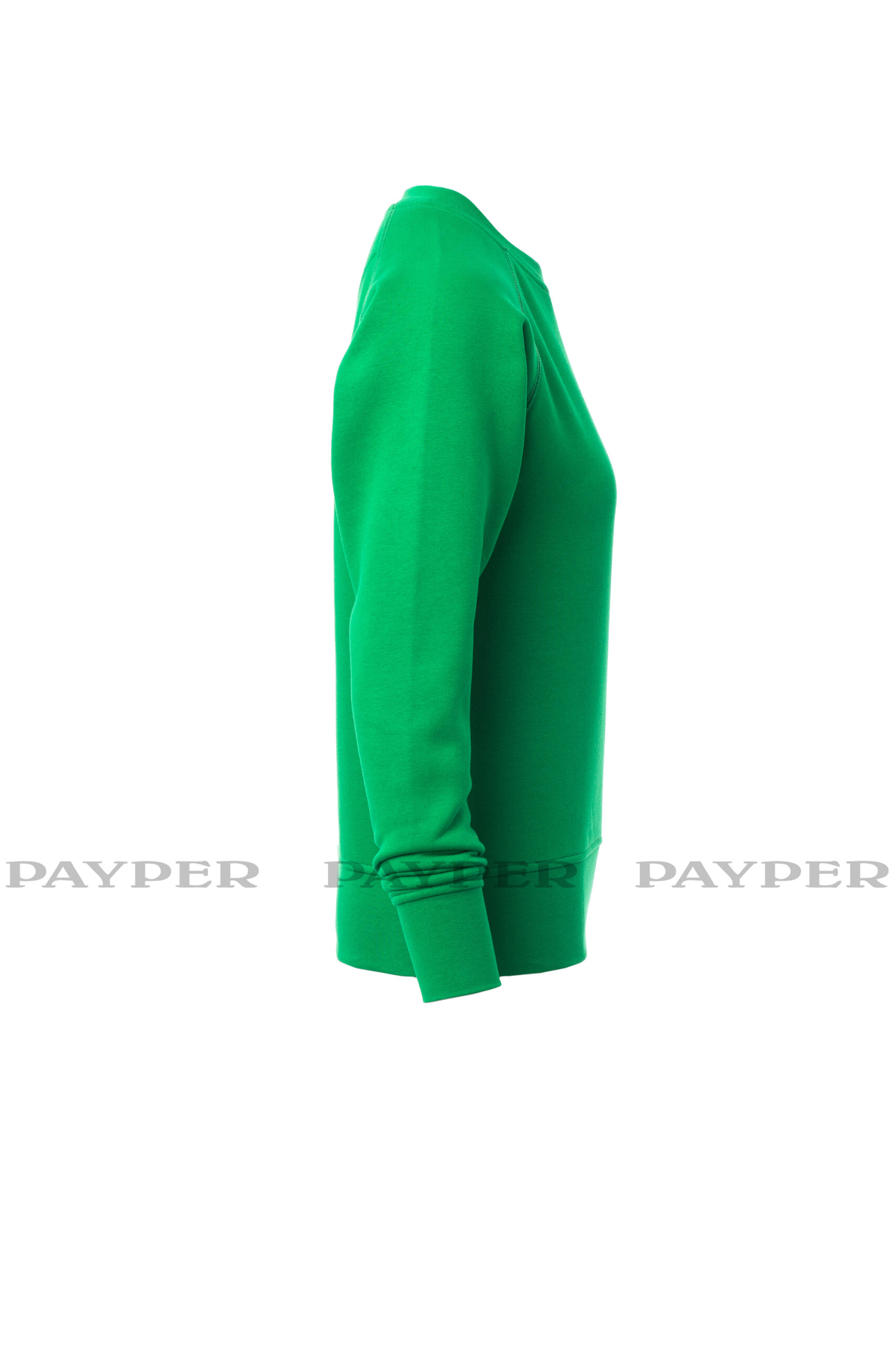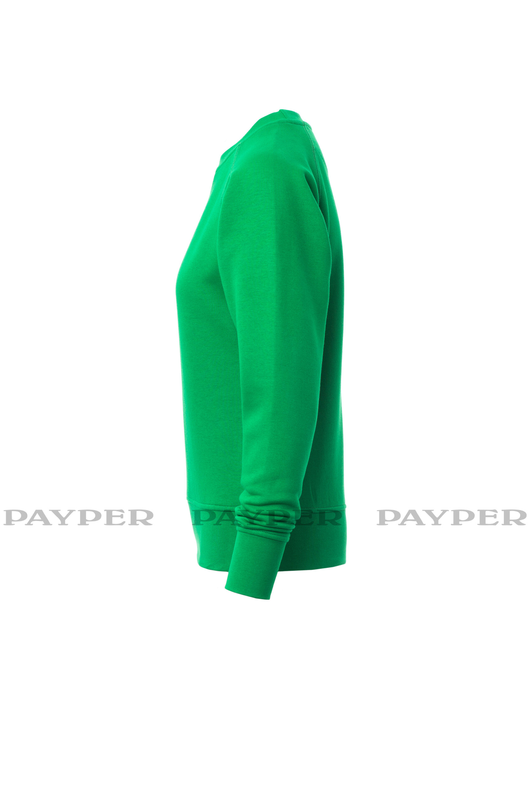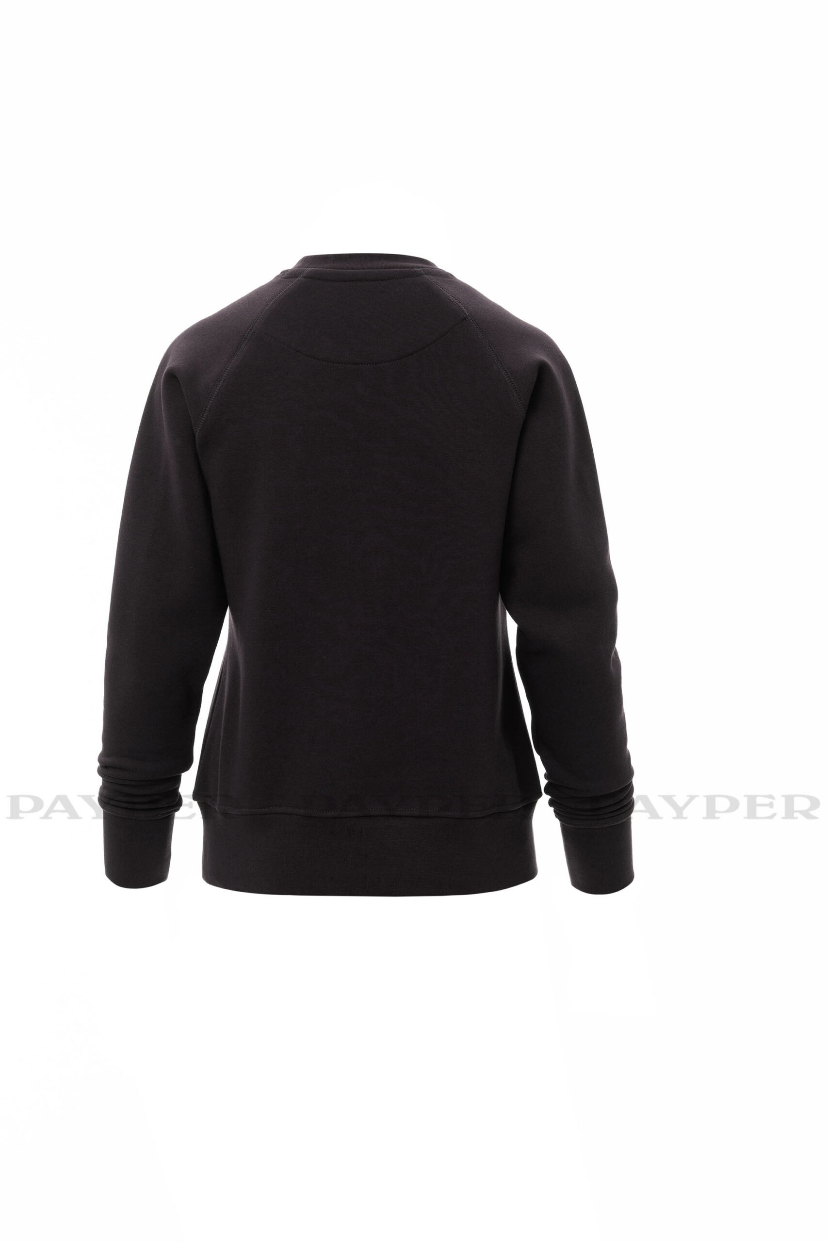 Damen-Sweatshirt mit Rundhalsausschnitt, Raglanärmeln, V-Ziernaht am Ausschnitt, elastischem Feinripp an Ärmeln und Taille, verstärkten Nähten.