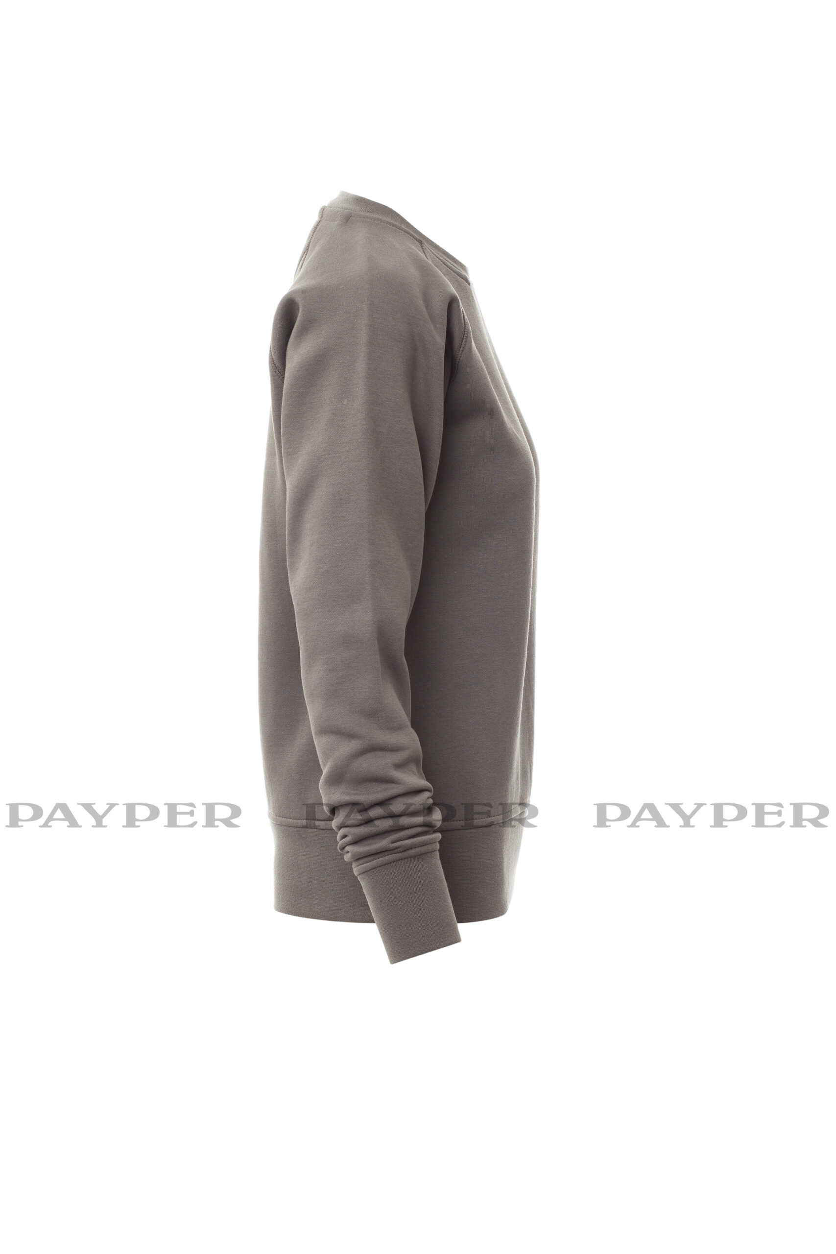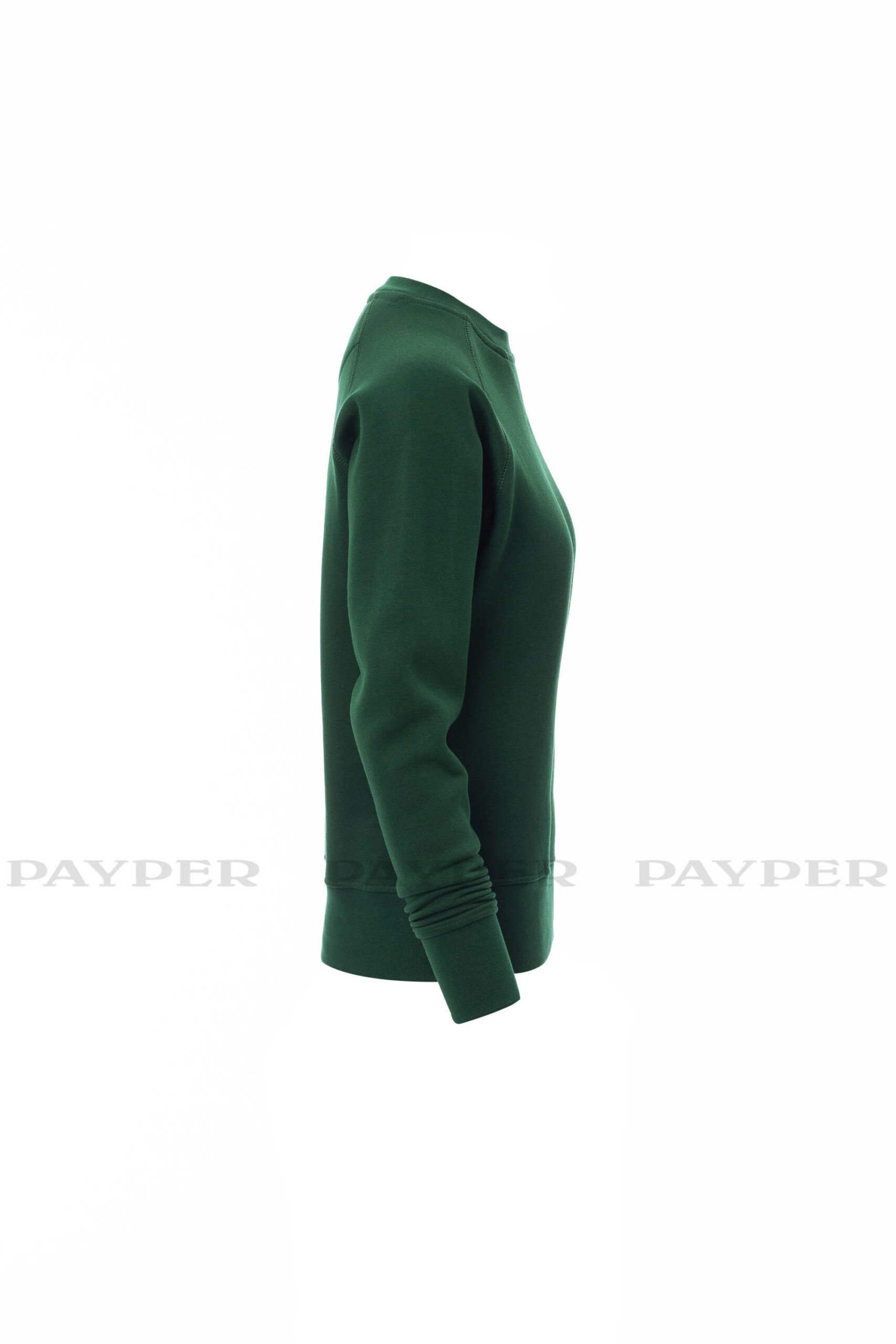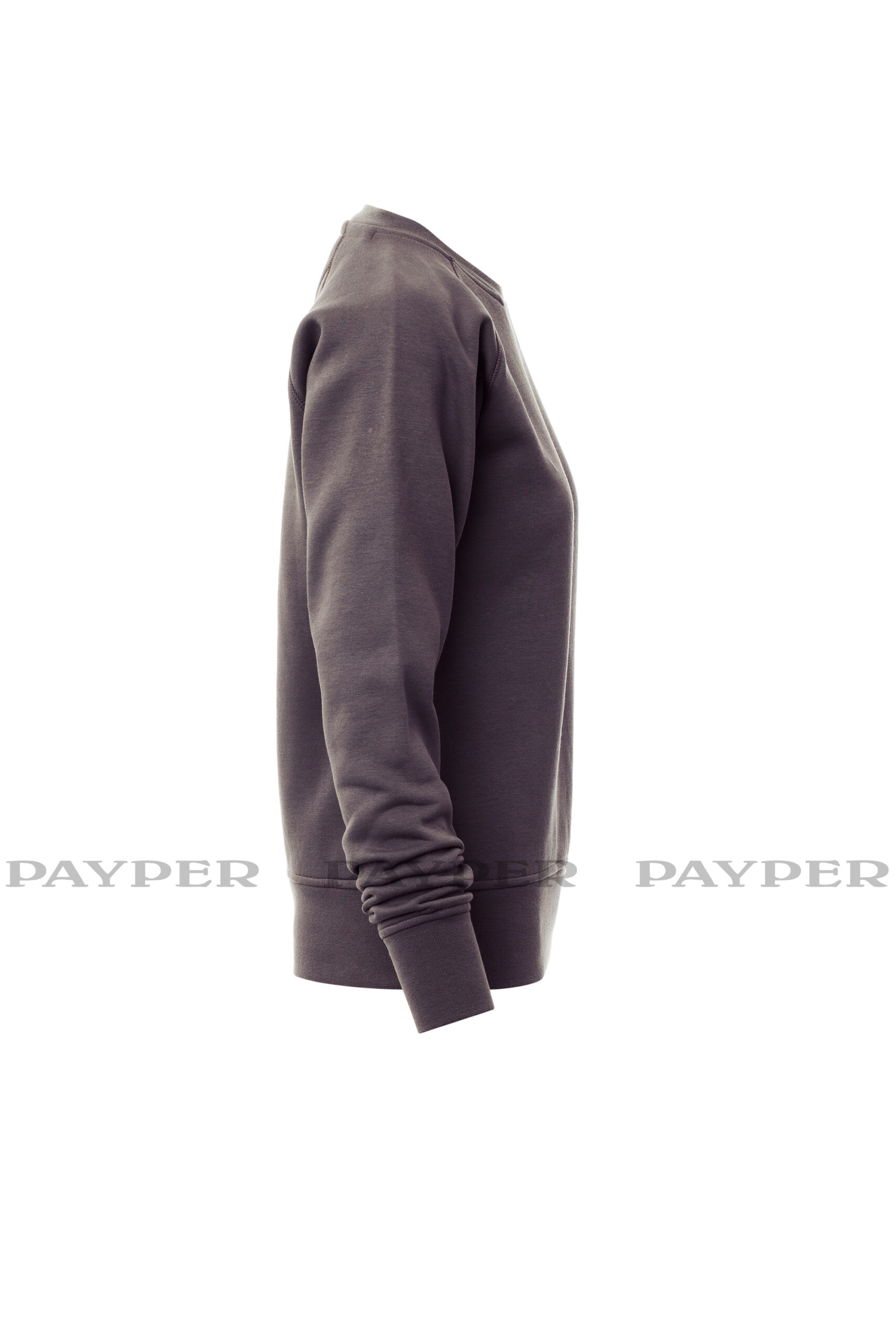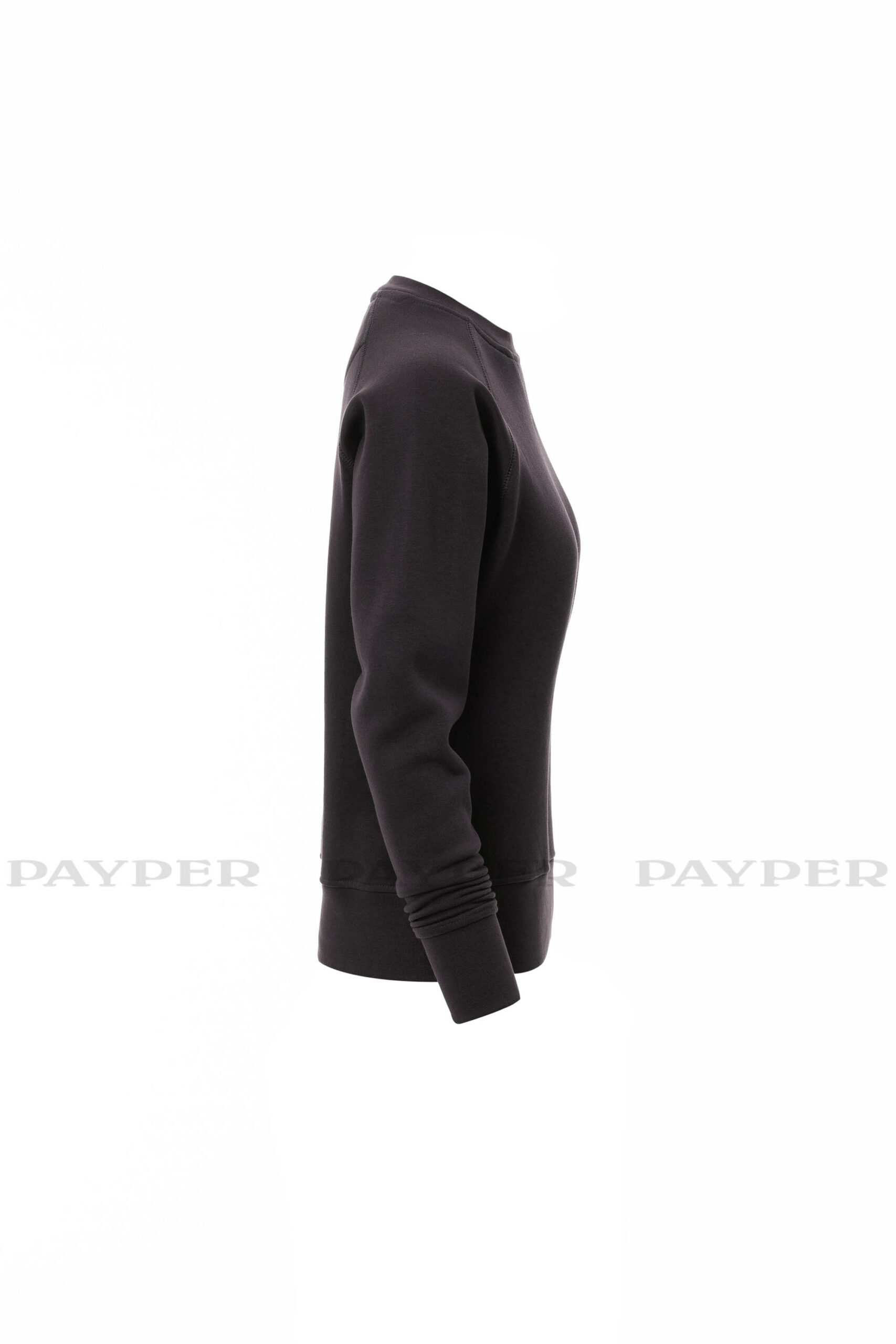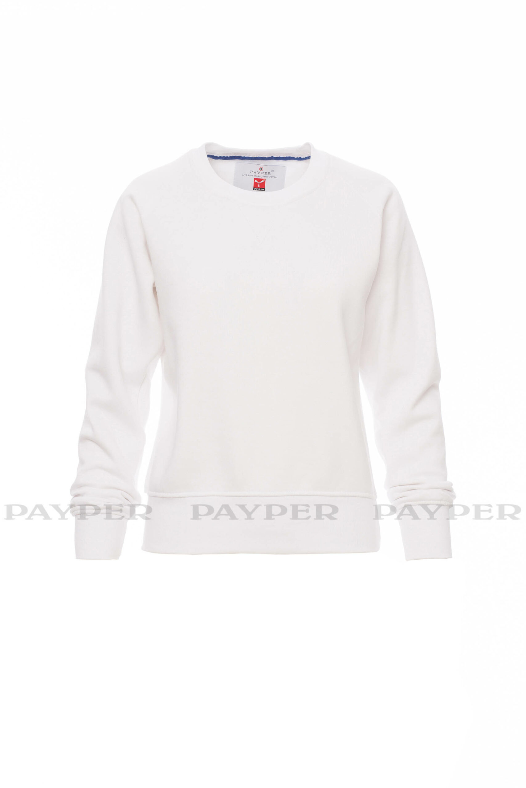 Damen-Sweatshirt mit Rundhalsausschnitt, Raglanärmeln, V-Ziernaht am Ausschnitt, elastischem Feinripp an Ärmeln und Taille, verstärkten Nähten.