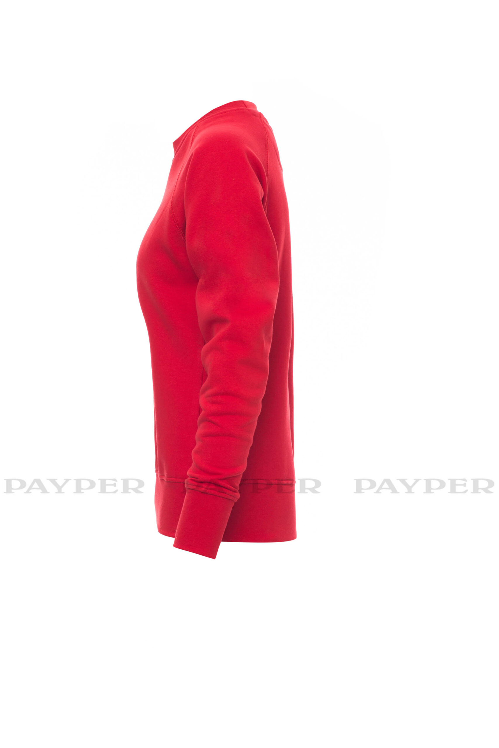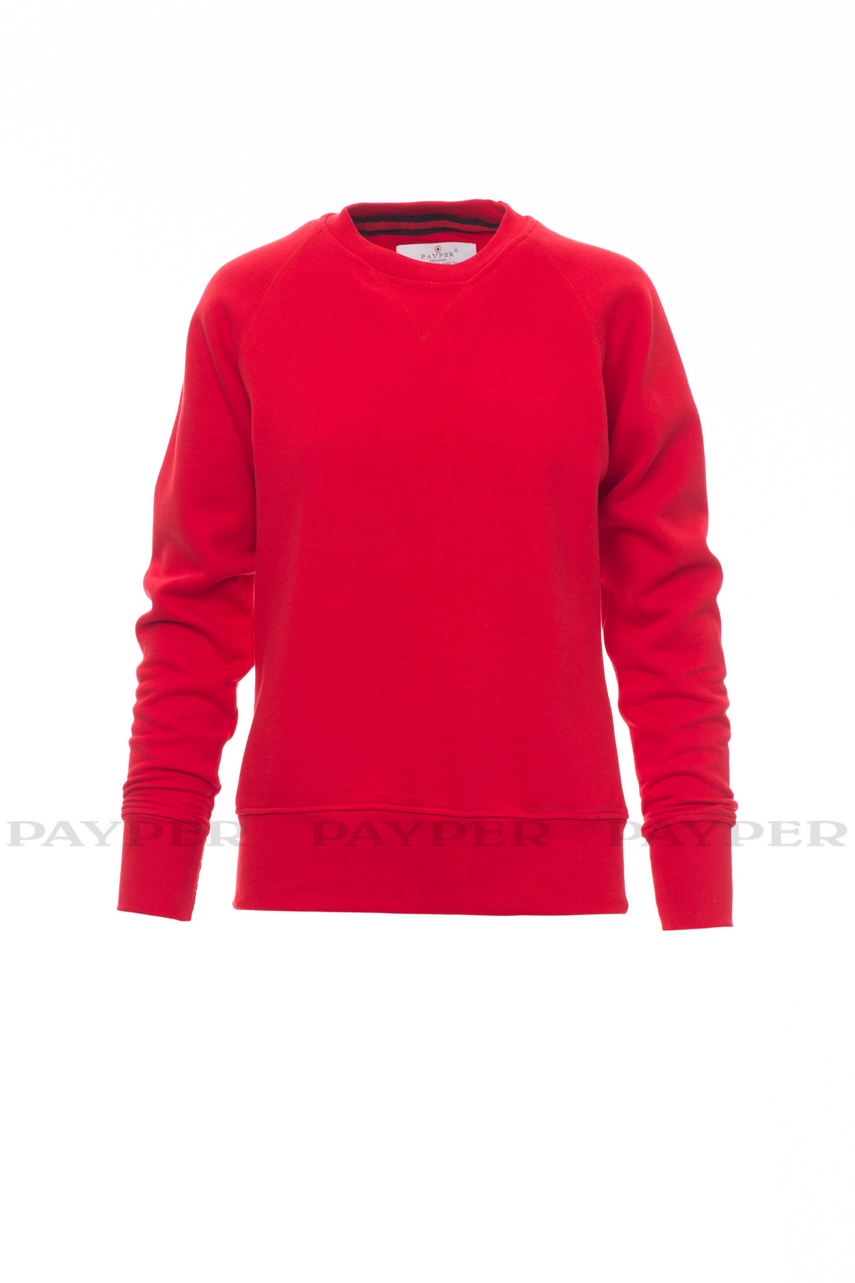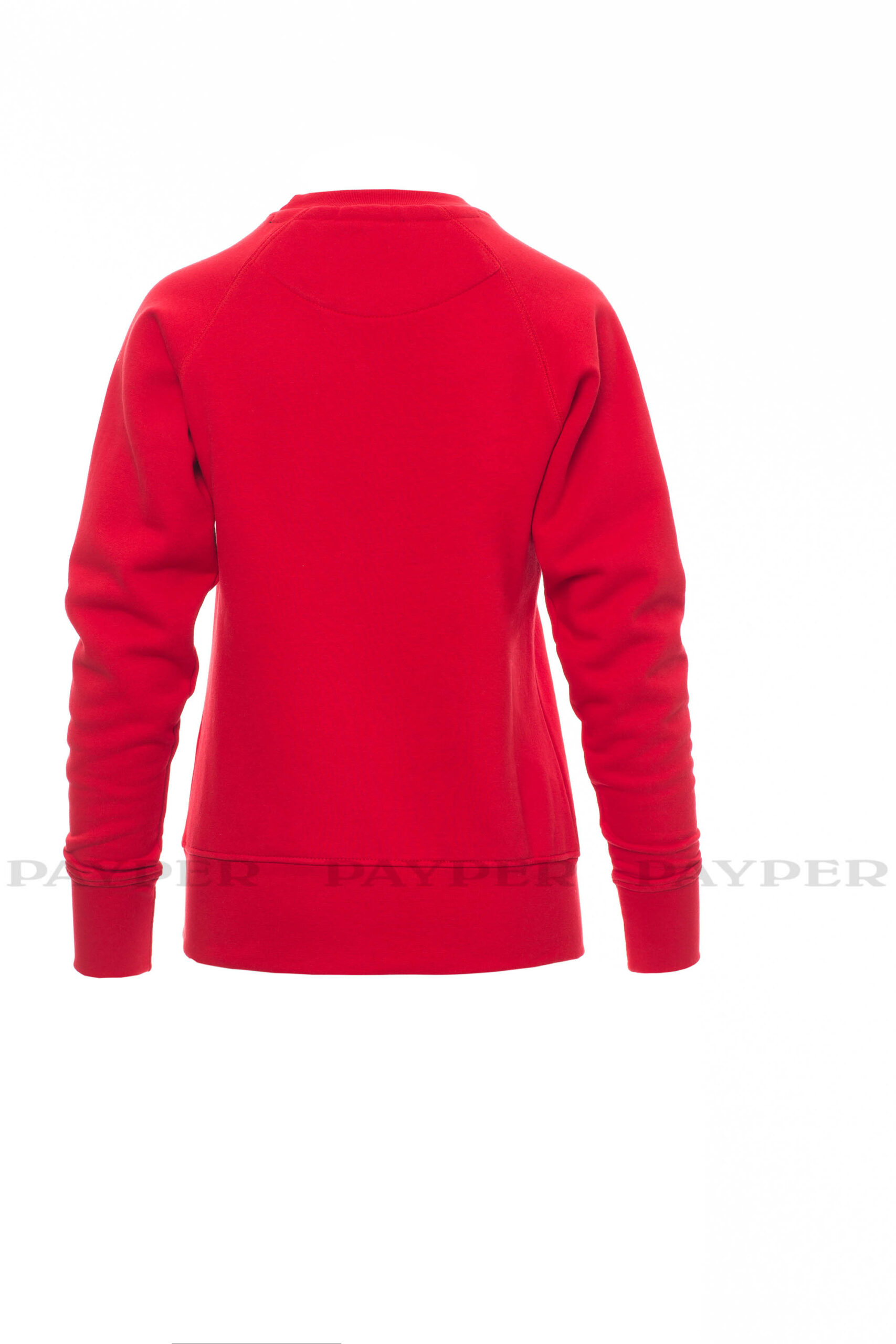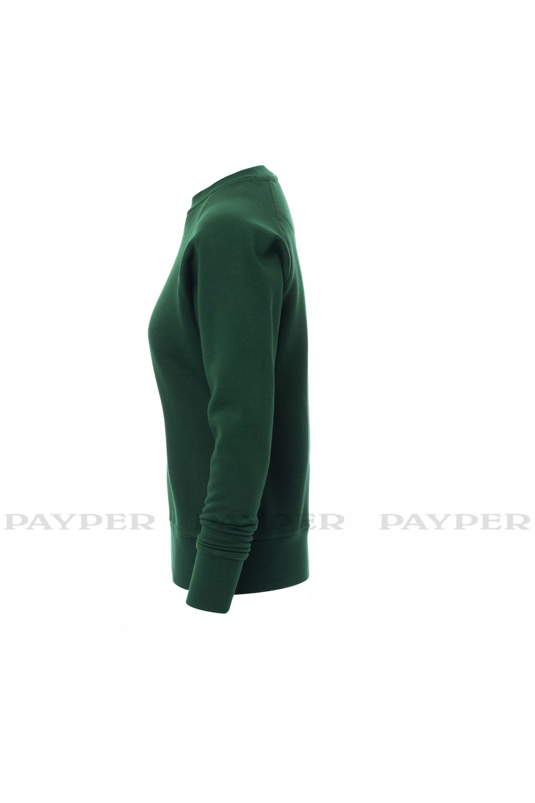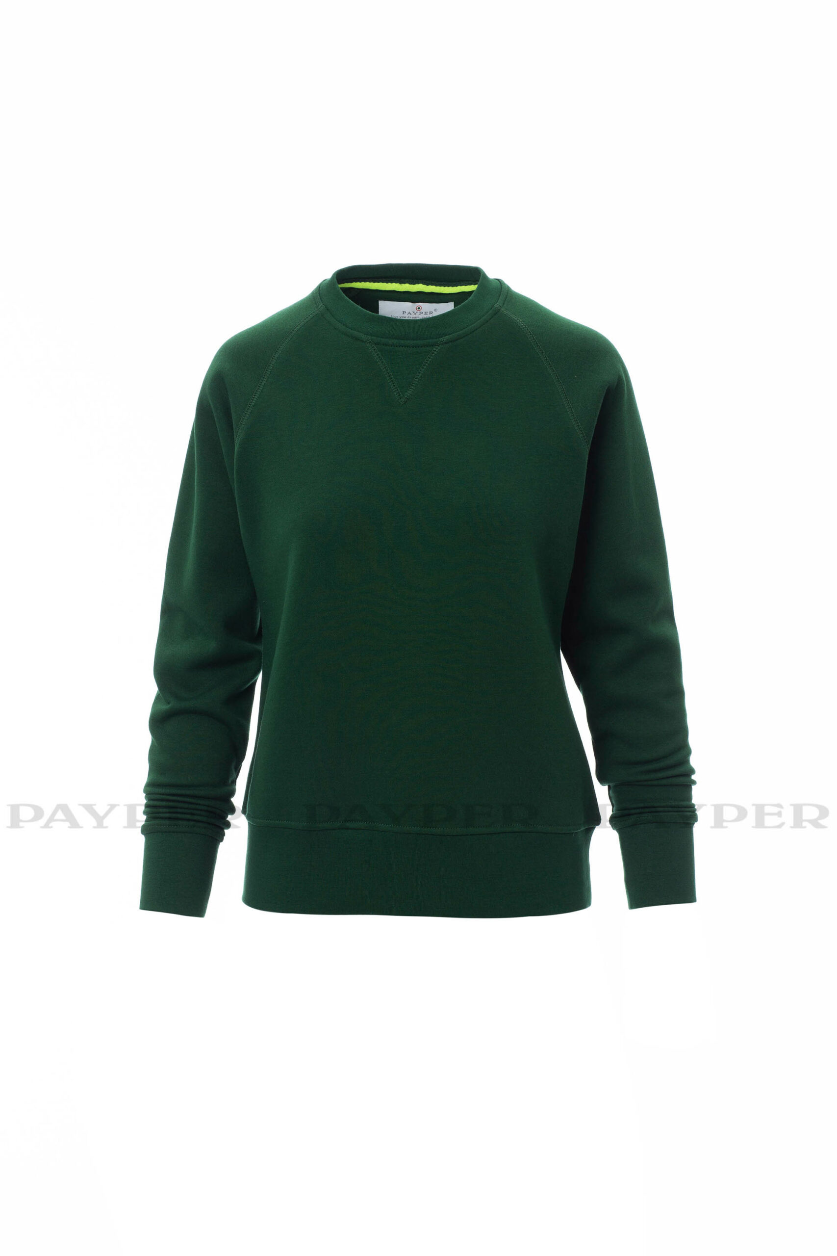 Damen-Sweatshirt mit Rundhalsausschnitt, Raglanärmeln, V-Ziernaht am Ausschnitt, elastischem Feinripp an Ärmeln und Taille, verstärkten Nähten.