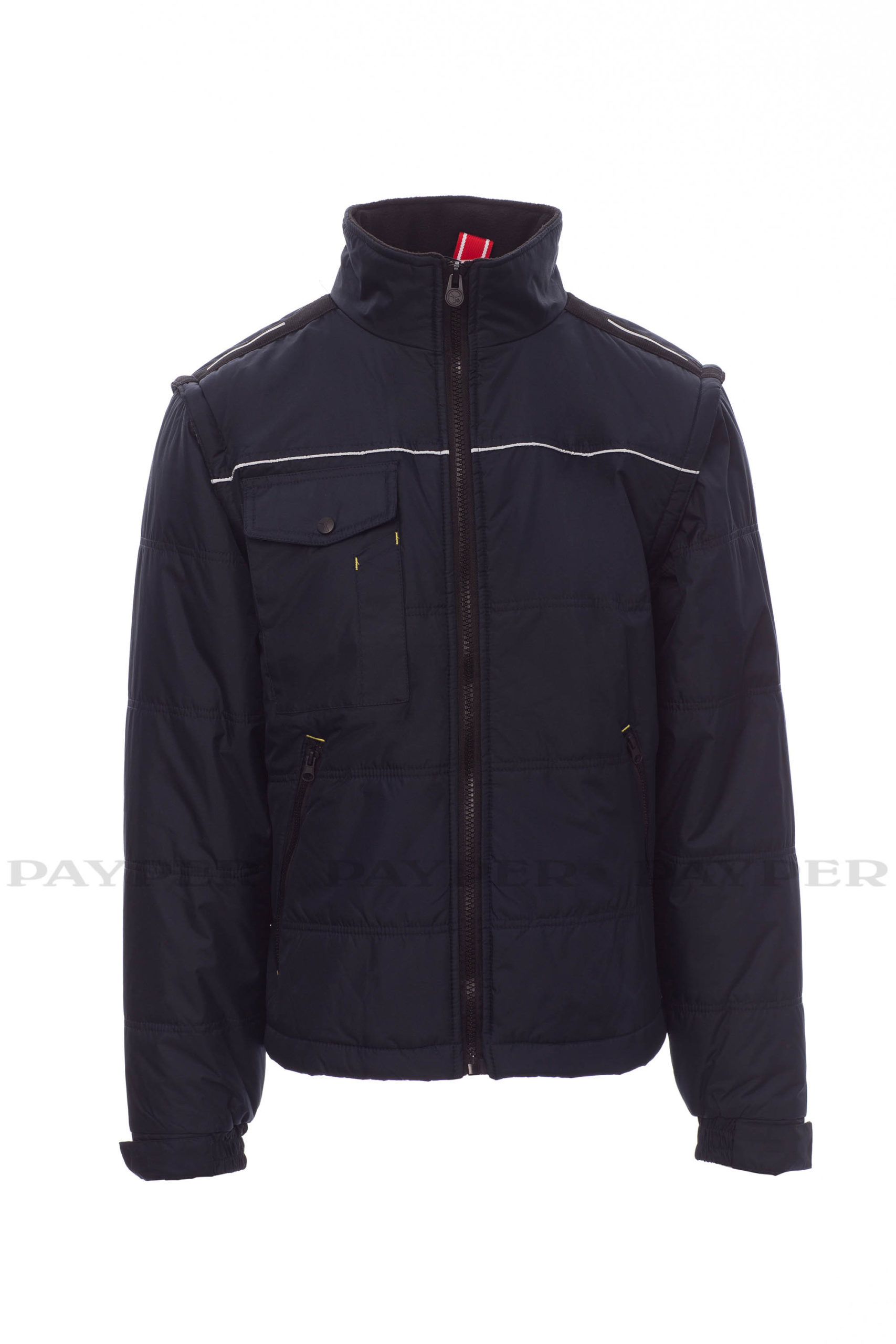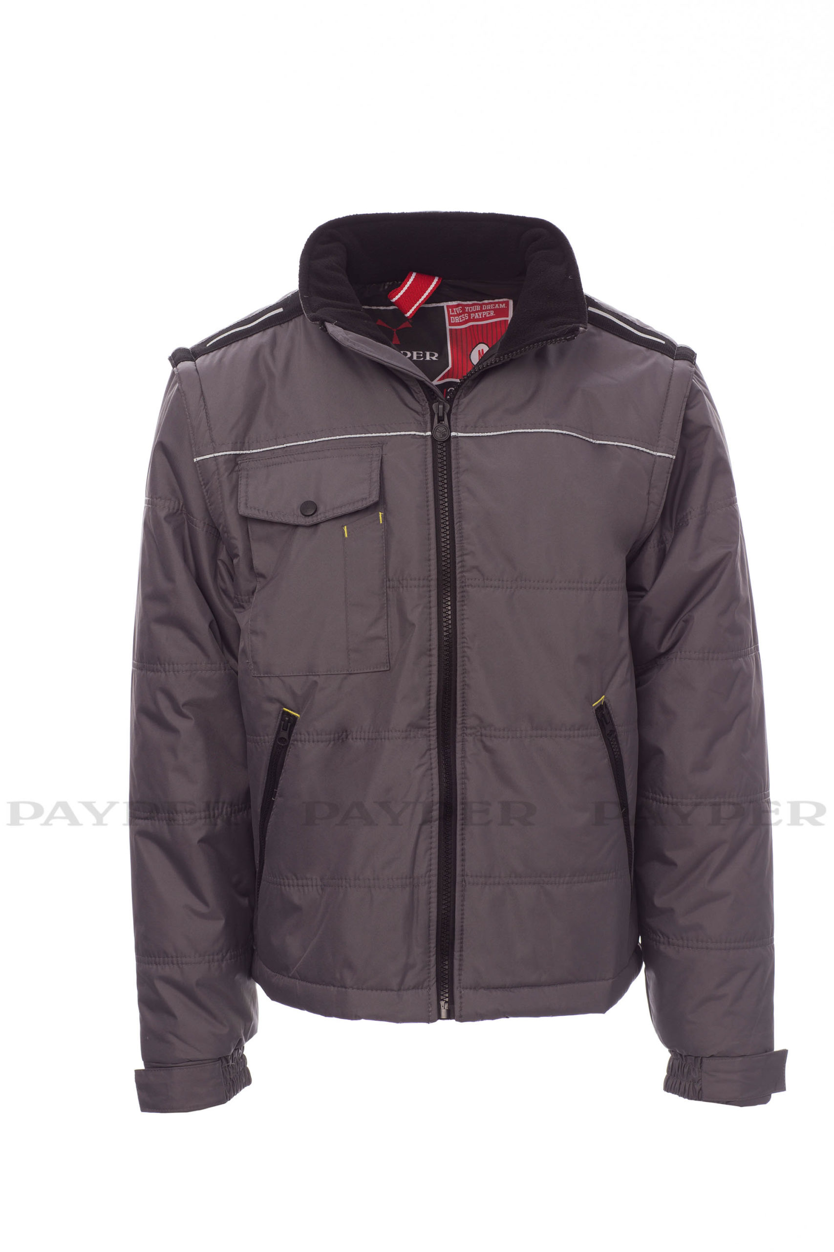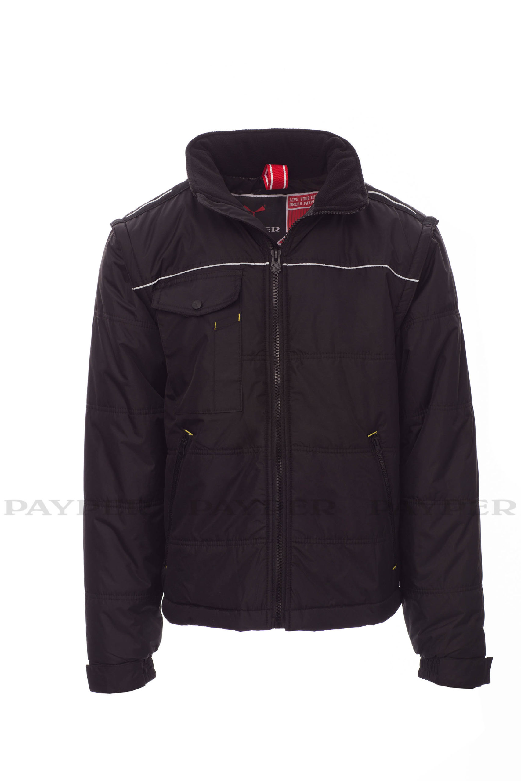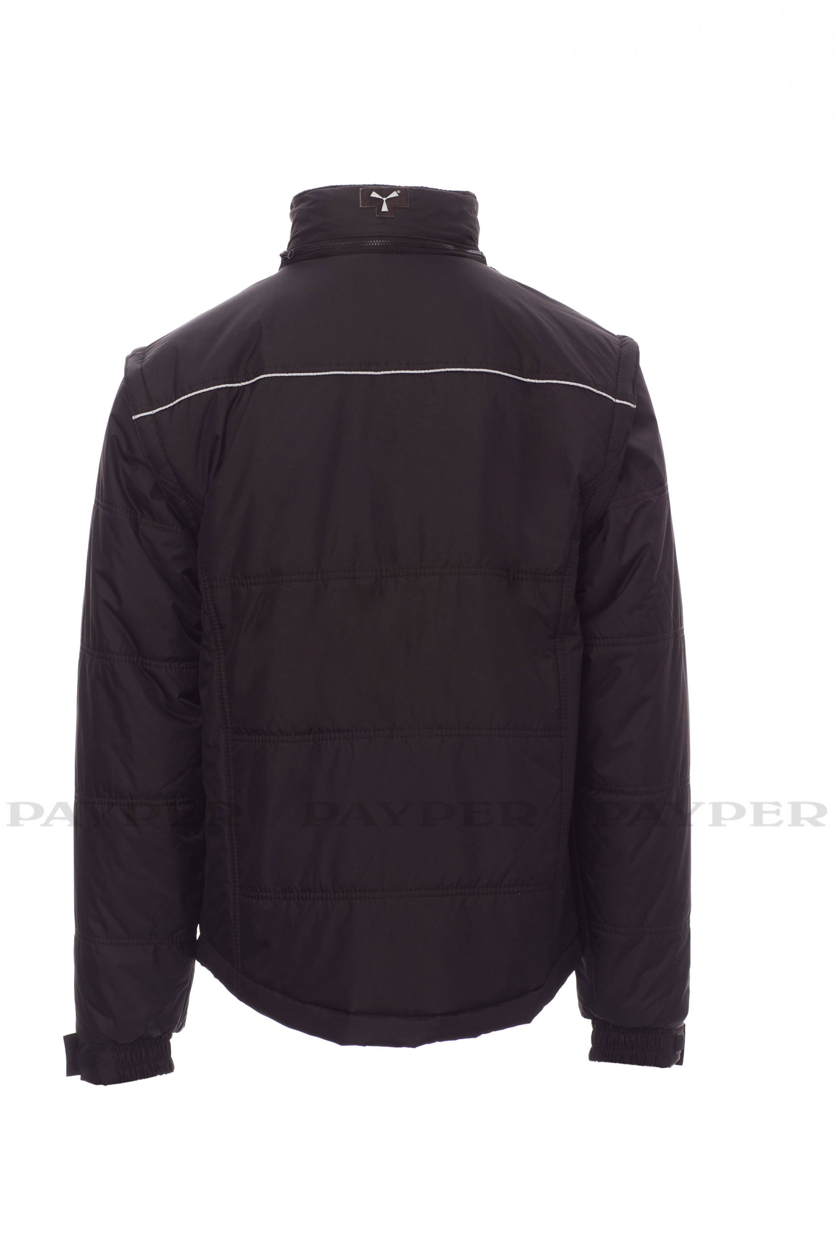 Herren-Jacke, abtrennbare Ärmel, abgerundeter Rücken, 8 mm Reißverschluss aus Kunststoff mit Metallschieber, einrollbare Kapuze, 2 geräumige Außentaschen mit Reißverschluss, große Brusttasche für das Smartphone, Ring zum Anhängen eines Ausweises, Reflex-Paspelierung auf der Brust und auf dem Rücken. Innenseite: Stepp- und High-Density-Futter, Krageninnenseite aus Fleece, 1 Tasche.