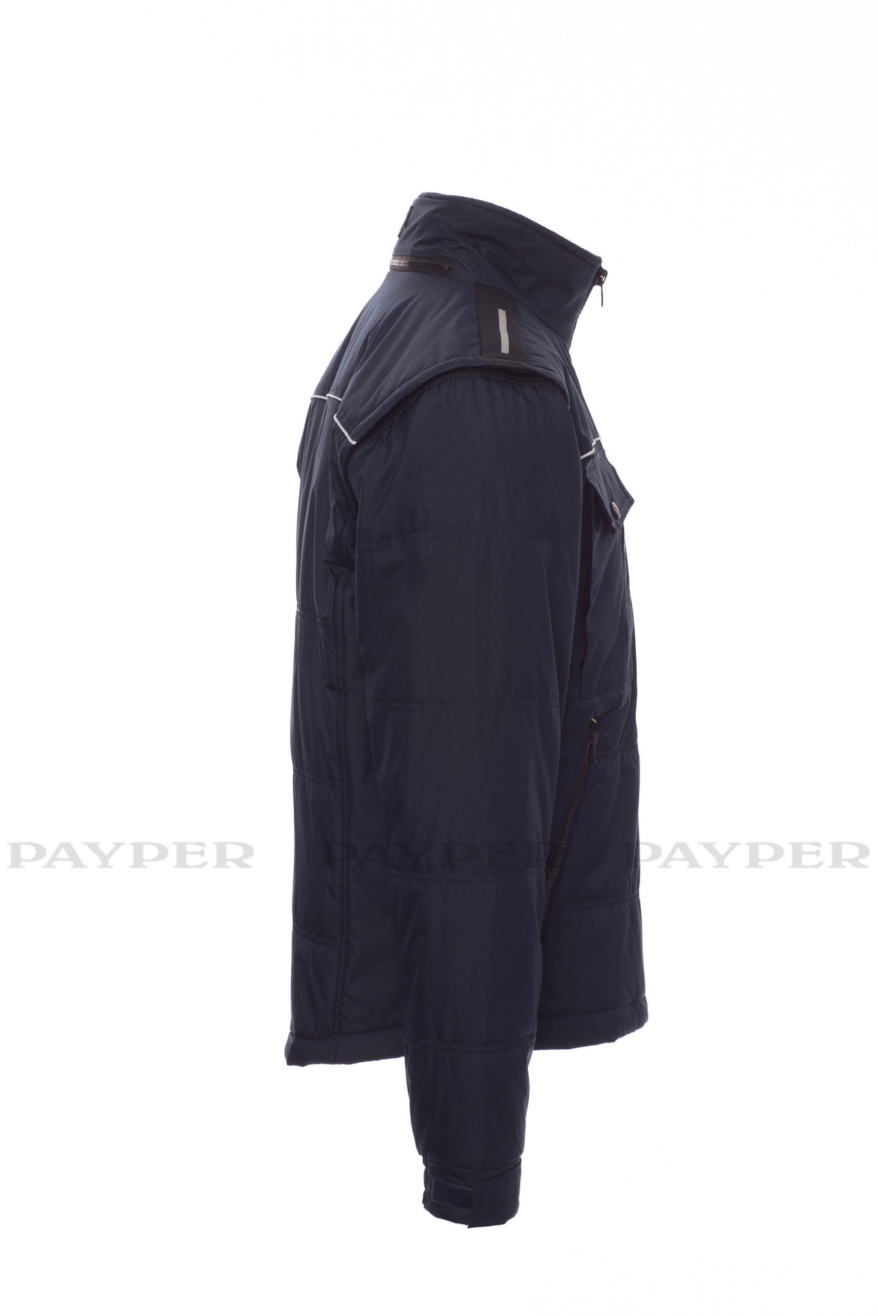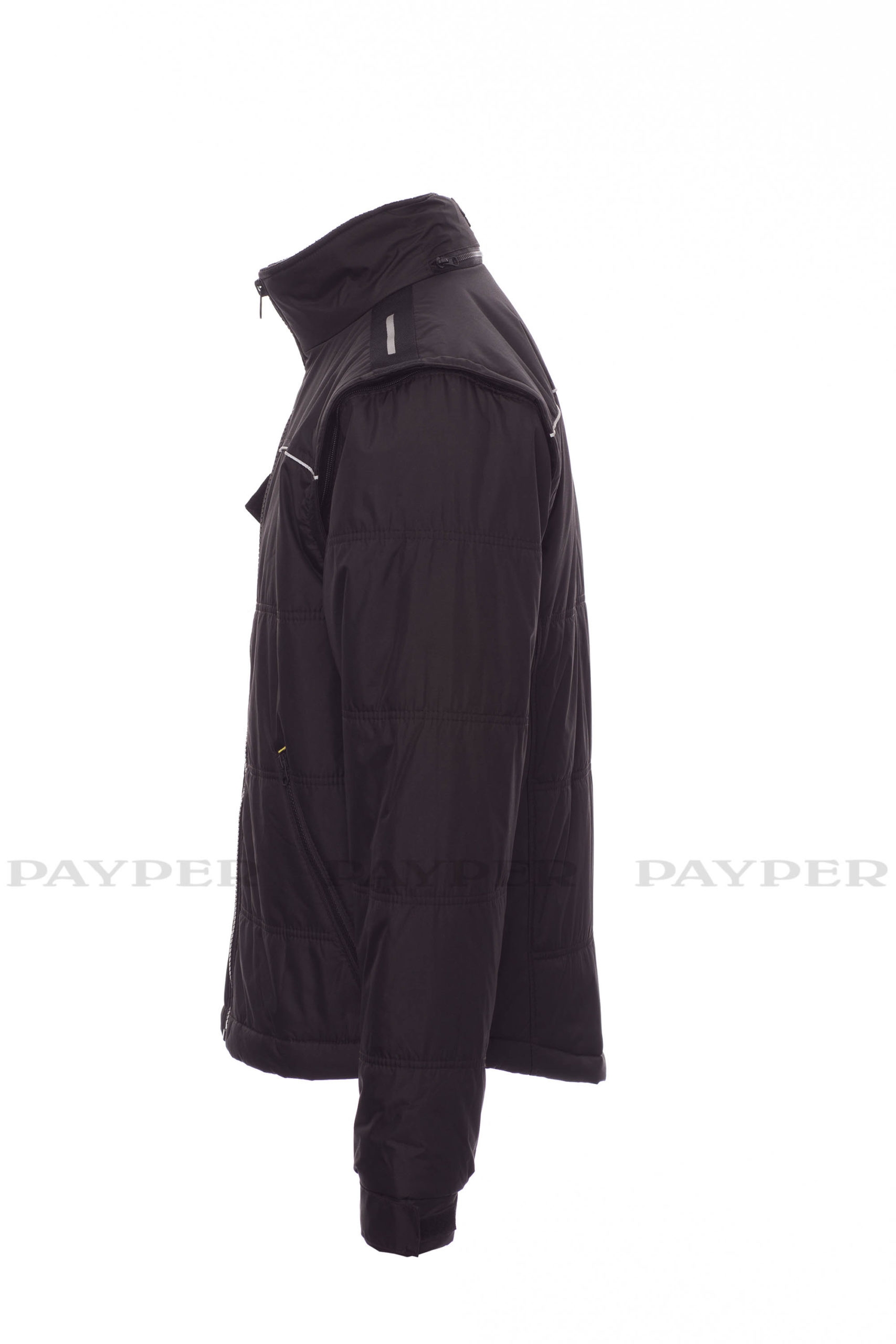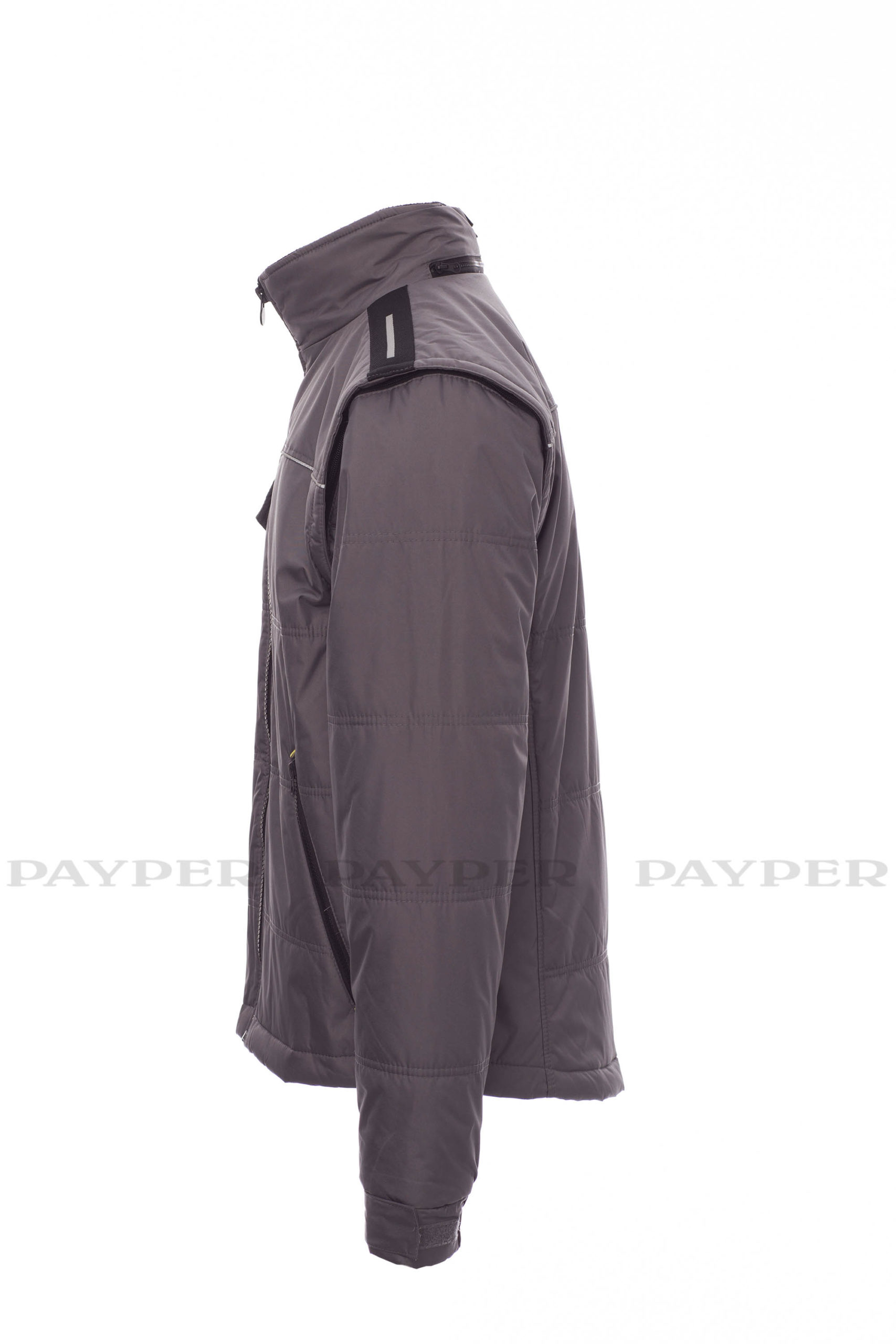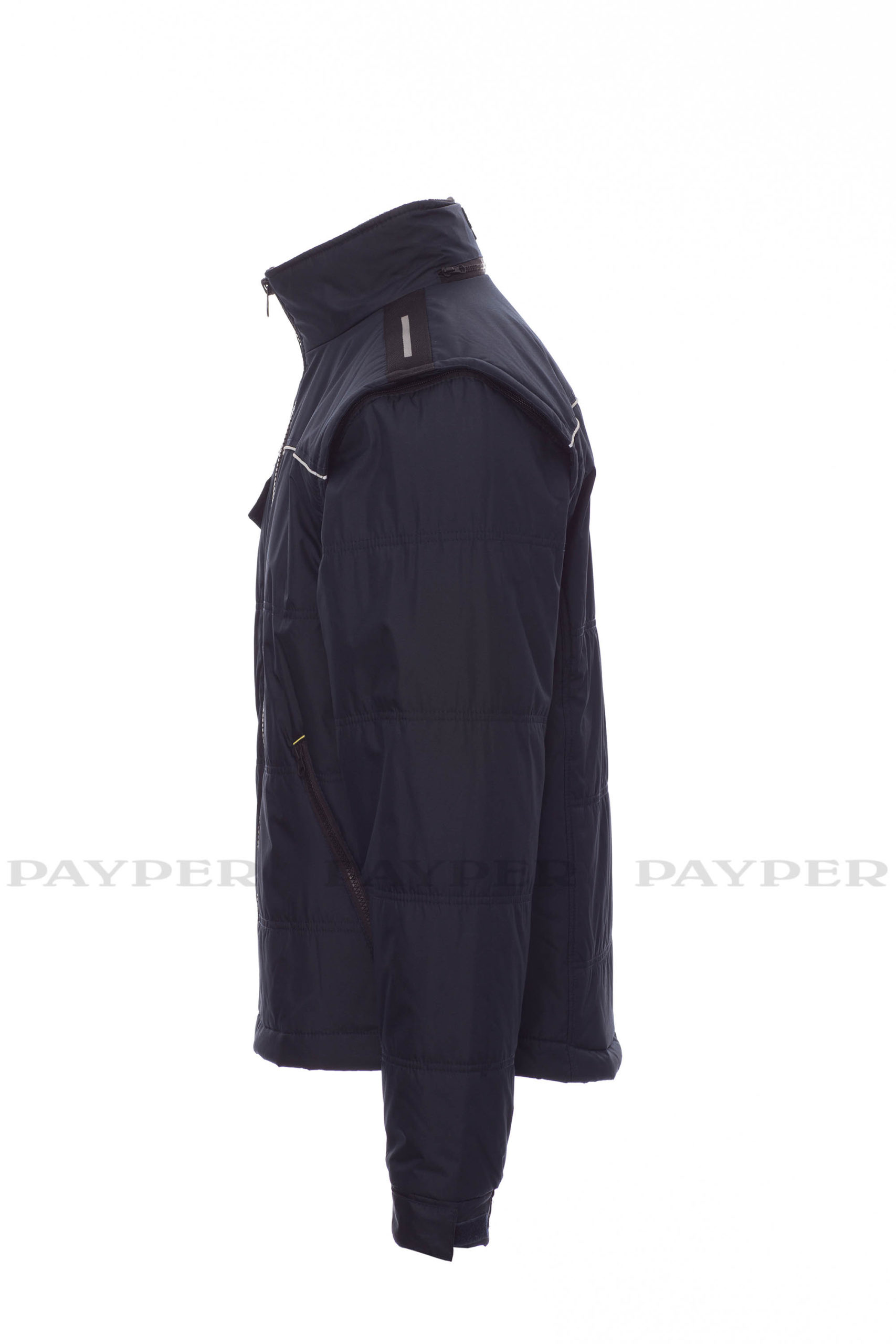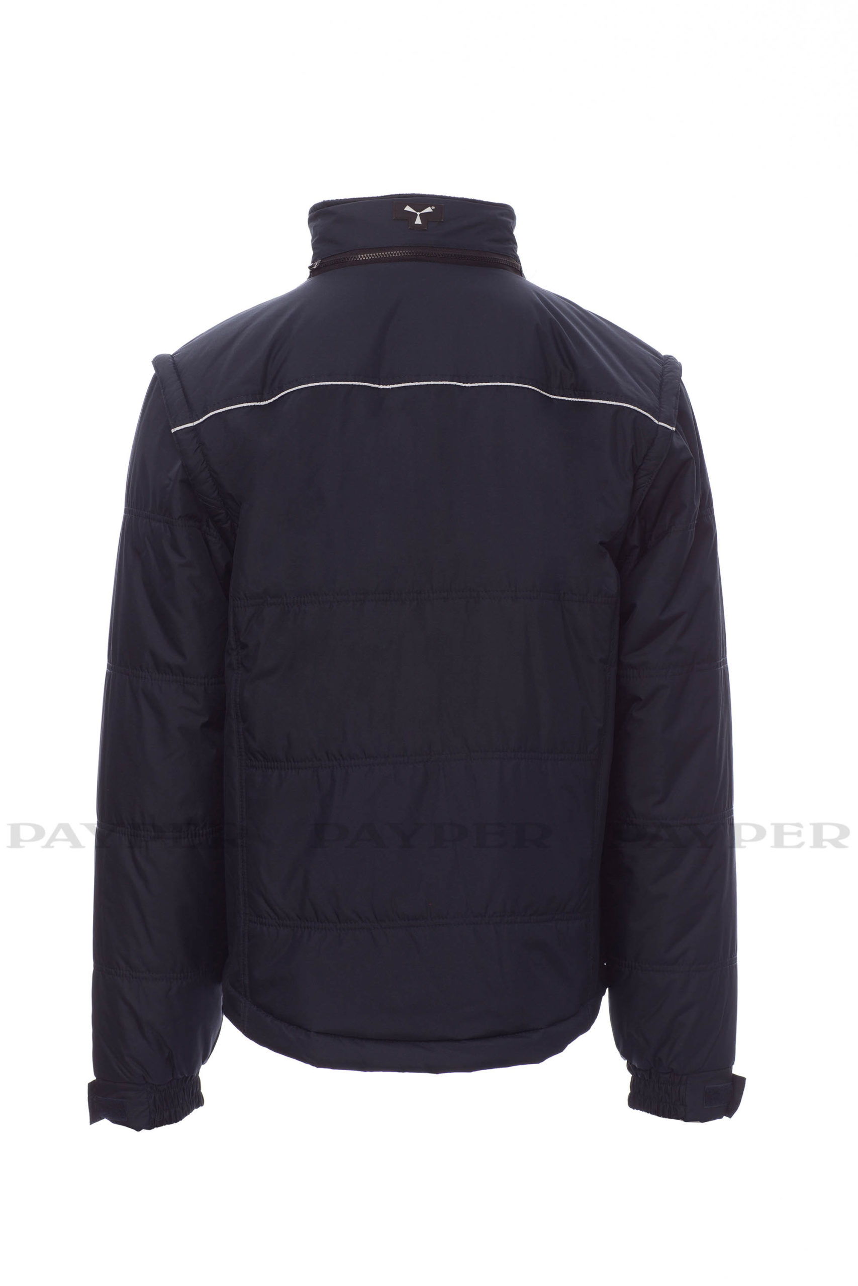 Herren-Jacke, abtrennbare Ärmel, abgerundeter Rücken, 8 mm Reißverschluss aus Kunststoff mit Metallschieber, einrollbare Kapuze, 2 geräumige Außentaschen mit Reißverschluss, große Brusttasche für das Smartphone, Ring zum Anhängen eines Ausweises, Reflex-Paspelierung auf der Brust und auf dem Rücken. Innenseite: Stepp- und High-Density-Futter, Krageninnenseite aus Fleece, 1 Tasche.