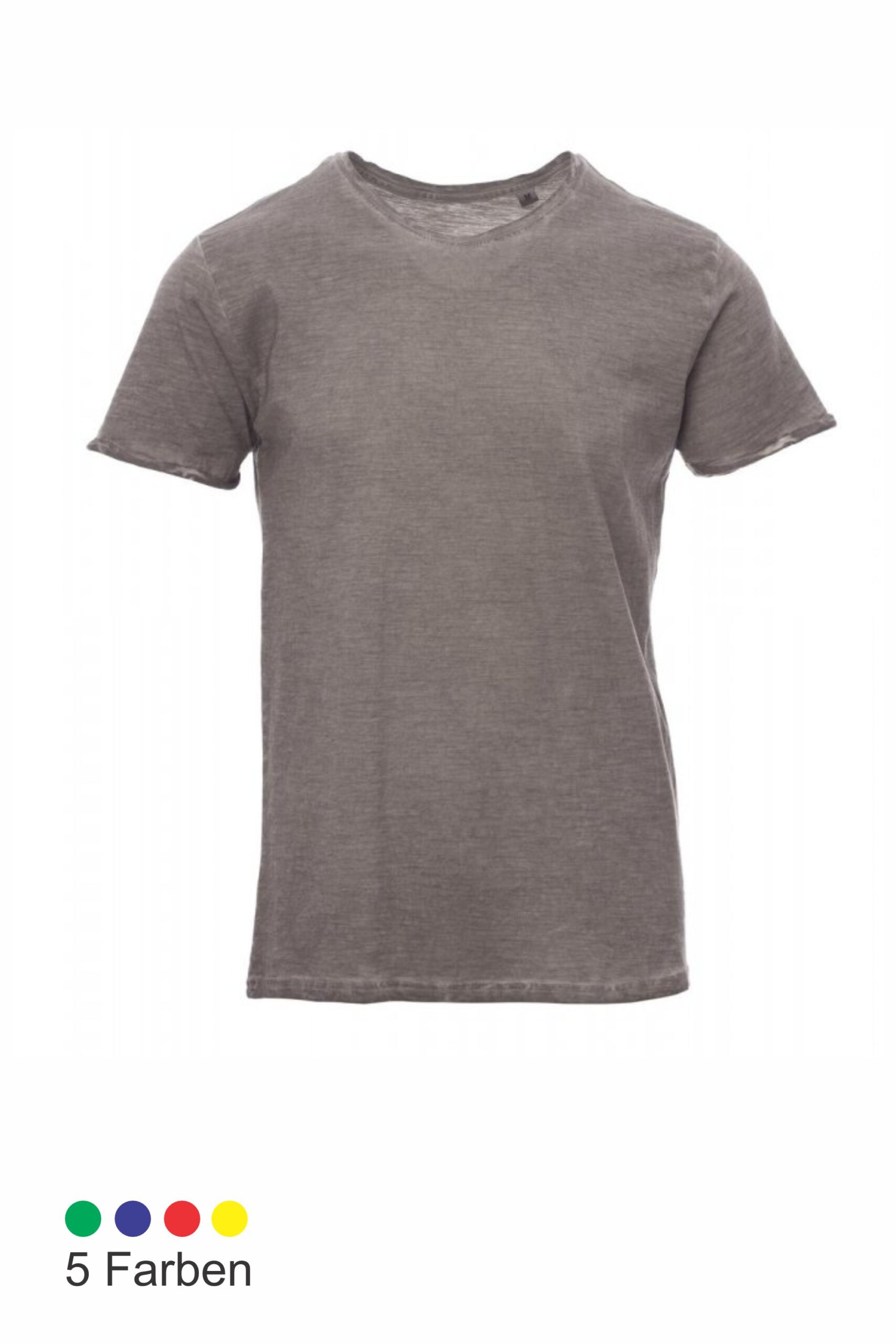 Herren-T-Shirt, kurzärmelig, mit betontem Rundhalsausschnitt, schmalem 1 cm Halsabschluss aus Spandex-Mischgewebe, Innen-Doppelnaht an den Schultern, Ärmeln mit schmalem, offenkantigem Aufschlag, Seitennaht, neutral ohne Etikett
