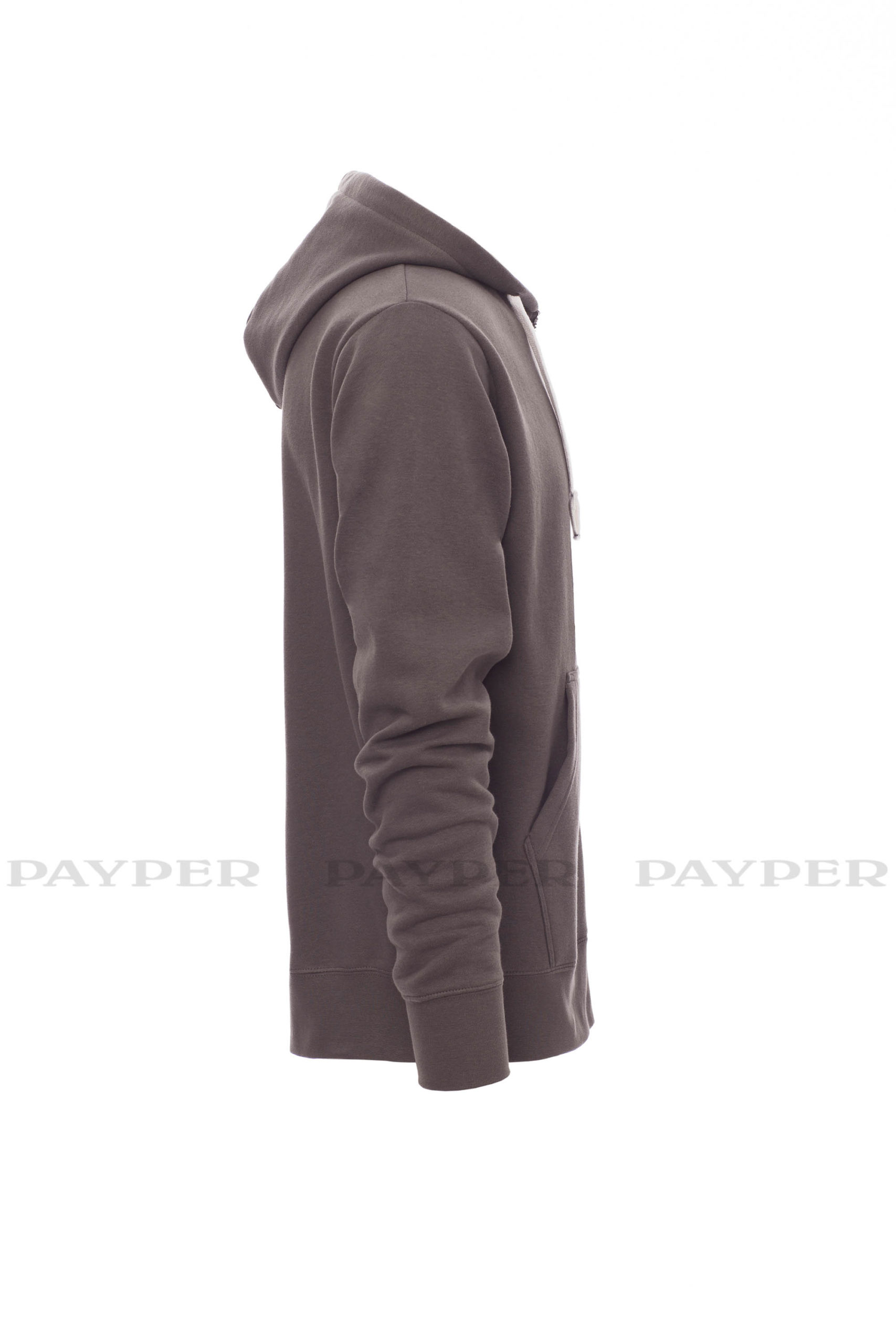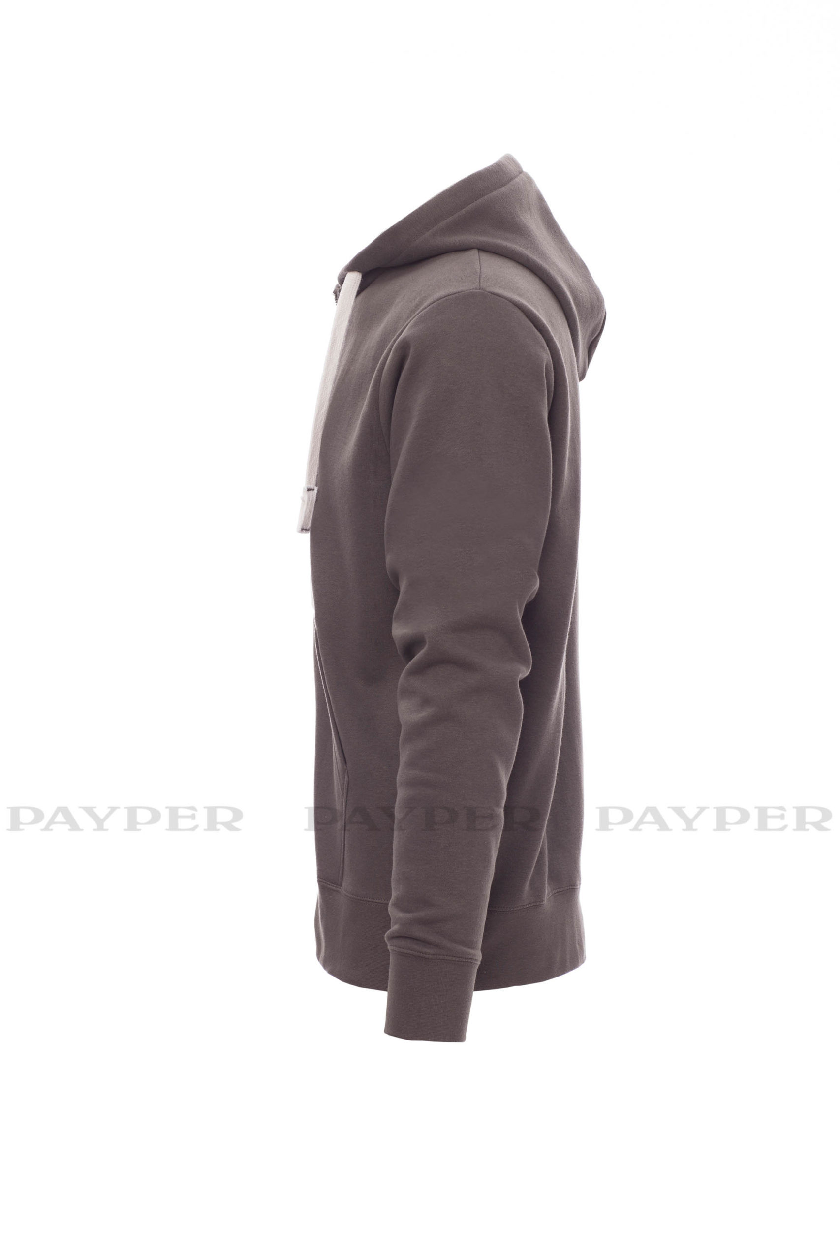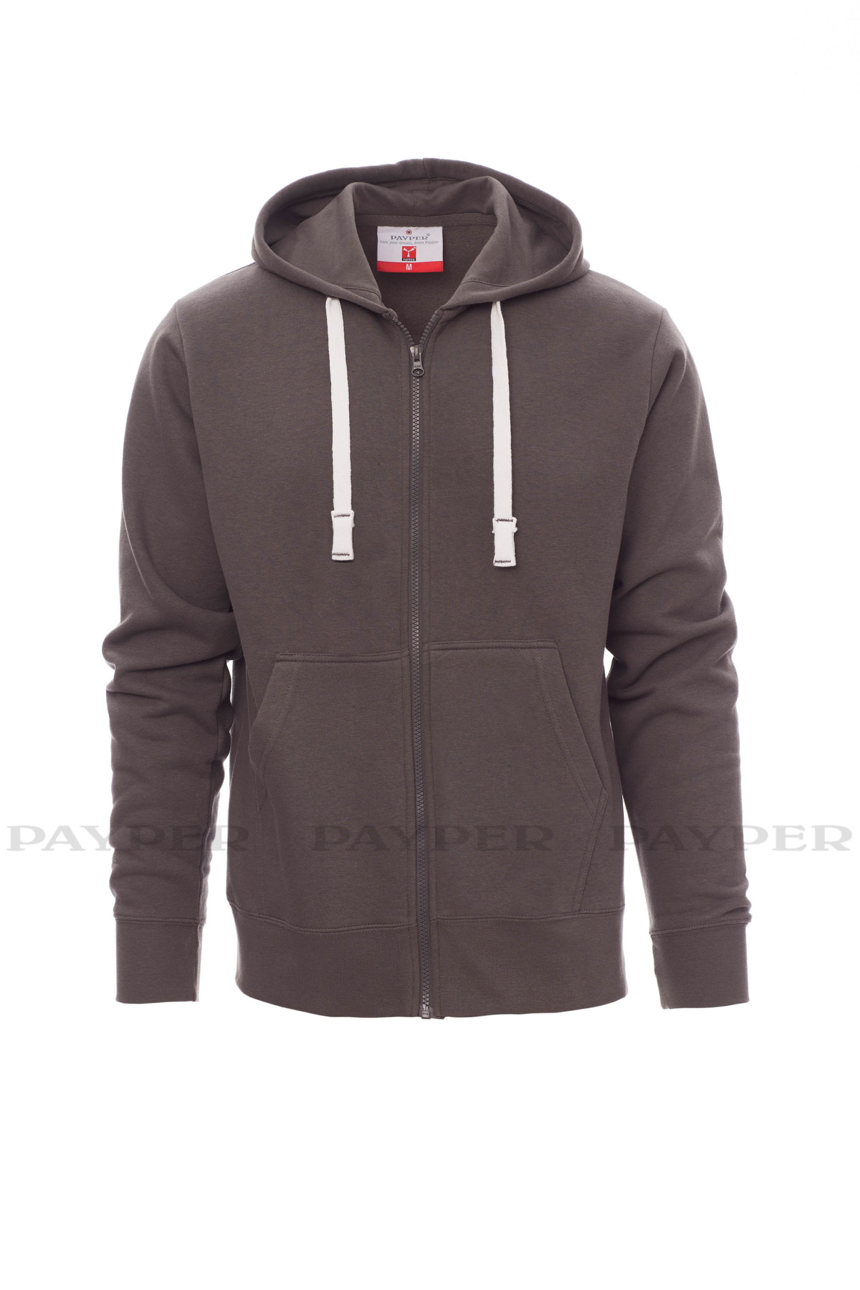 Herren-Sweatjacke, durchgehender Reißverschluss aus Kunststoff mit Metallschieber, Kapuze mit Kordelzug und Nähten Ton-in-Ton, Kugelärmel, Kängurutaschen, elastischer Feinripp an Ärmeln und Taille, verstärkte Nähte, Verstärkungsband im Kragen Ton-in-Ton.