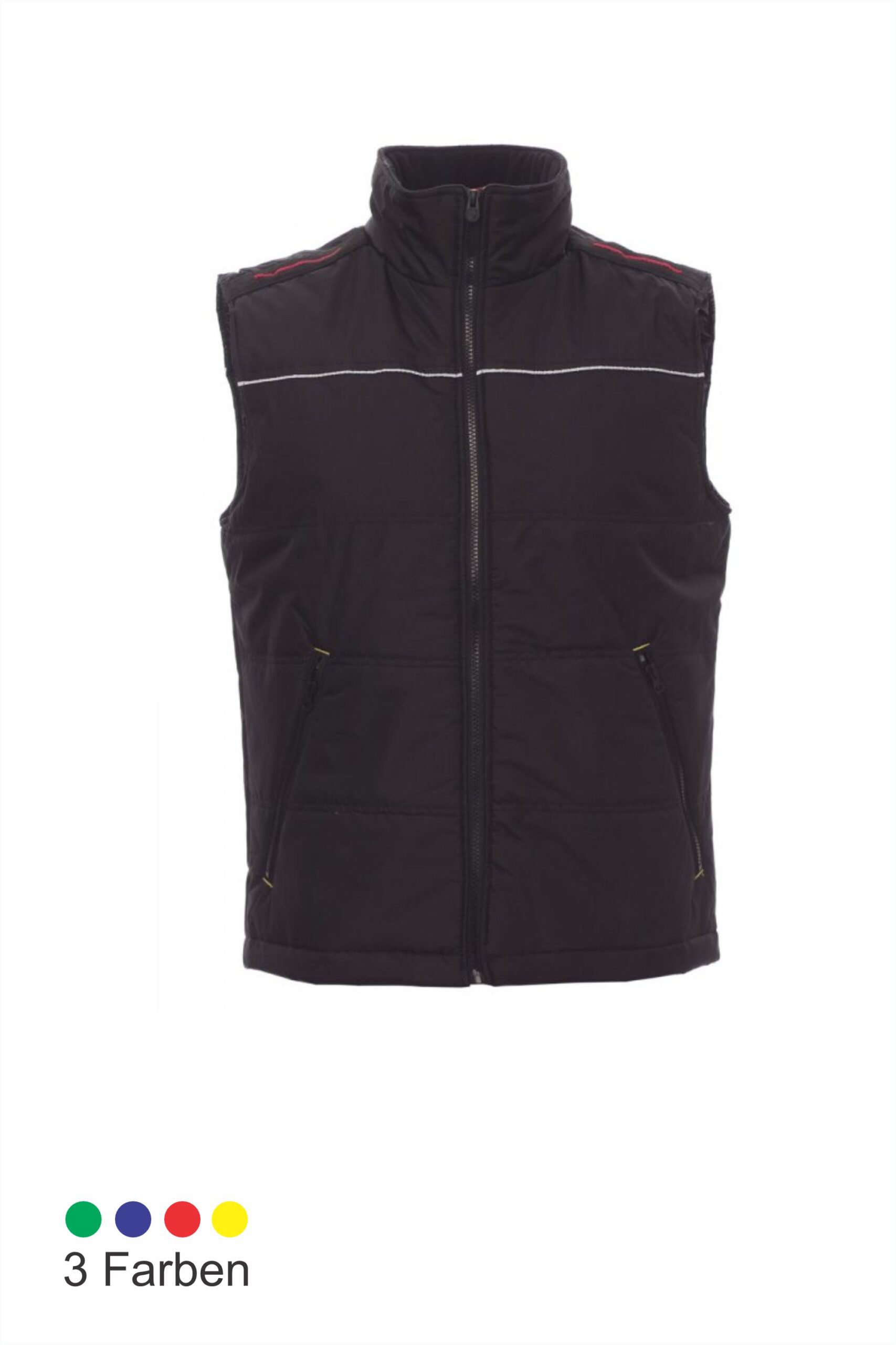 Unisex-Weste, 5 mm Reißverschluss aus Kunststoff mit Metallschieber, abgerundeter Rücken, 2 geräumige Außentaschen mit Reißverschluss, Reflex-Paspelierung auf der Brust und auf dem Rücken. Innenseite: Stepp- und High-Density-Futter, Krageninnenseite aus Fleece, 1 Tasche.