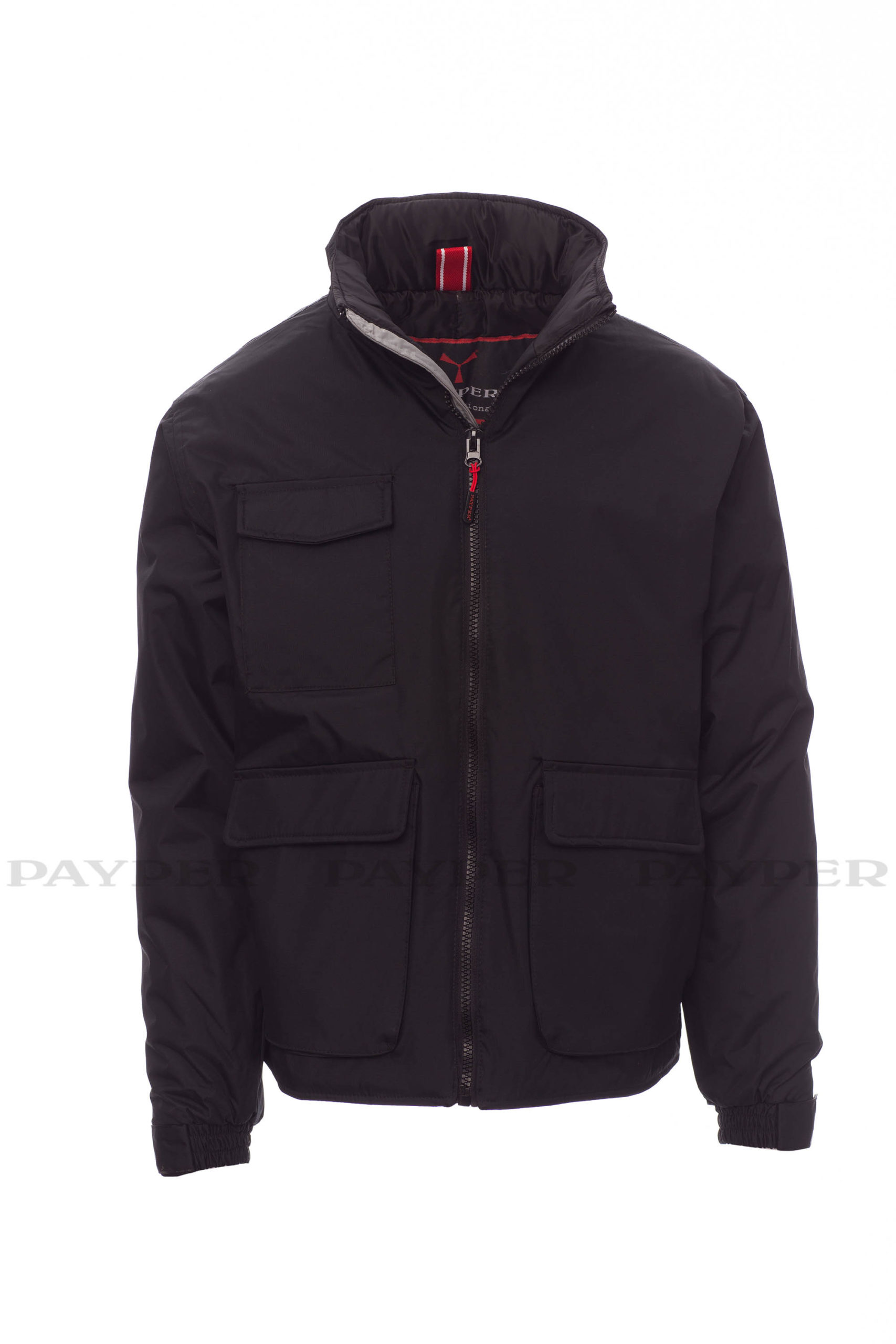 Unisex-Jacke, 8 mm Reißverschluss aus Kunststoff mit Metallschieber, im Kragen einrollbare Kapuze, elastische Ärmelbündchen mit Verschluss, 2 geräumige Vordertaschen mit LOCK SYSTEM, 2 Seitentaschen, Handy-Brusttasche. Innenseite: wattiert, Reißverschluss zum einfacheren Veredeln mit Druck und Stick.