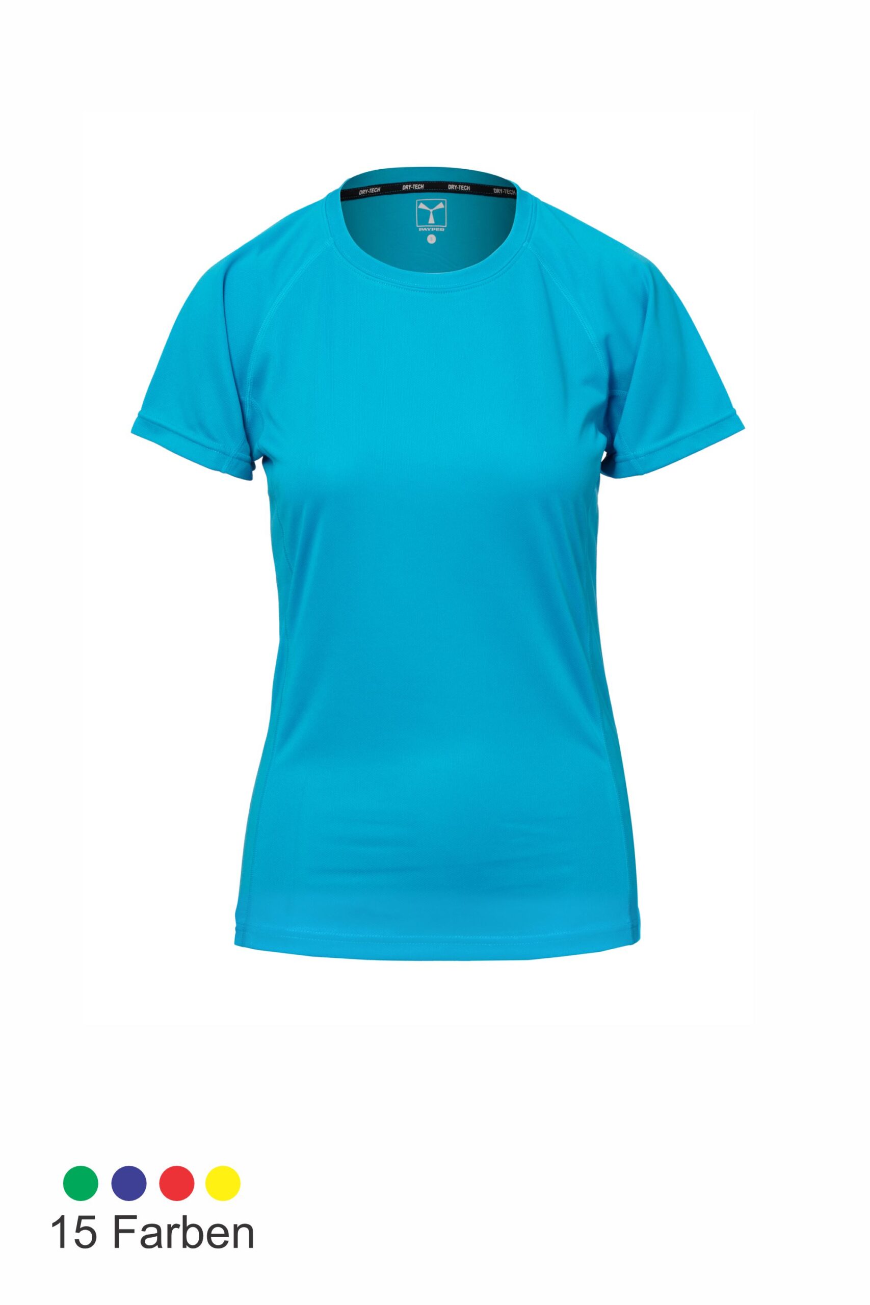 Technisches, sportliches Damen-T-Shirt, tailliert, Raglanärmel, doppelte Seitennaht für eine bessere Passform, Nackenband.