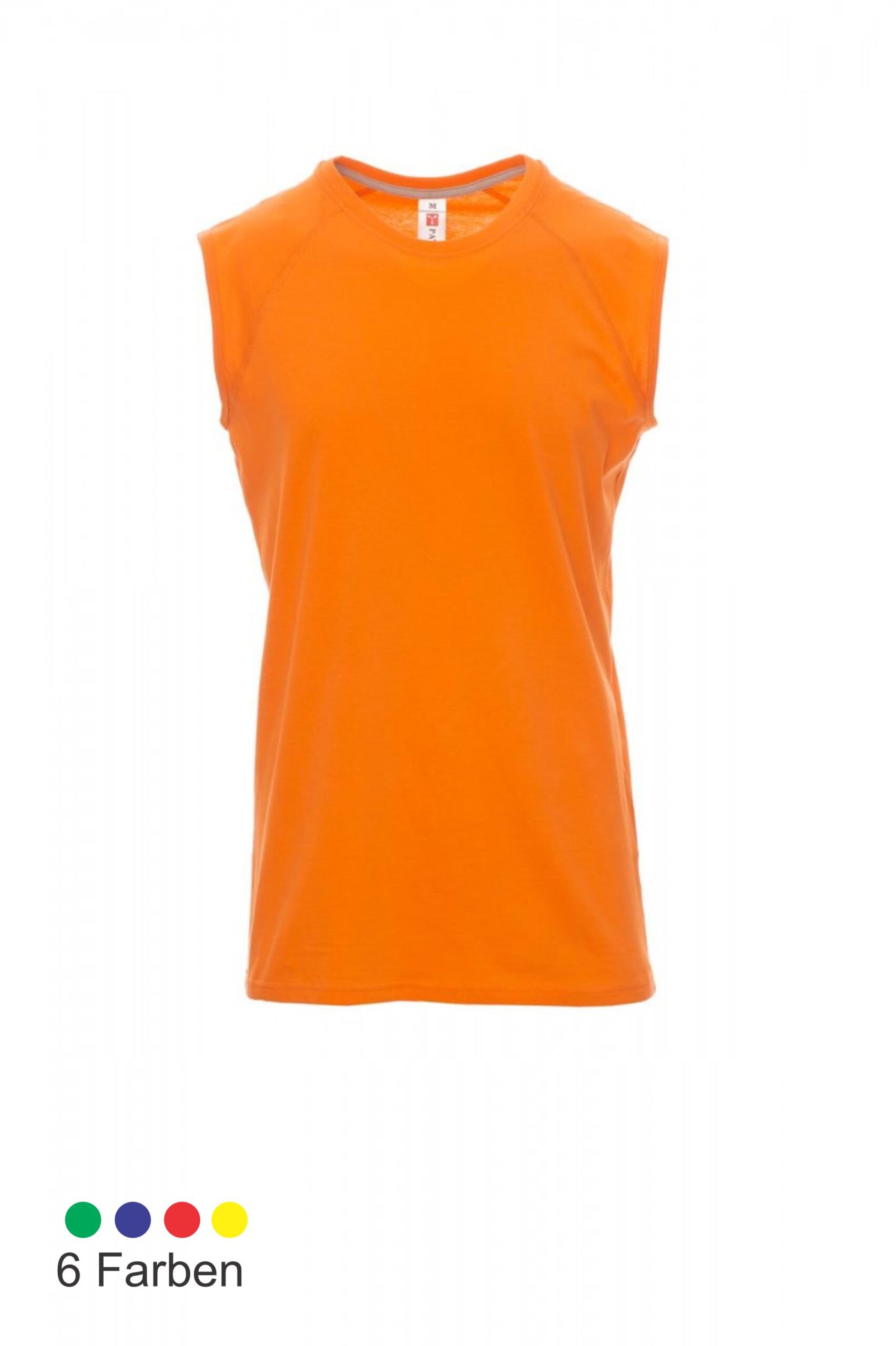 Ärmelloses Herren-Shirt mit Rundhalsausschnitt, Raglanschnitt, Feinripp-Kragen 1,5 cm aus Spandex-Mischgewebe mit Kappnaht an der Vorderseite, Verstärkungsband in Kontrastfarbe von Schulter zu Schulter, das im Kragen sichtbar ist, Stretchnähten, Seitennaht.
