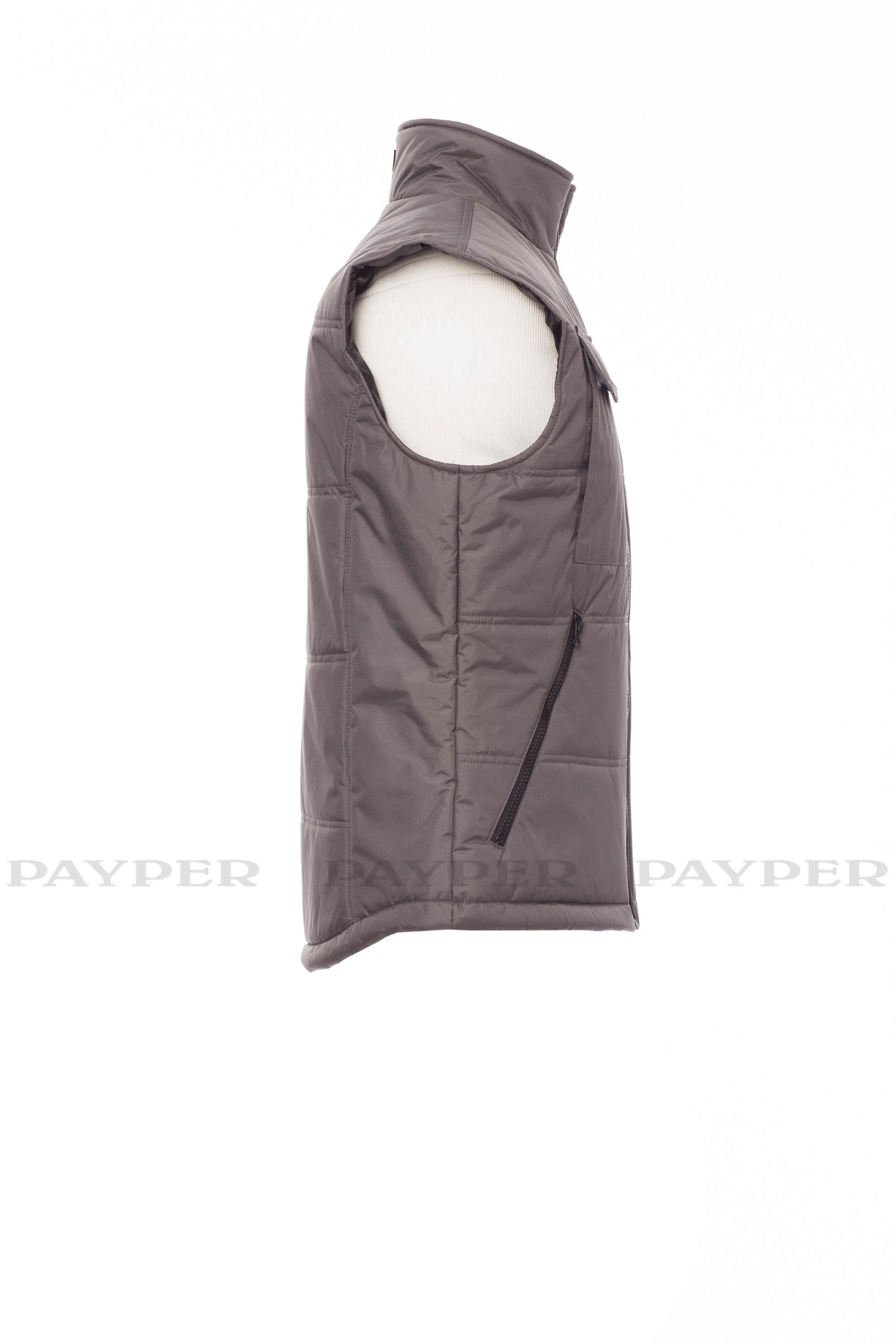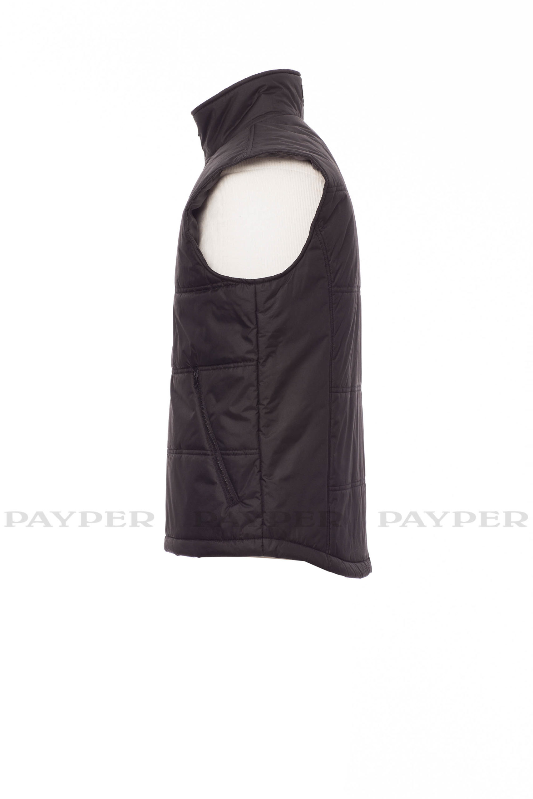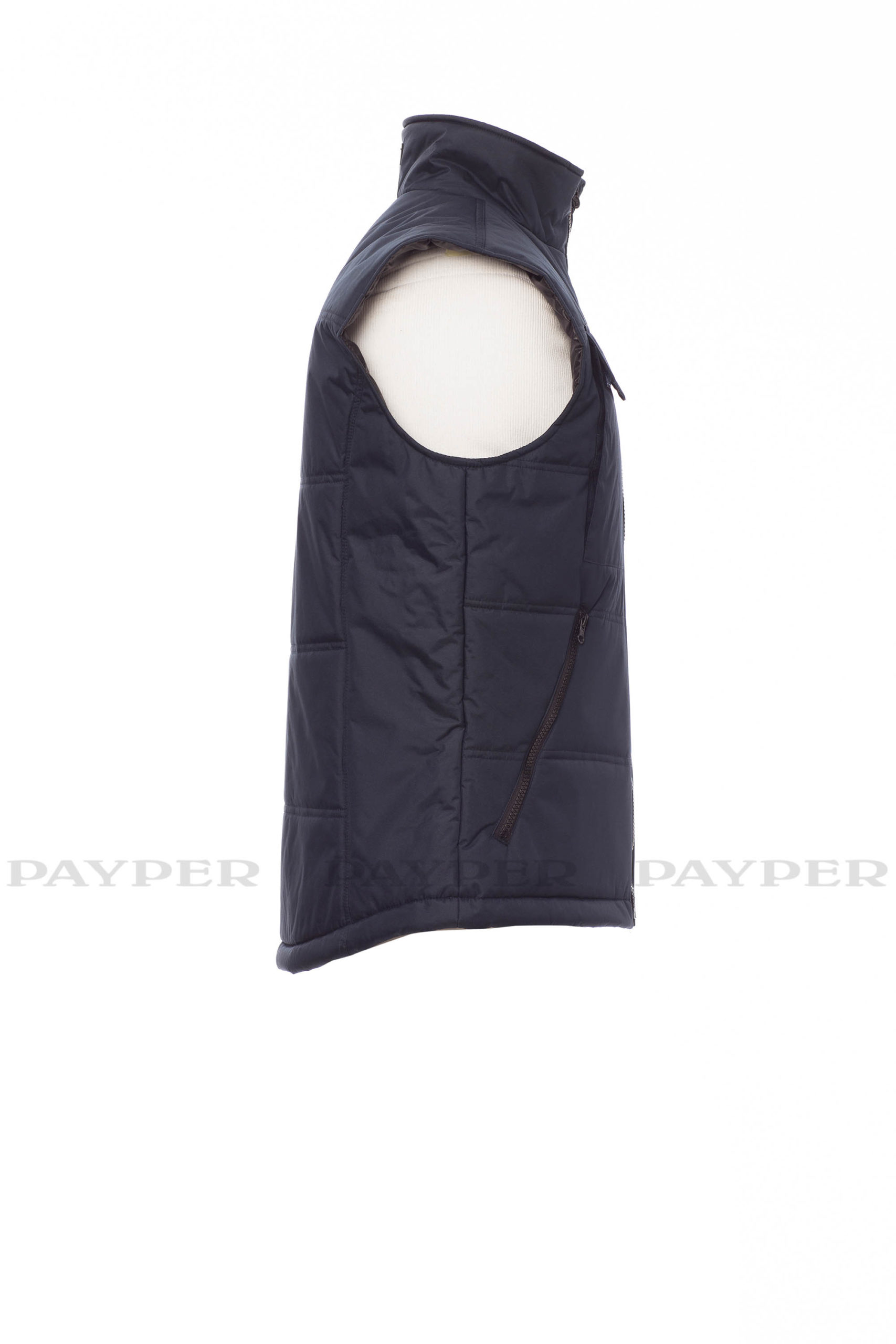Steppweste, vorgeformter Rücken, Stepp- und High-Density-Futter, Krageninnenseite aus Fleece. 2 geräumige Reißverschlusstaschen, Handytasche auf der Brust und 1 Innentasche.