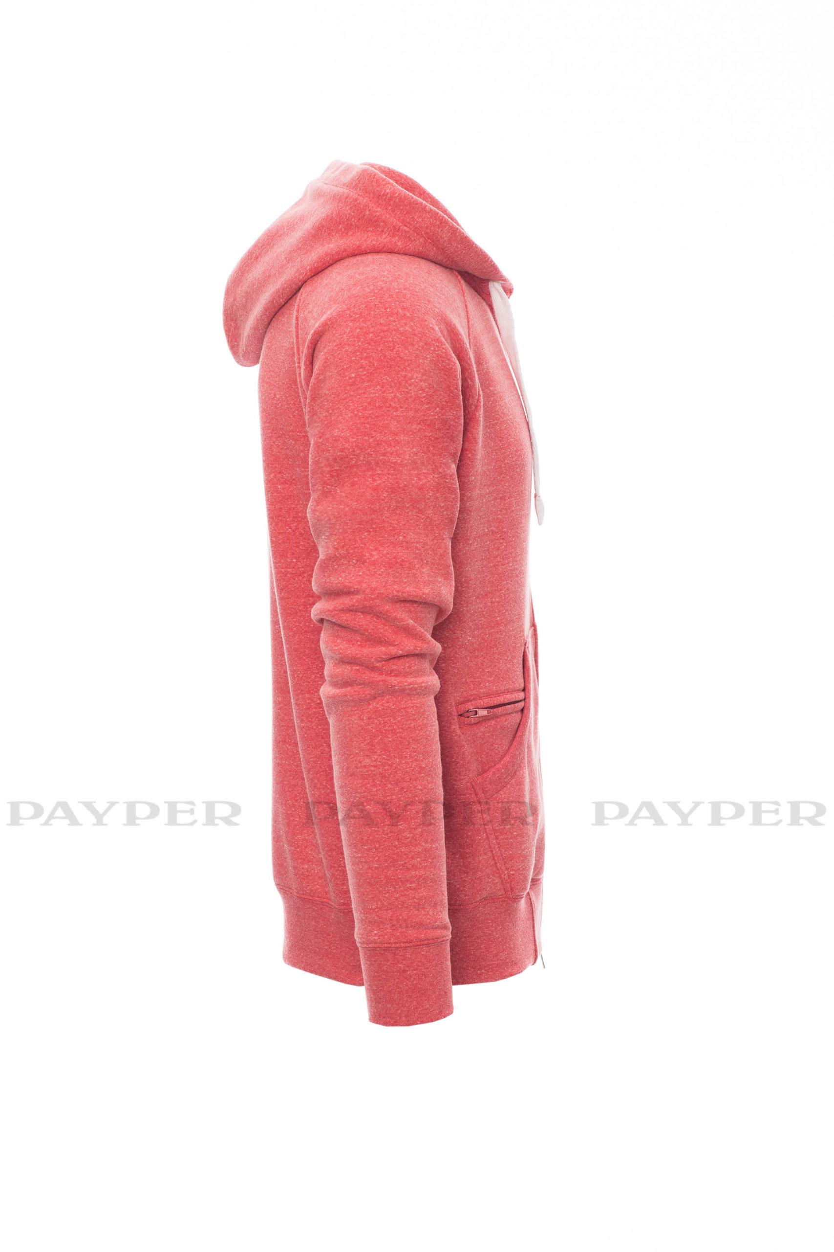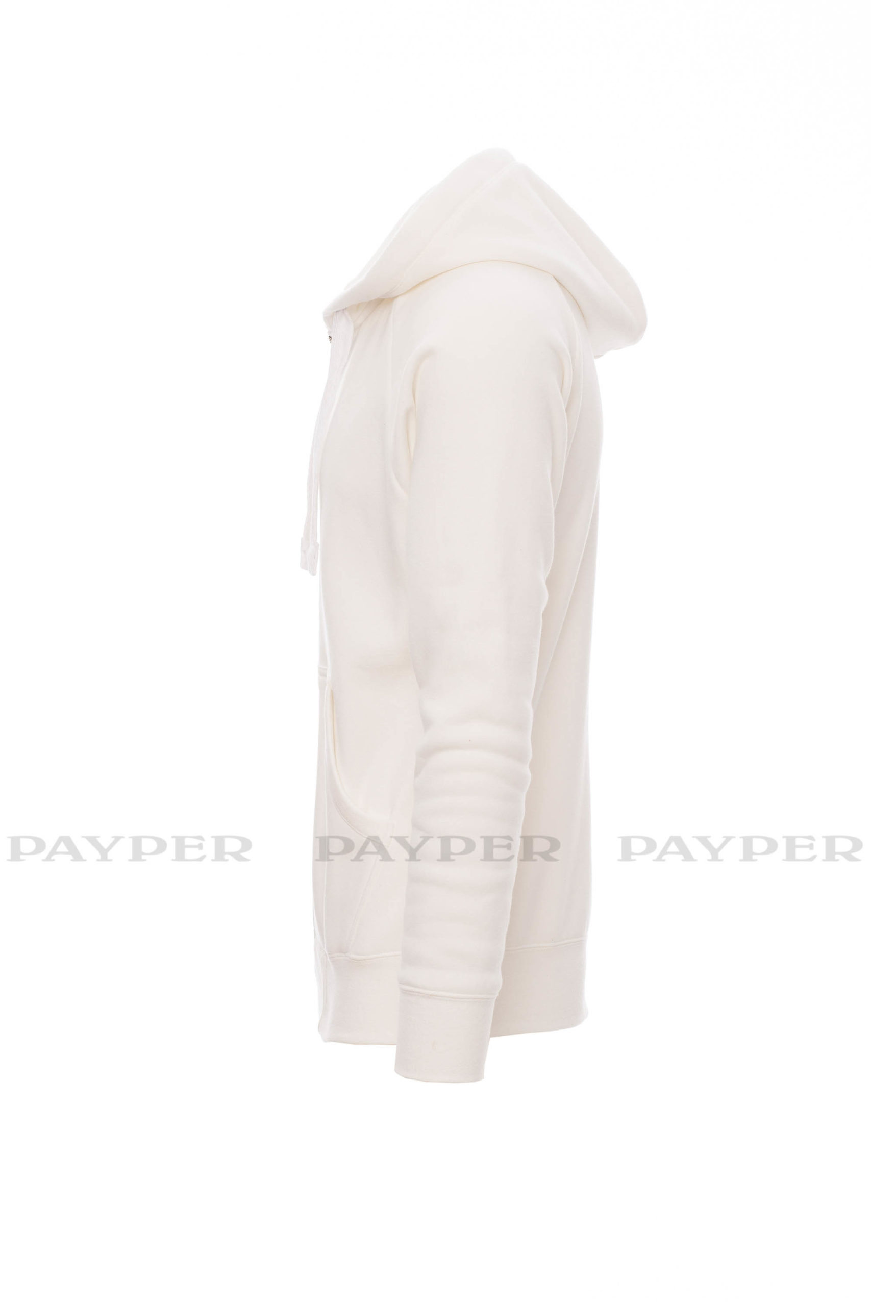 Herren-Sweatjacke mit durchgehendem 2-Wege-Reißverschluss aus Metall, Raglanärmeln, Kapuze mit weißem Kordelzug, Nähten Ton-in-Ton und Metallösen, Kängurutaschen, Reißverschlusstäschchen und Öffnung für Mp3- oder Handykabel, elastischem Feinripp an Ärmeln und Taille, verstärkten Nähten. Effekt weiß-meliert (schwarz beim bordeauxfarbenen Modell).