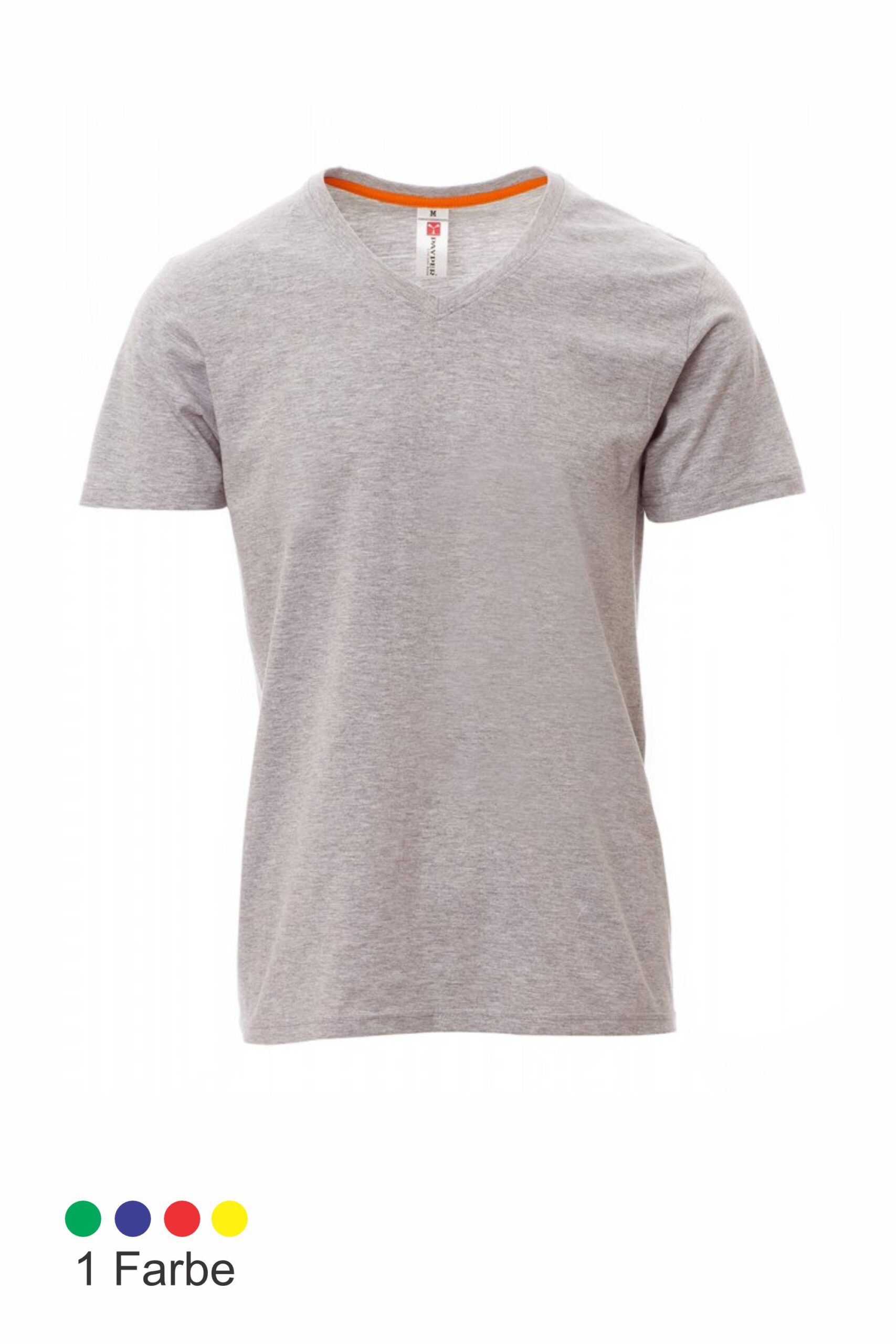 Herren-T-Shirt mit V-Ausschnitt, kurzärmelig, Feinripp-Kragen 1,5 cm aus Spandex-Mischgewebe mit Kappnaht an der Vorderseite, Verstärkungsband in Kontrastfarbe von Schulter zu Schulter, das im Kragen sichtbar ist, Stretchnähten, Rundstrick.