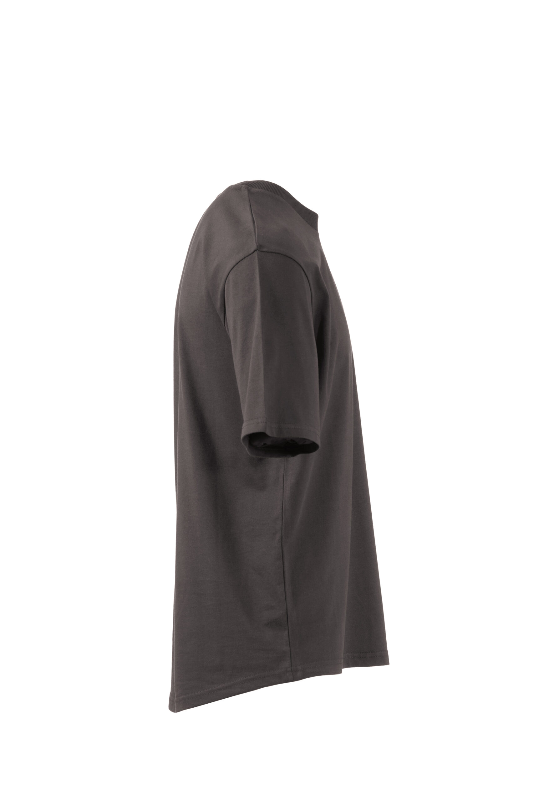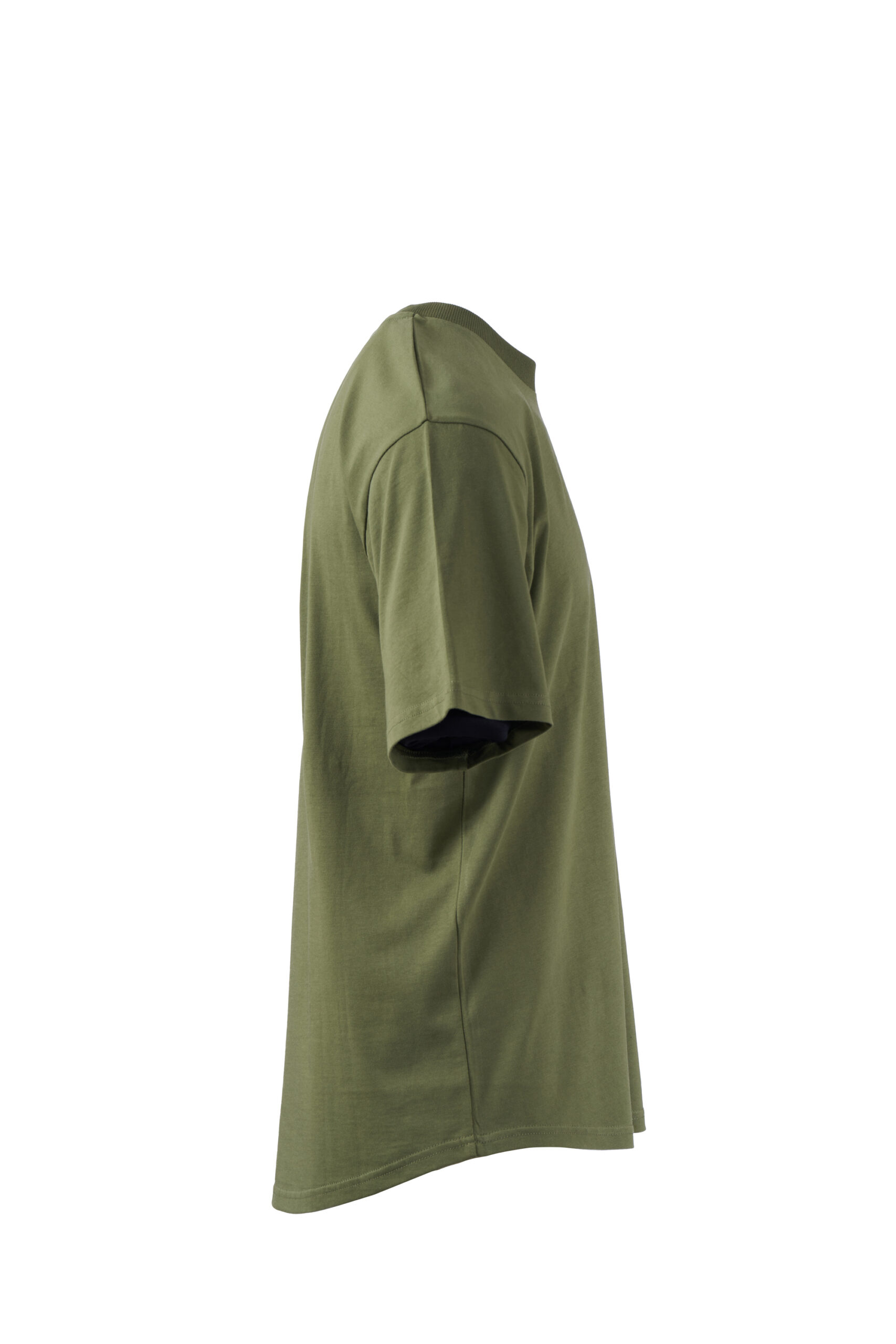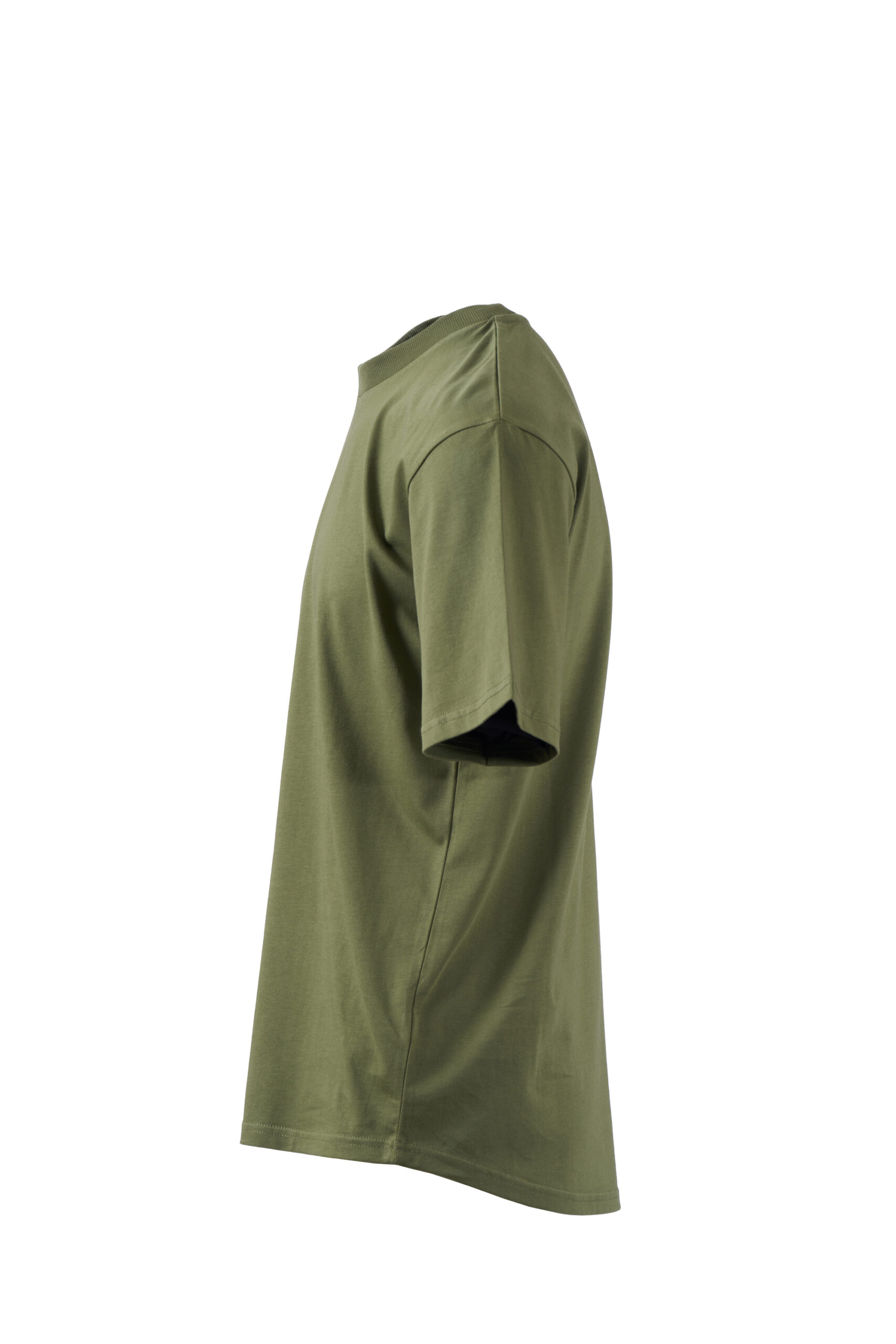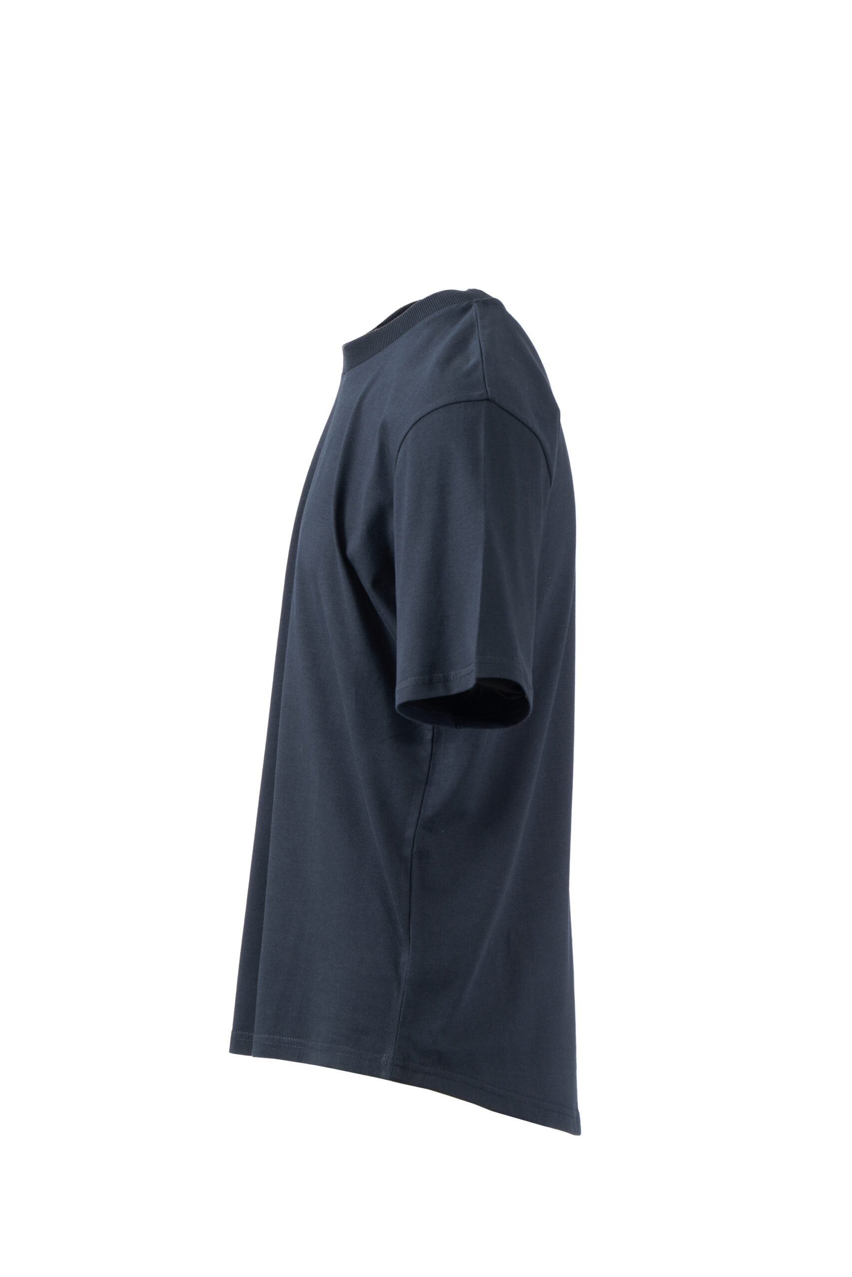 Kurzarm-T-Shirt für Herren aus 100 % Bio-Baumwolle mit überschnittenen Schultern, 2,5 cm breitem Rippstrickkragen und Seitennähten. Abgerundeter Saum. Jedes Set enthält 5 Stück.
