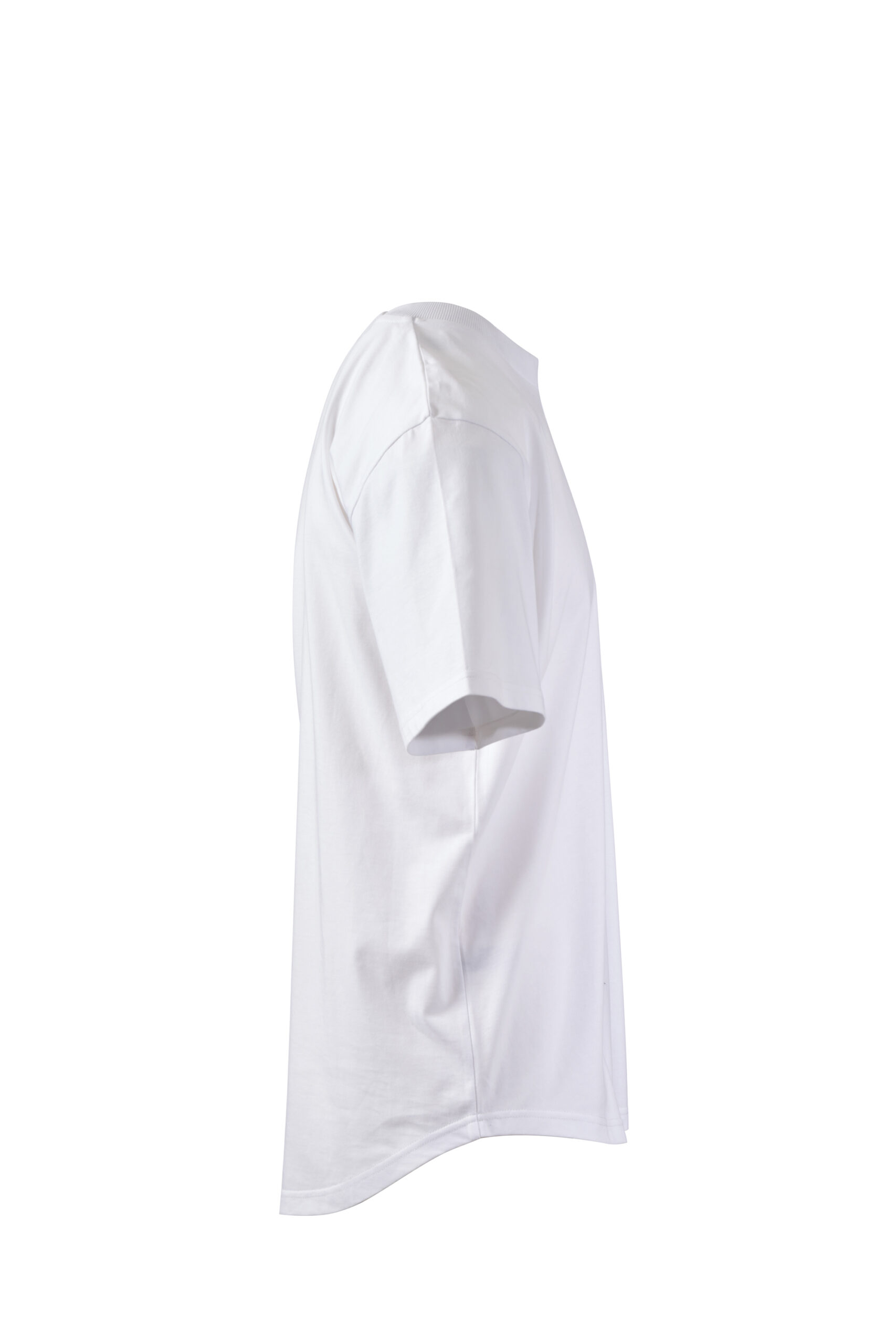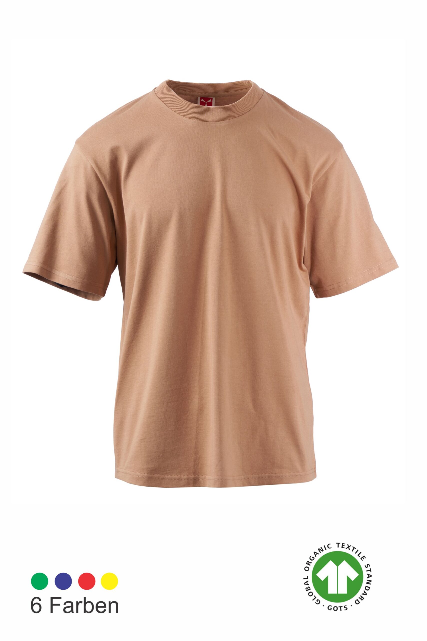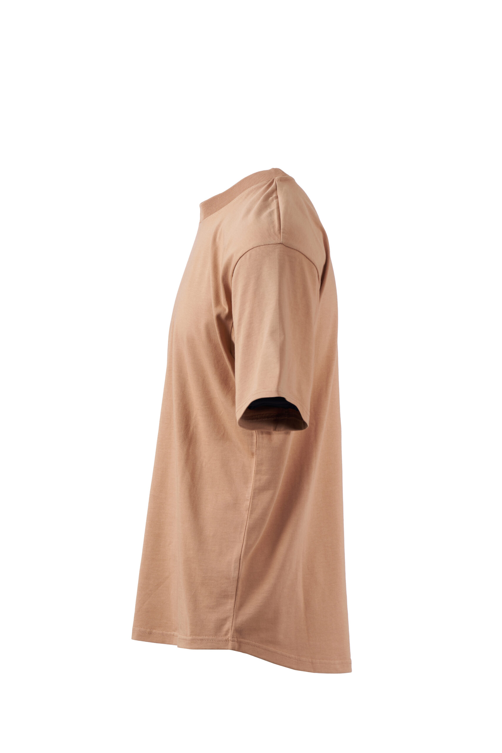 Kurzarm-T-Shirt für Herren aus 100 % Bio-Baumwolle mit überschnittenen Schultern, 2,5 cm breitem Rippstrickkragen und Seitennähten. Abgerundeter Saum. Jedes Set enthält 5 Stück.