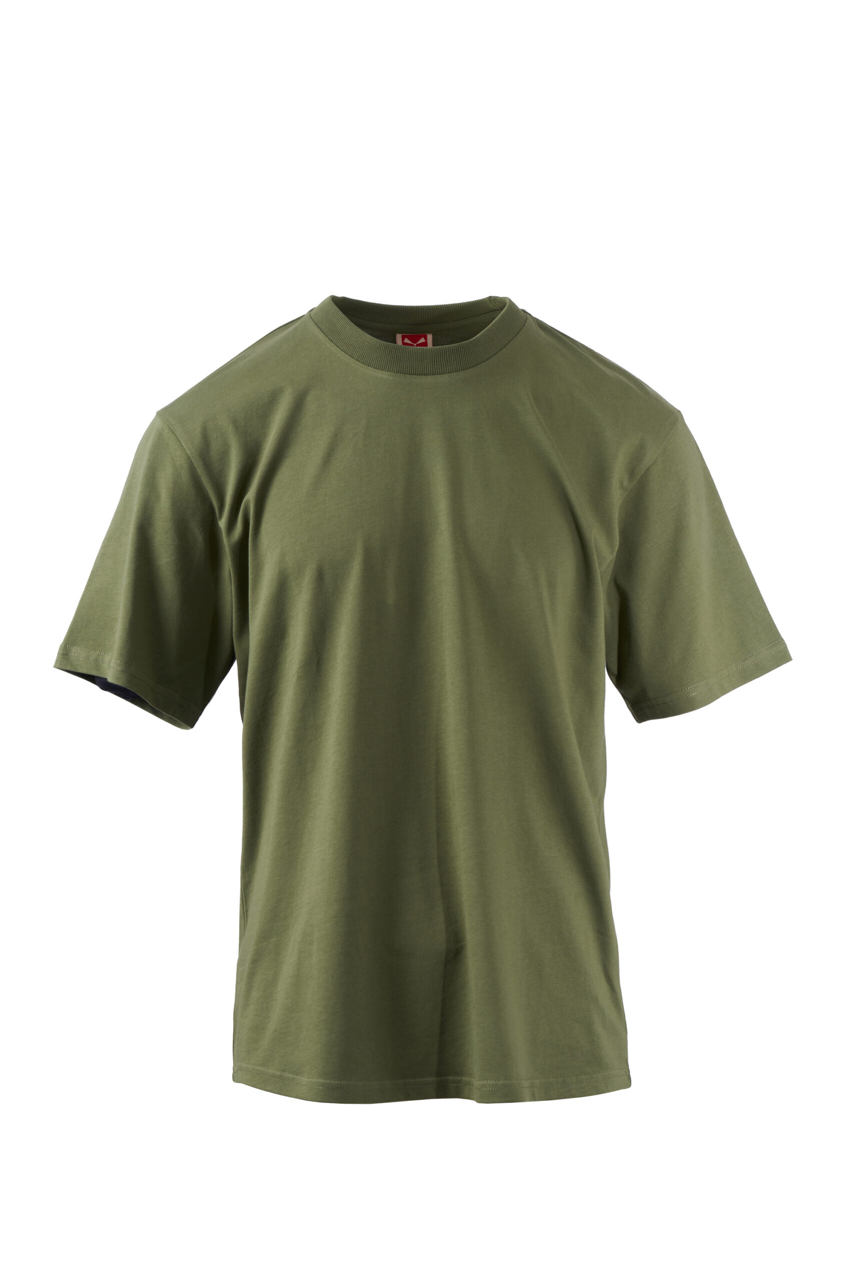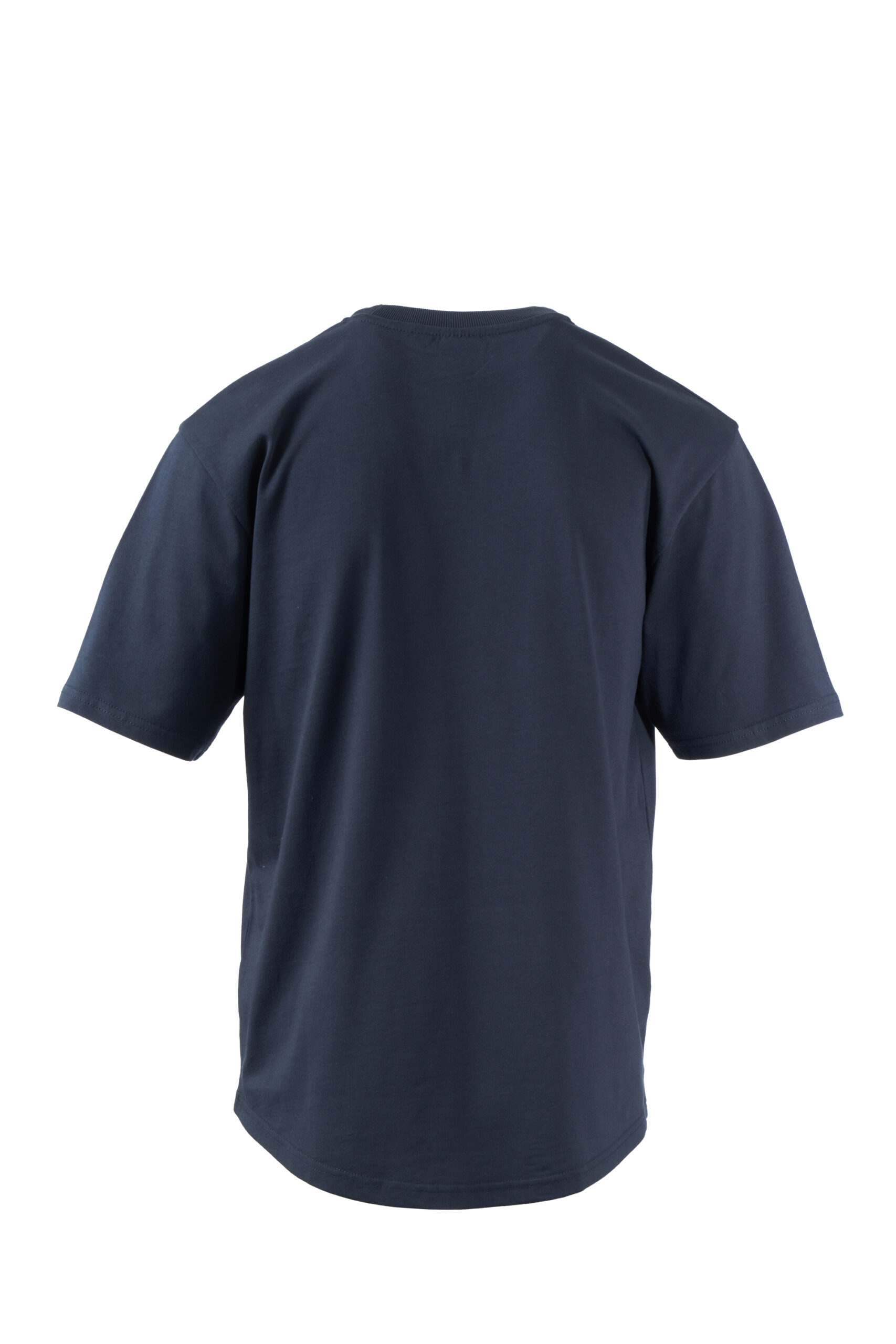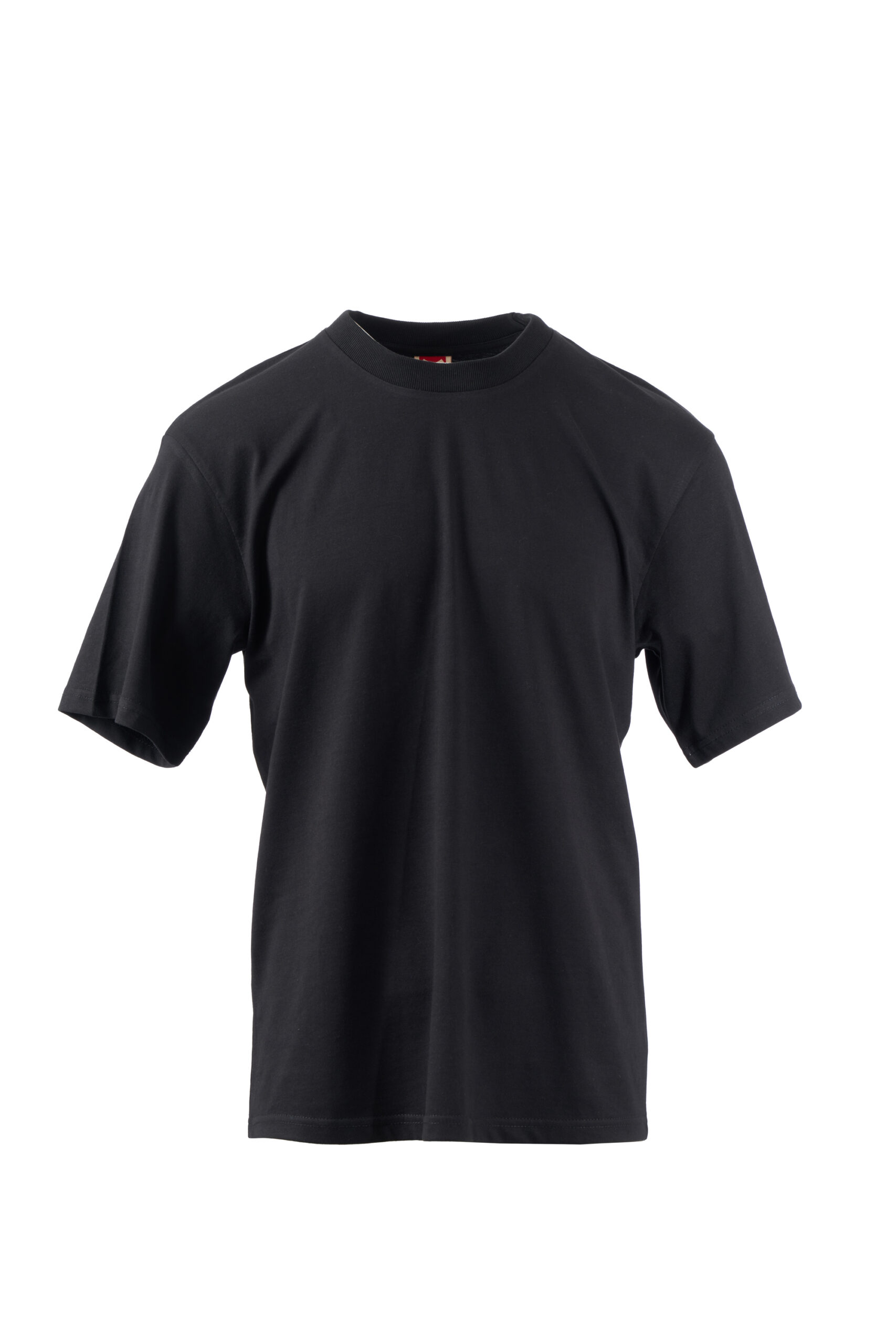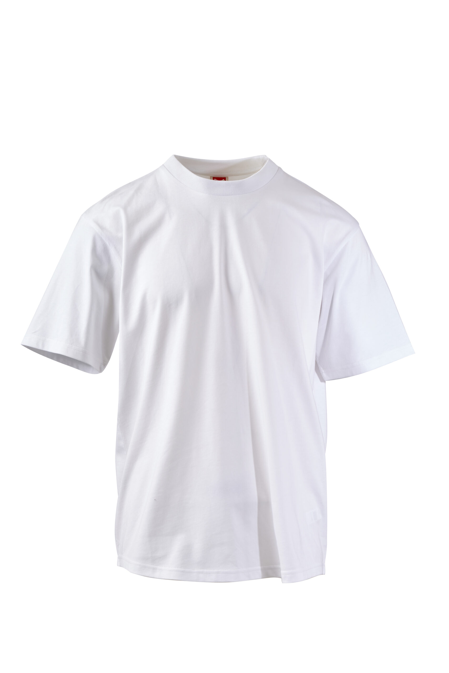 Kurzarm-T-Shirt für Herren aus 100 % Bio-Baumwolle mit überschnittenen Schultern, 2,5 cm breitem Rippstrickkragen und Seitennähten. Abgerundeter Saum. Jedes Set enthält 5 Stück.